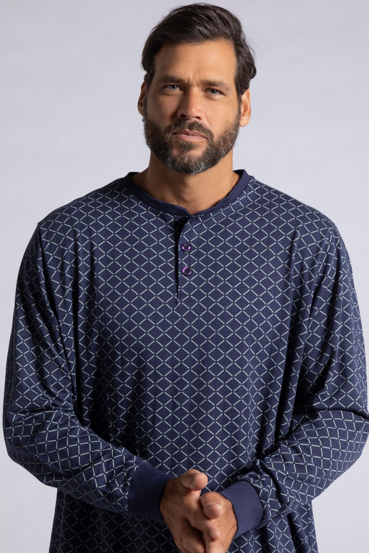 Nightgown made of soft cotton knit with V-neck, JP1880 embroidery on the chest pocket, long sleeves and side vents. Optimal freedom of movement and perfect fit guaranteed in every size. JP1880 - for real men only!