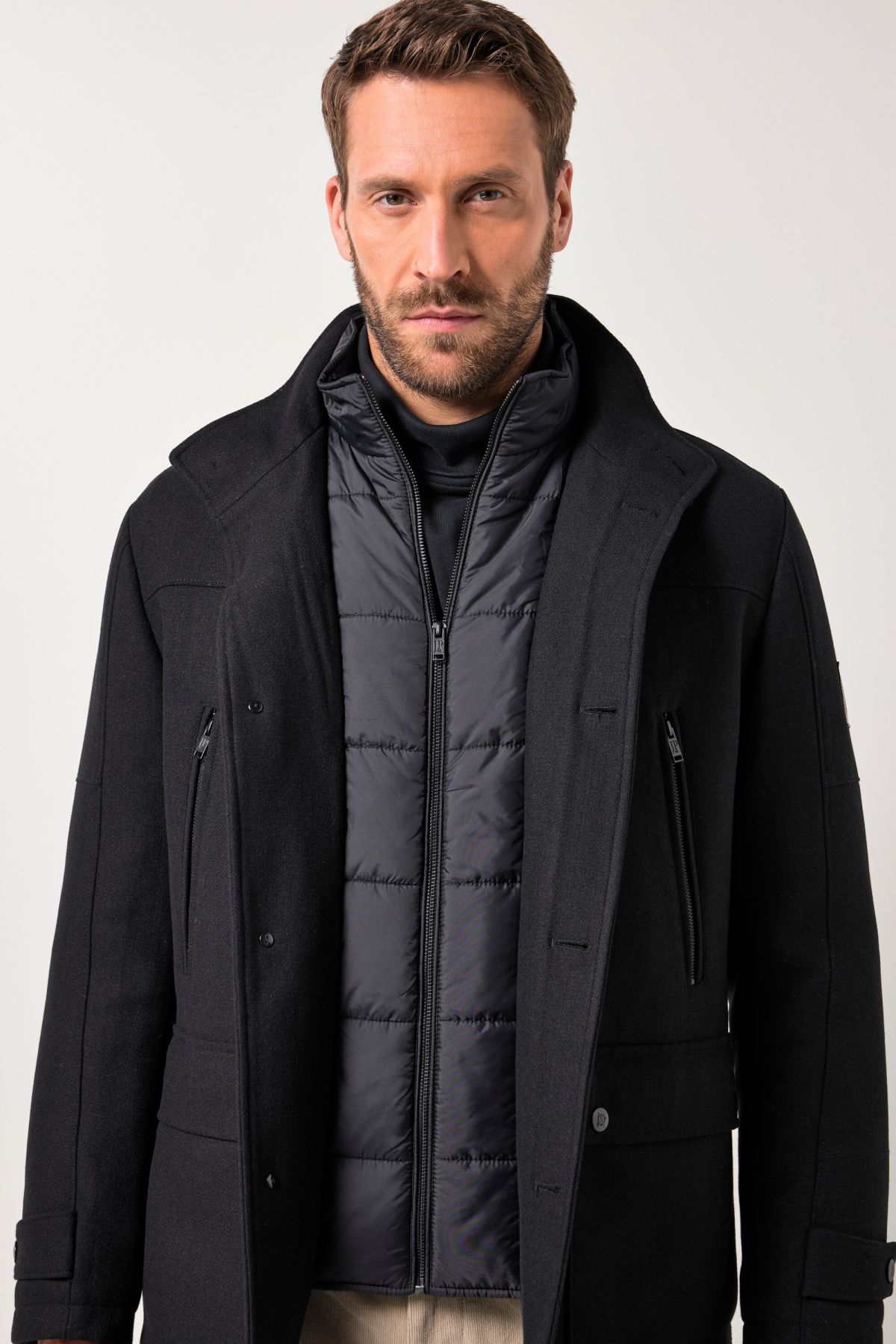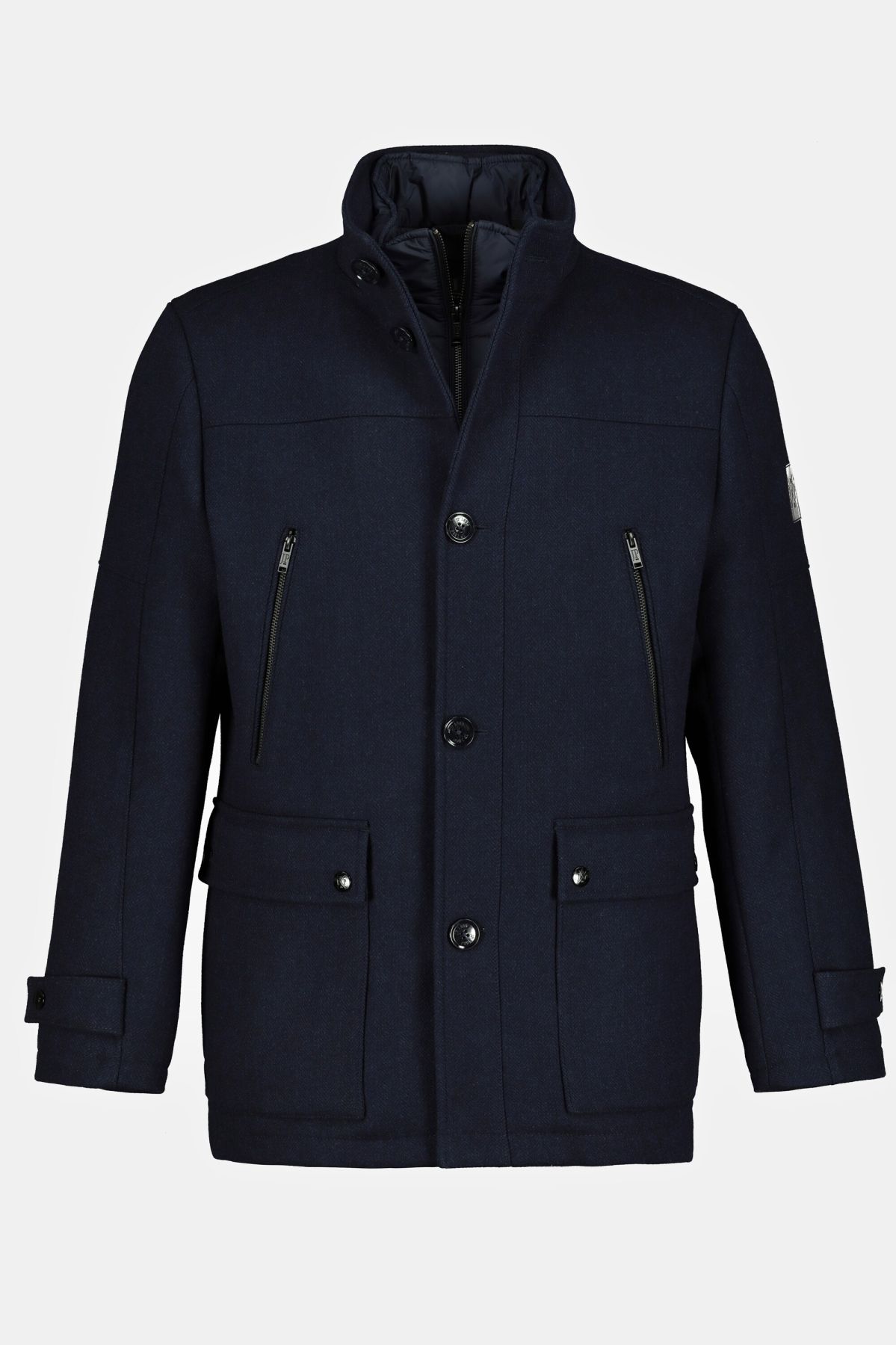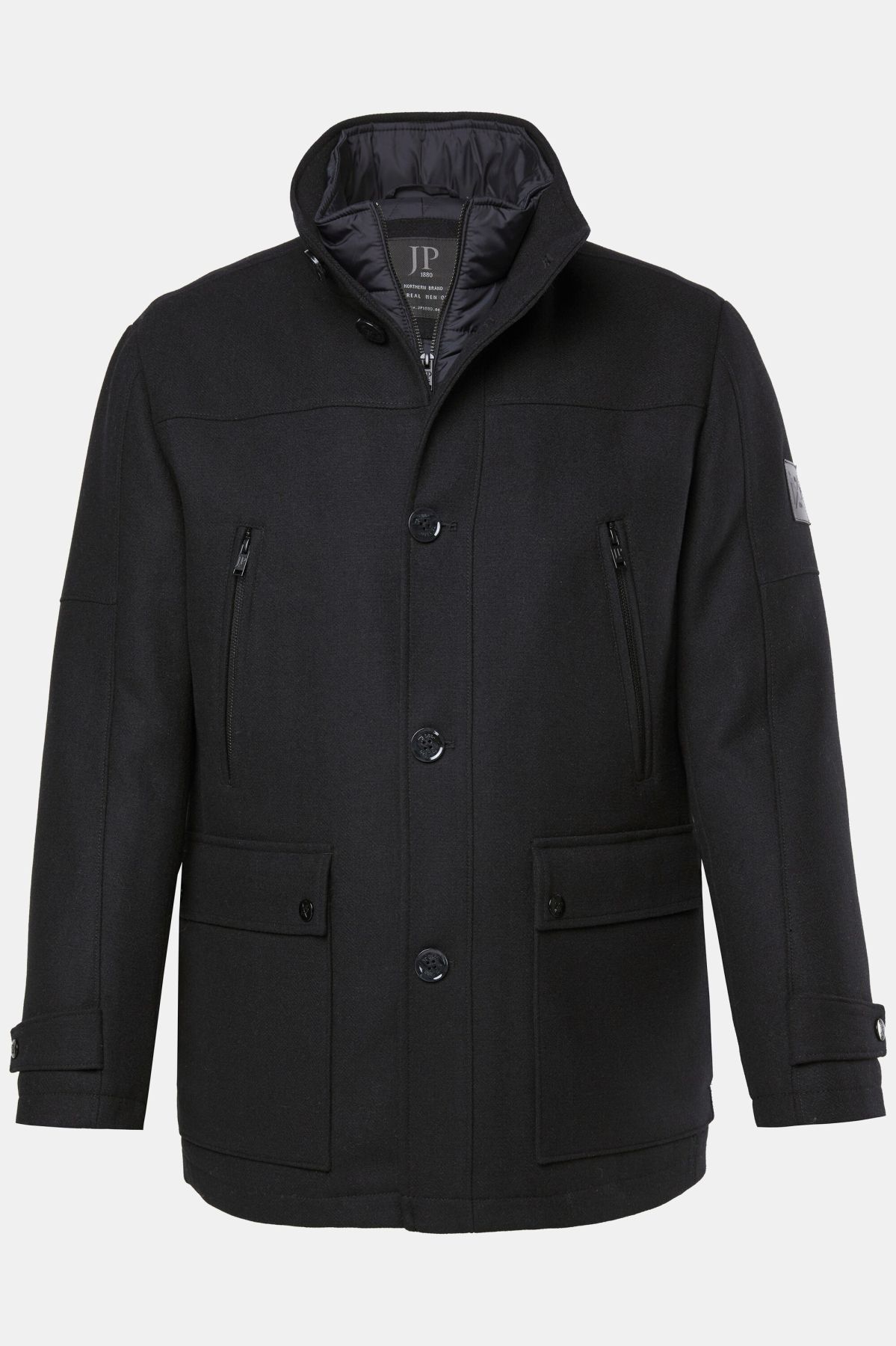 Water Repellent Wool Jacket - wearable all year round due to zip-out herringbone insert. Striking men's jacket with stand-up collar, button placket and chest zip pockets. 2 2-way pockets. The tested fit will convince you especially in large sizes. JP 1880 - for real men only!