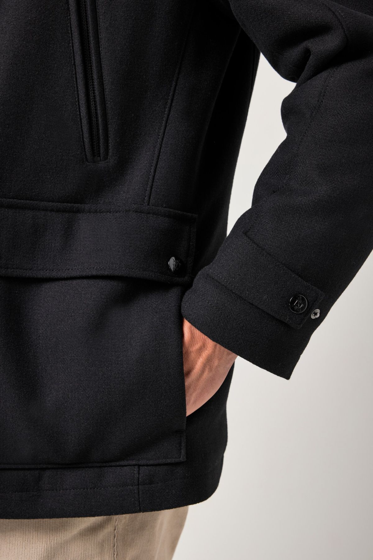 Wool blend jacket, water-repellent, herringbone insert, stand-up collar