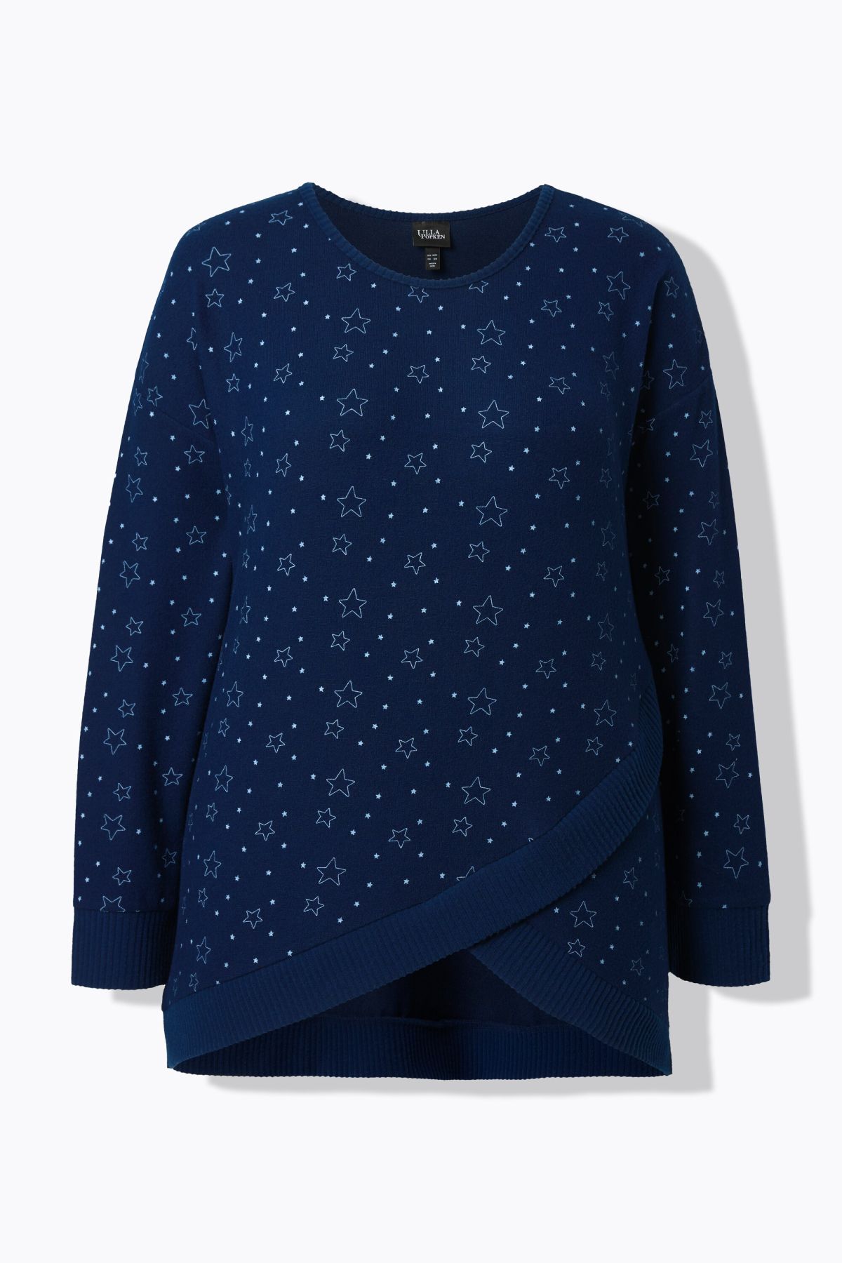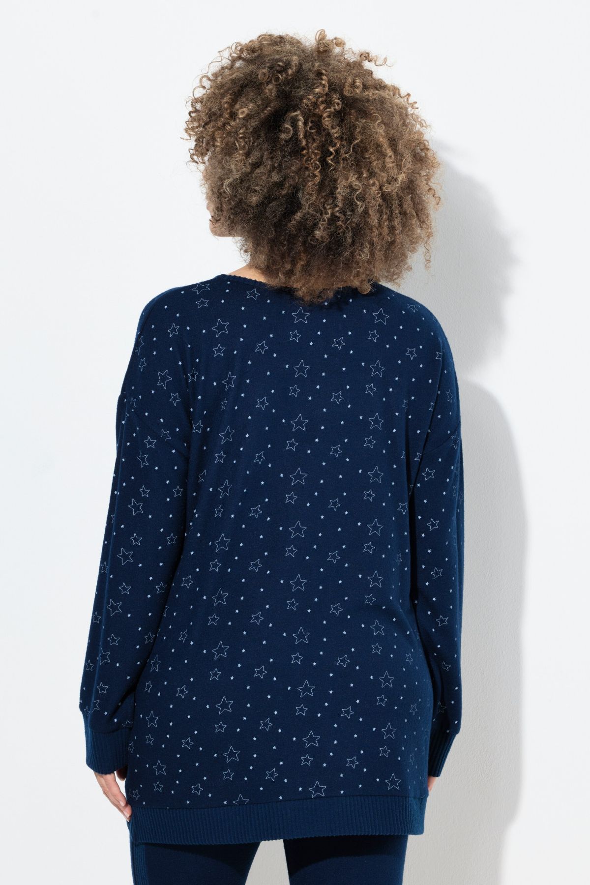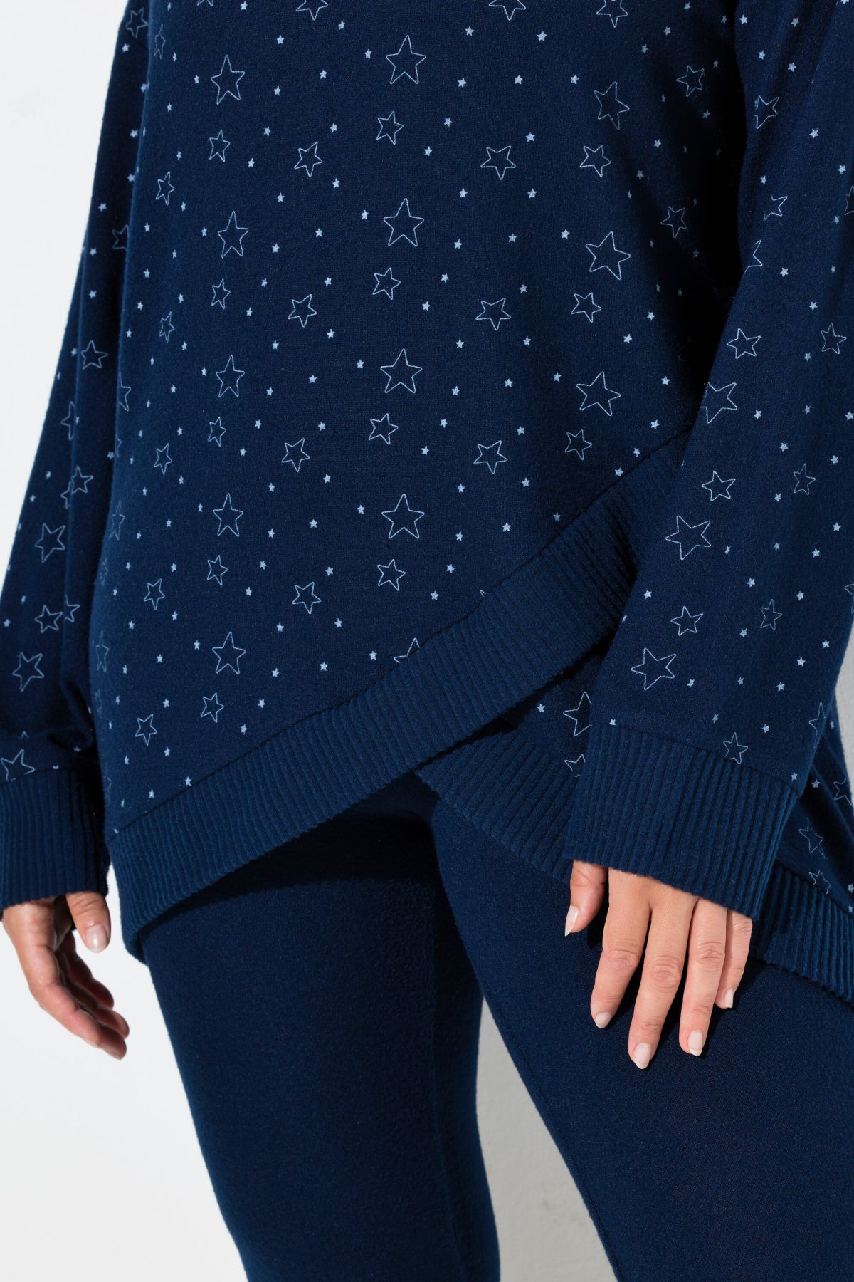 Mini Star Print Lounge Top - cuddle up in this cozy shirt made for lounging. Round neck, long cuffed hem sleeves, and crossover front ribbed knit bottom hem that's longer in the back.& 10;<br>