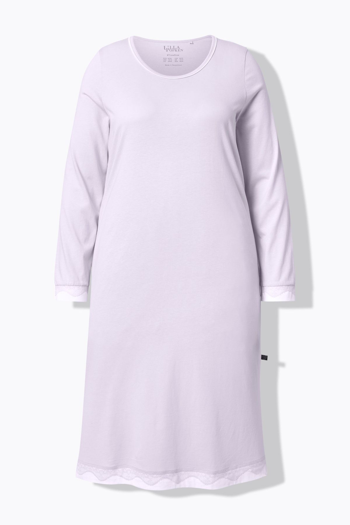 Lace Hem Super Soft Knit Nightgown# update your sleepwear with this pretty design in super soft modal cotton blend. Contrast piped round neck, and contrast hems with lace accents on the long sleeves and bottom.