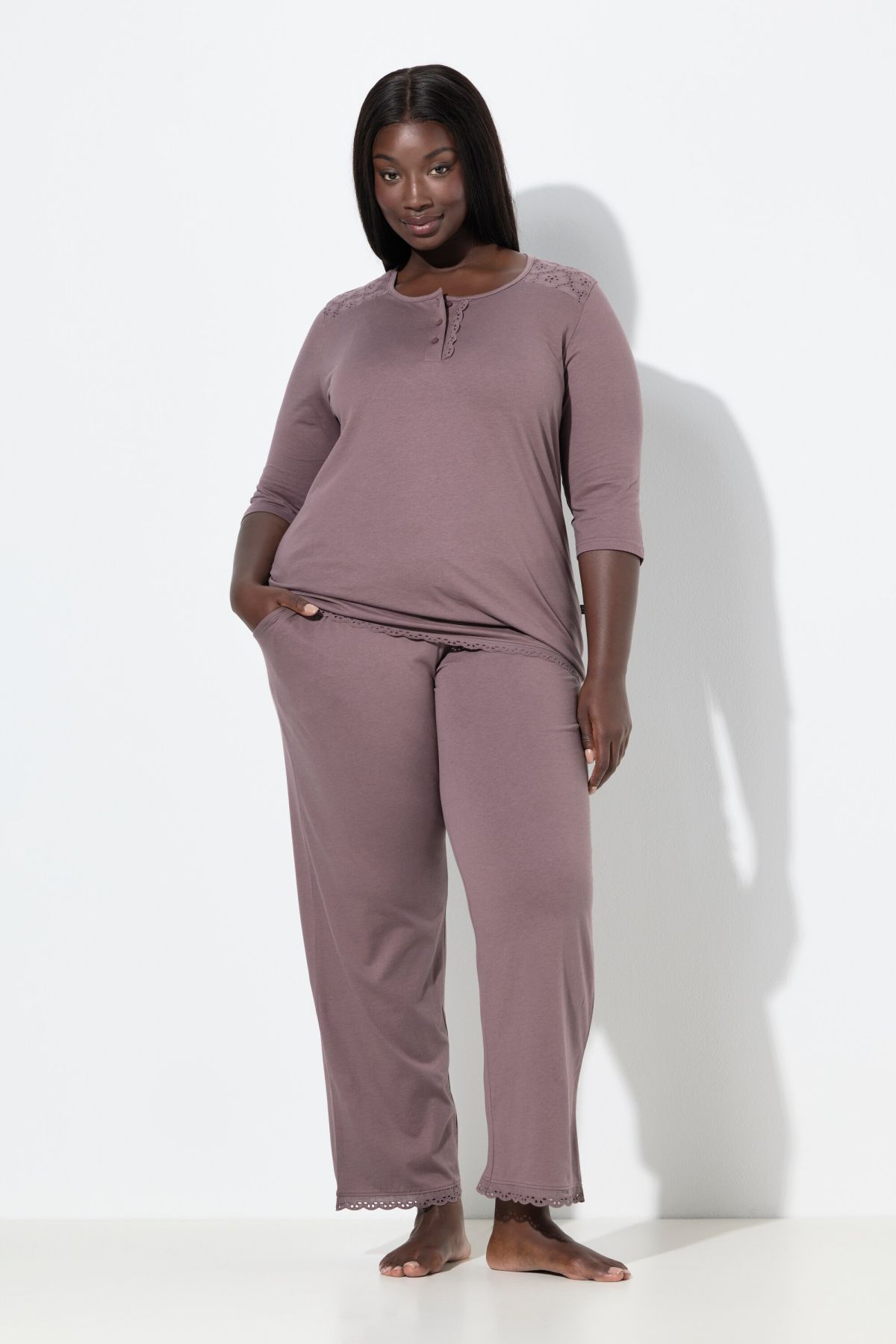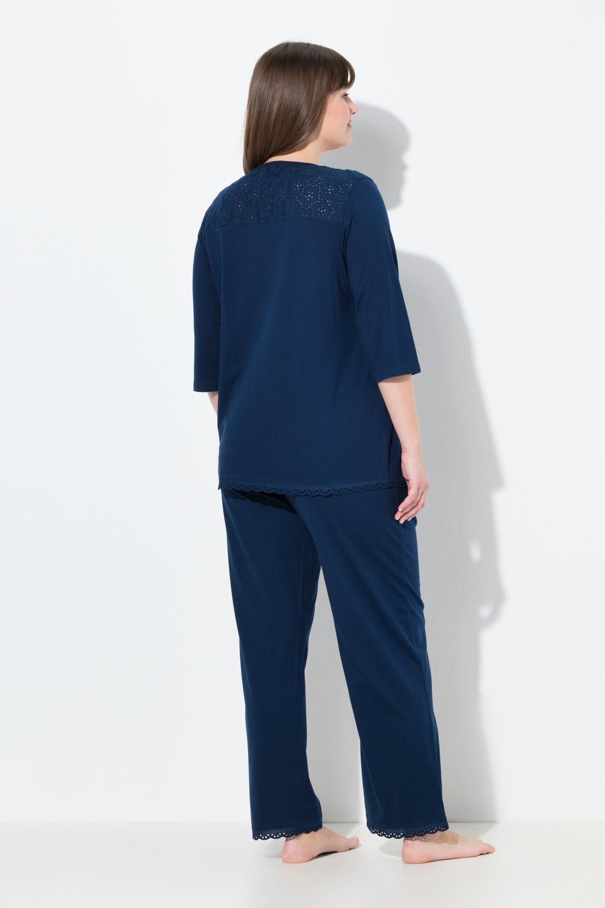 Broderie Anglaise Detail Pajama Set - Sleep the night away in this classic two-piece set.