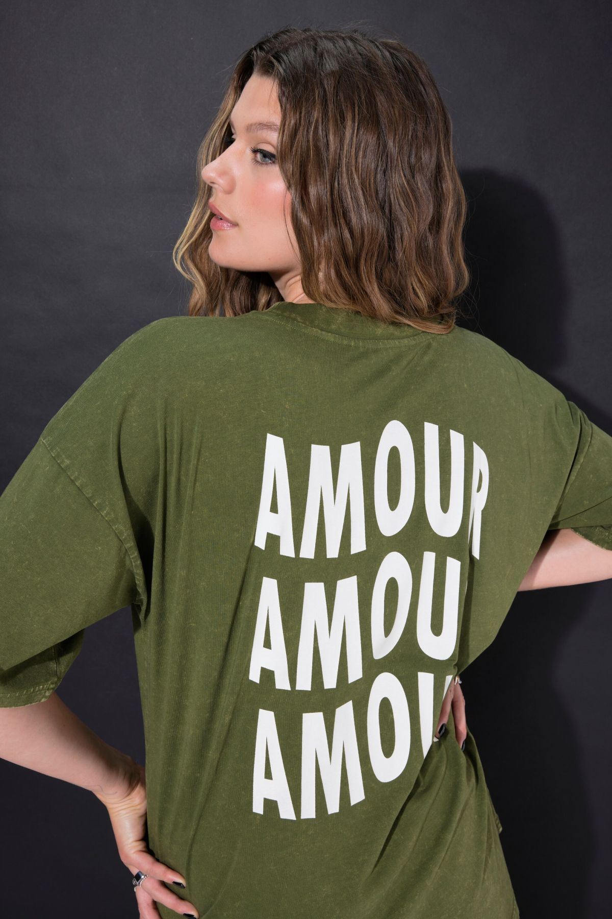 oversized shirt, acid washed, AMOUR back print