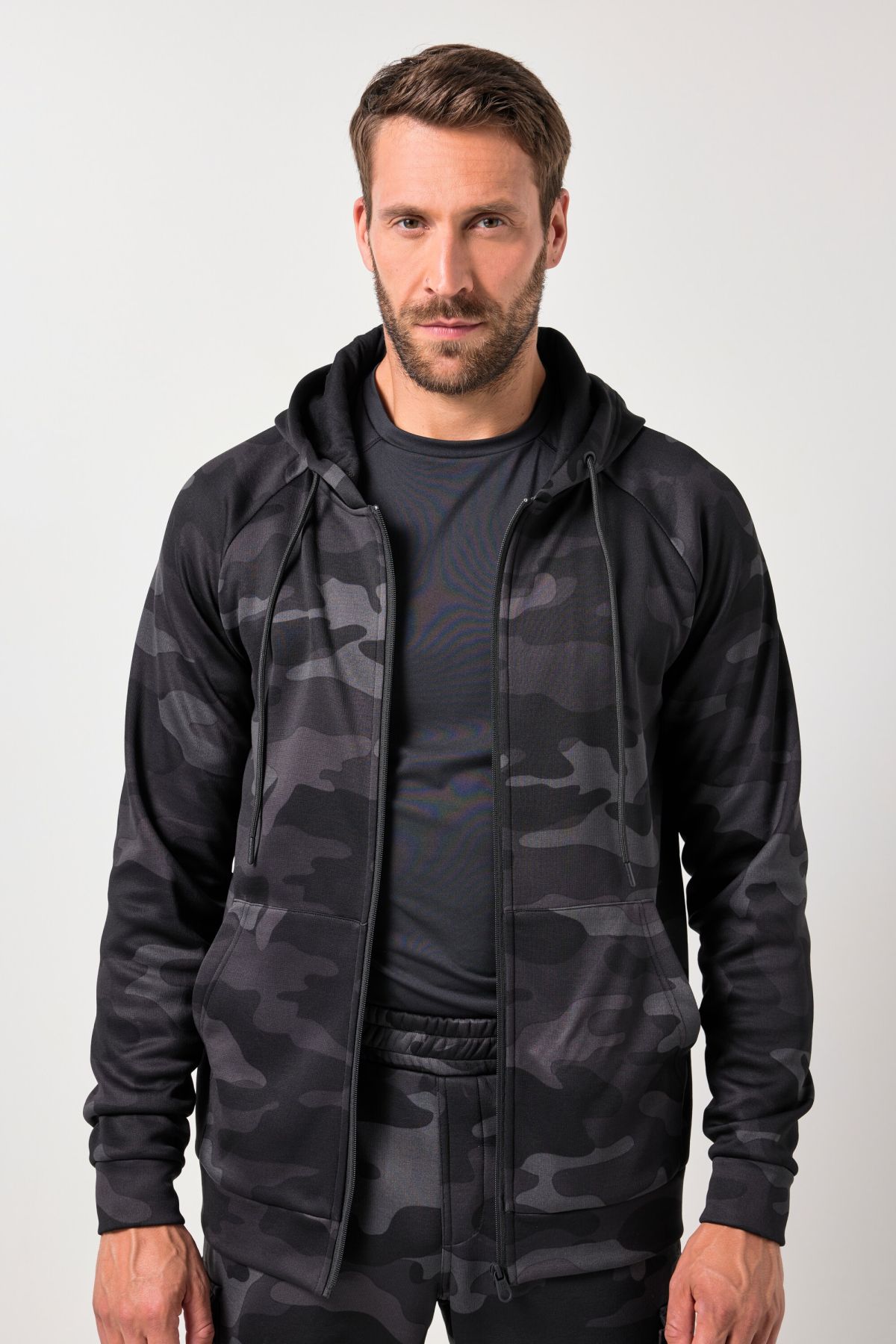 JAY-PI tracksuit jacket, fitness, jumper, camouflage, hood, up to 7 XL