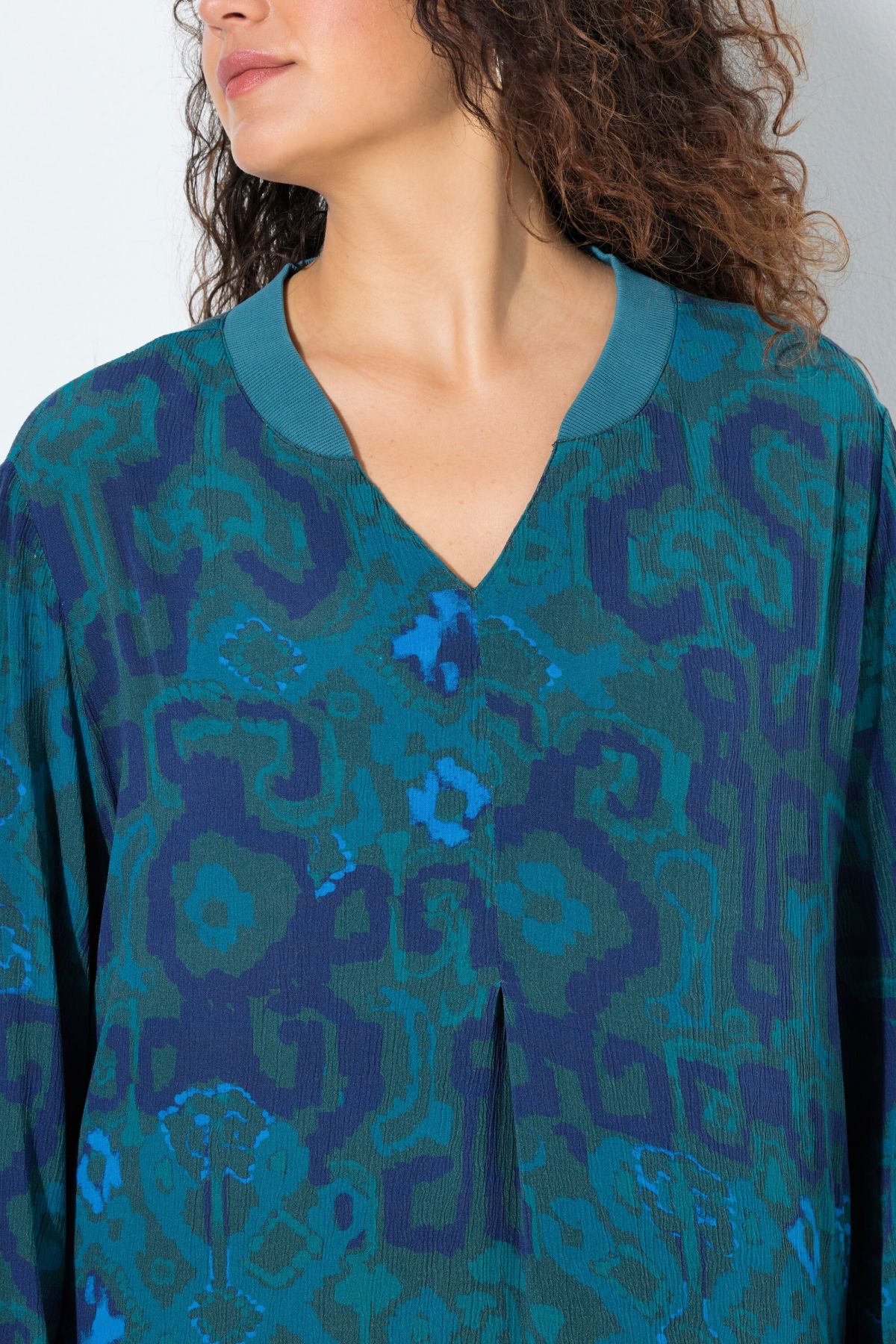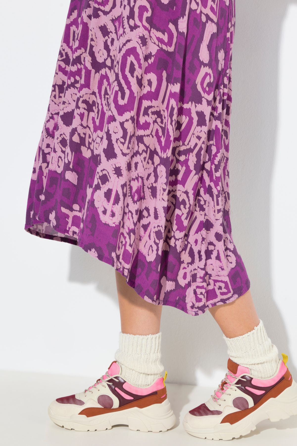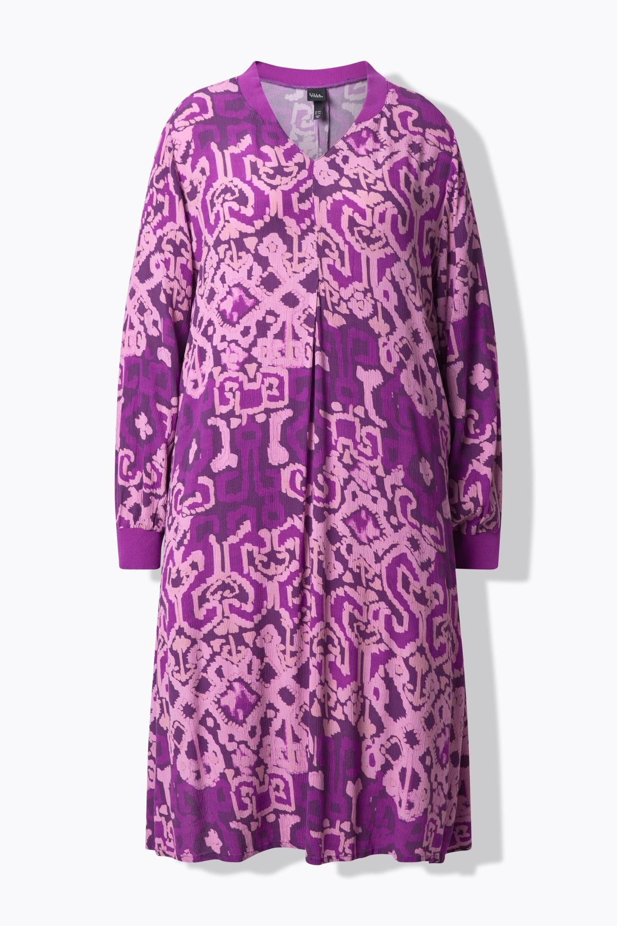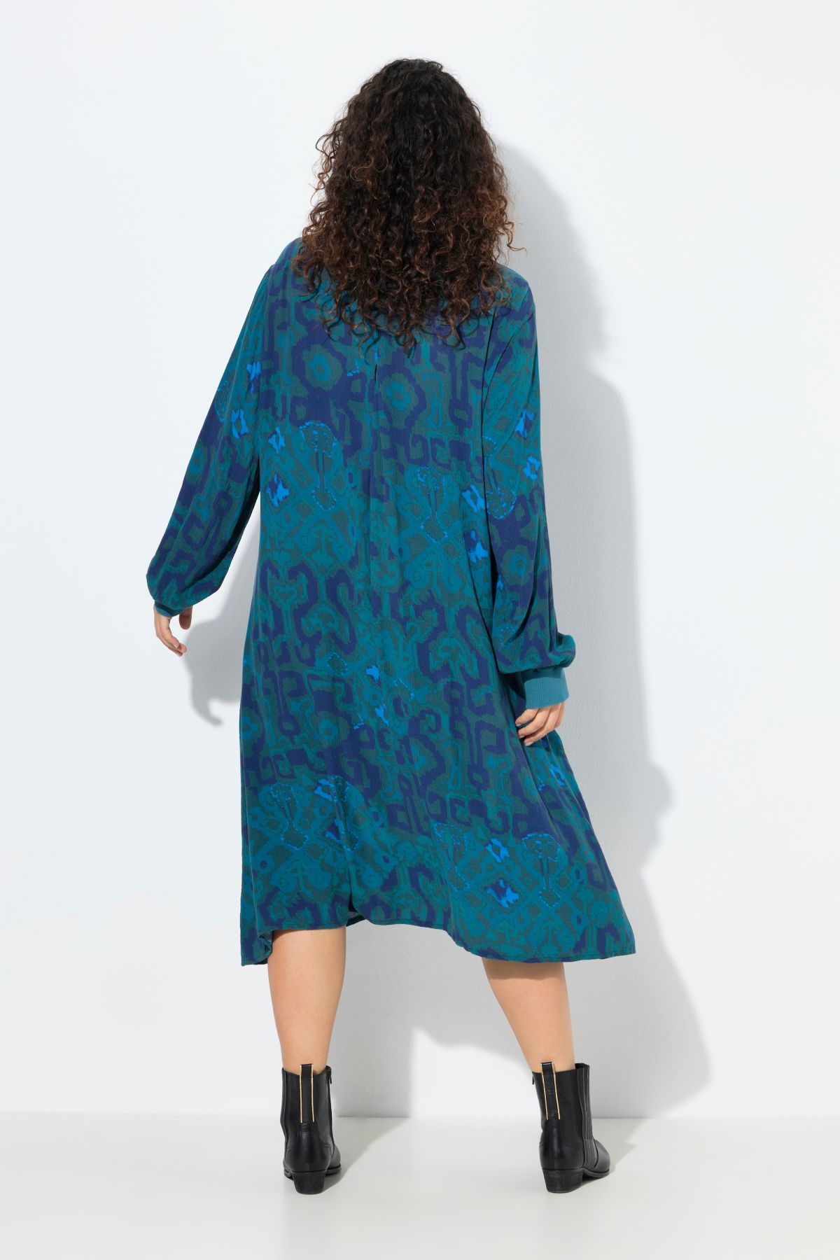 Ikat-Inspired Printed Dress - A relaxed silhouette with wide bell sleeves for a breezy, laid-back vibe.