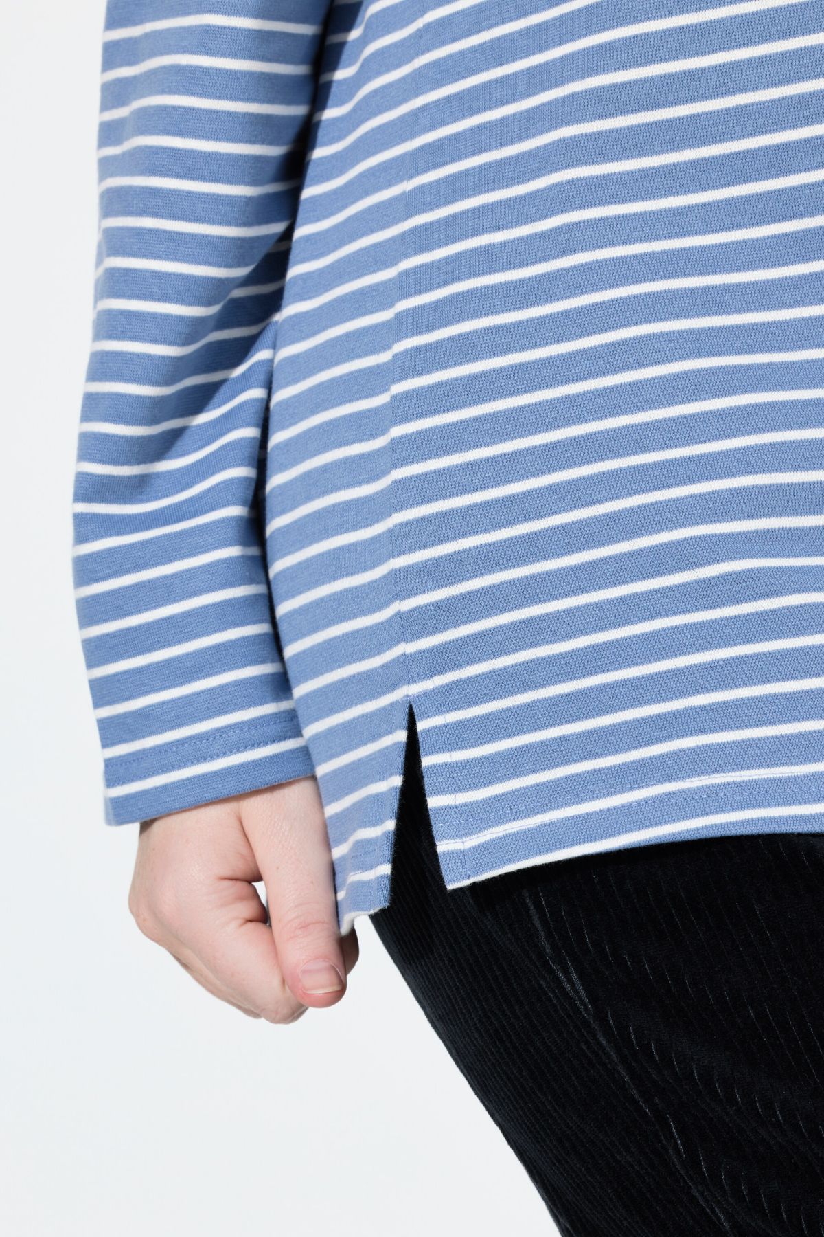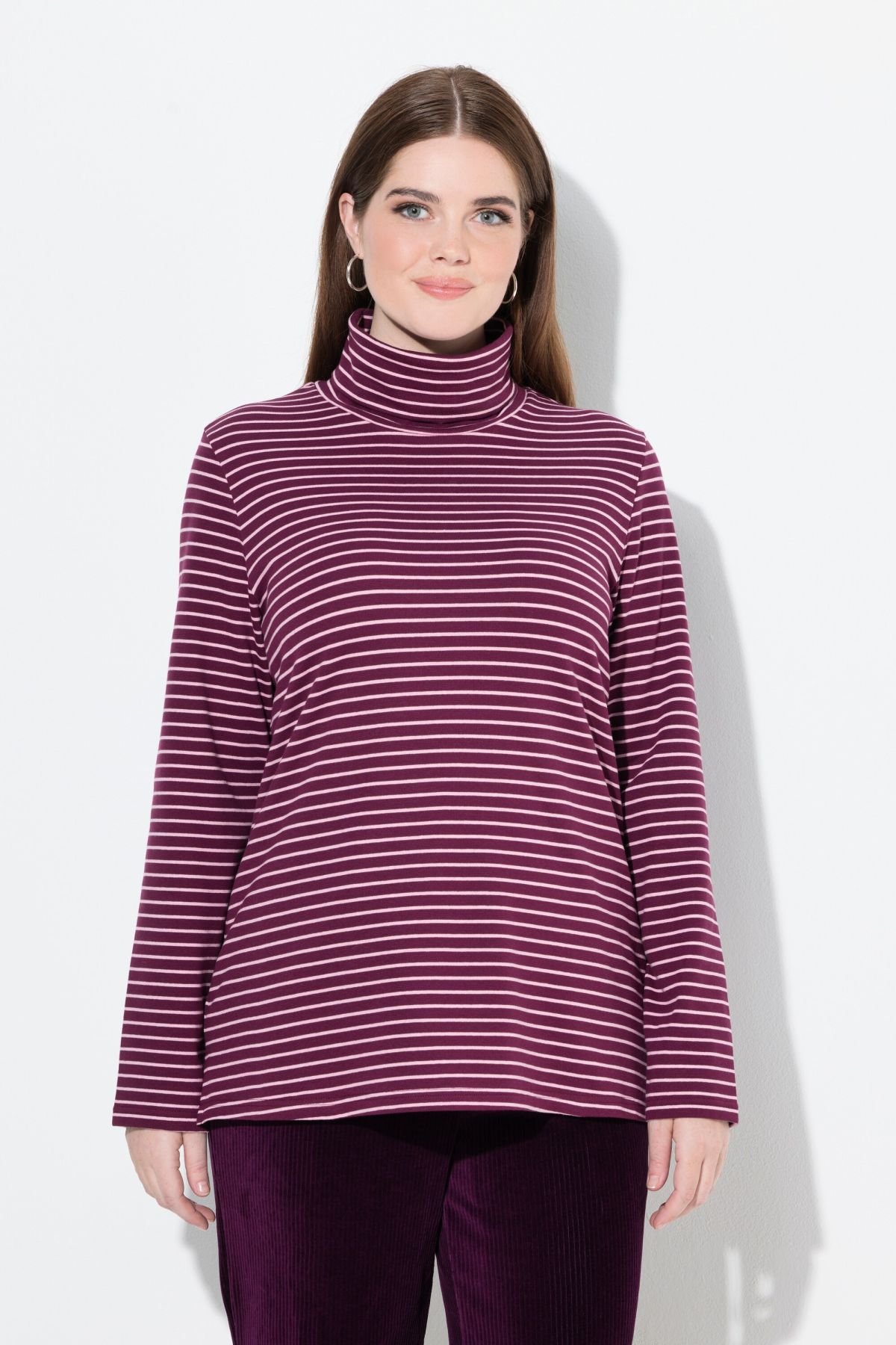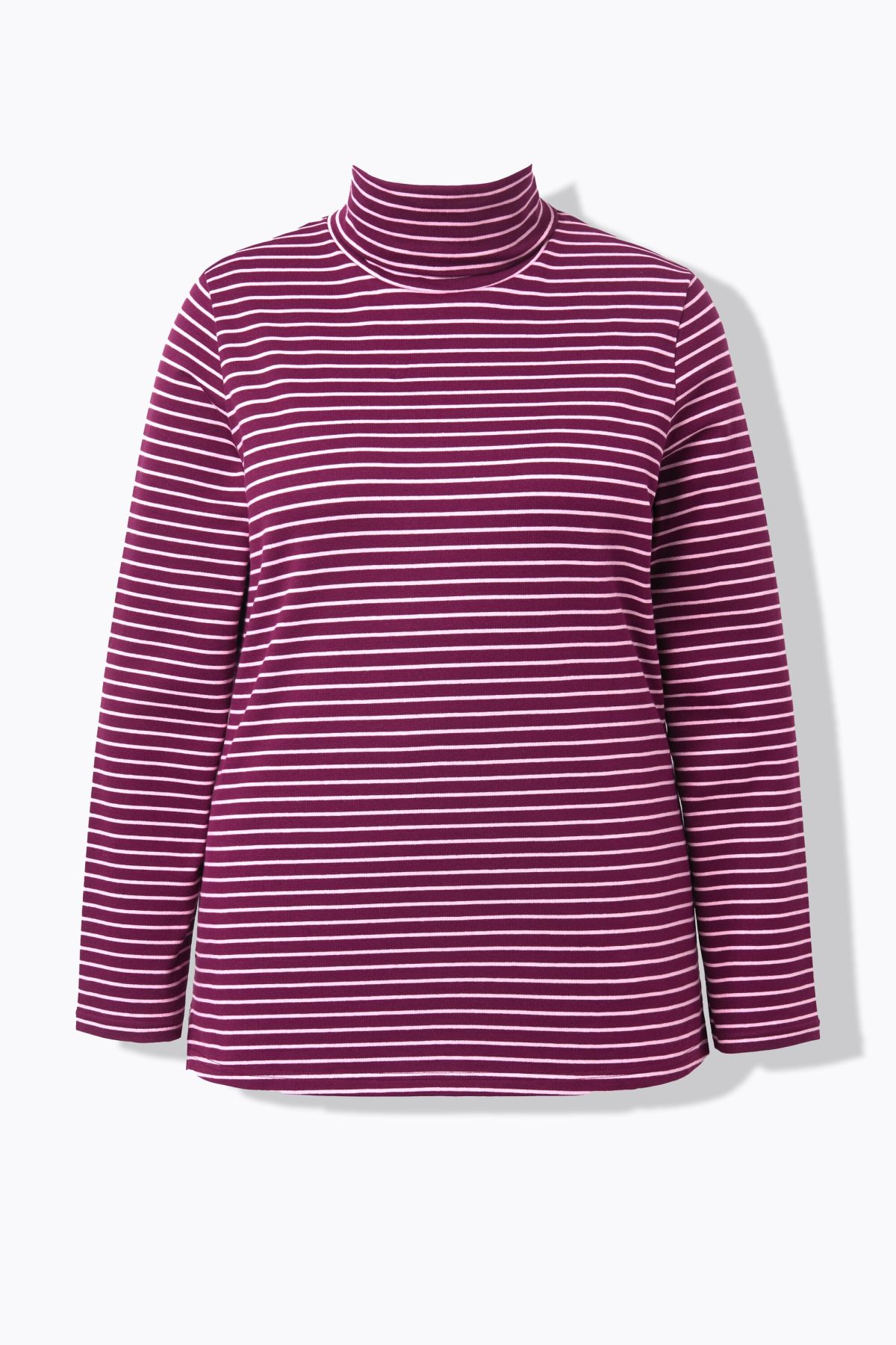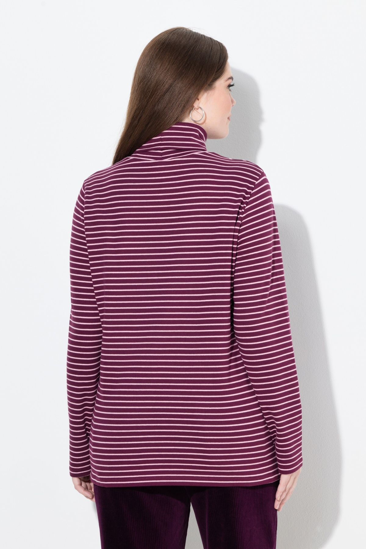 Eco Cotton Stripe Rib Knit Turtleneck - a comfortable classic that never goes out of style. Turtleneck and long sleeves. Body hugging slim fit.