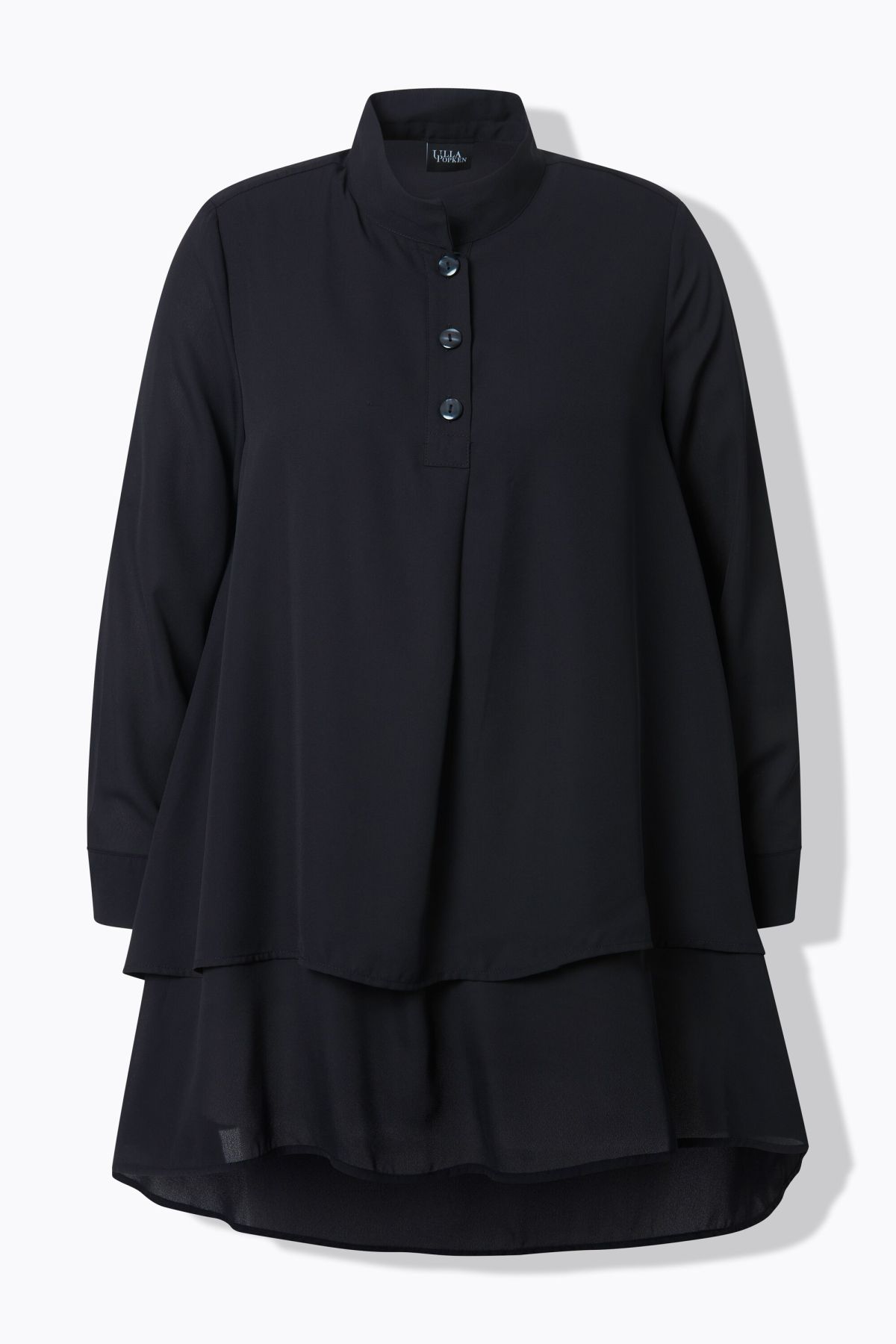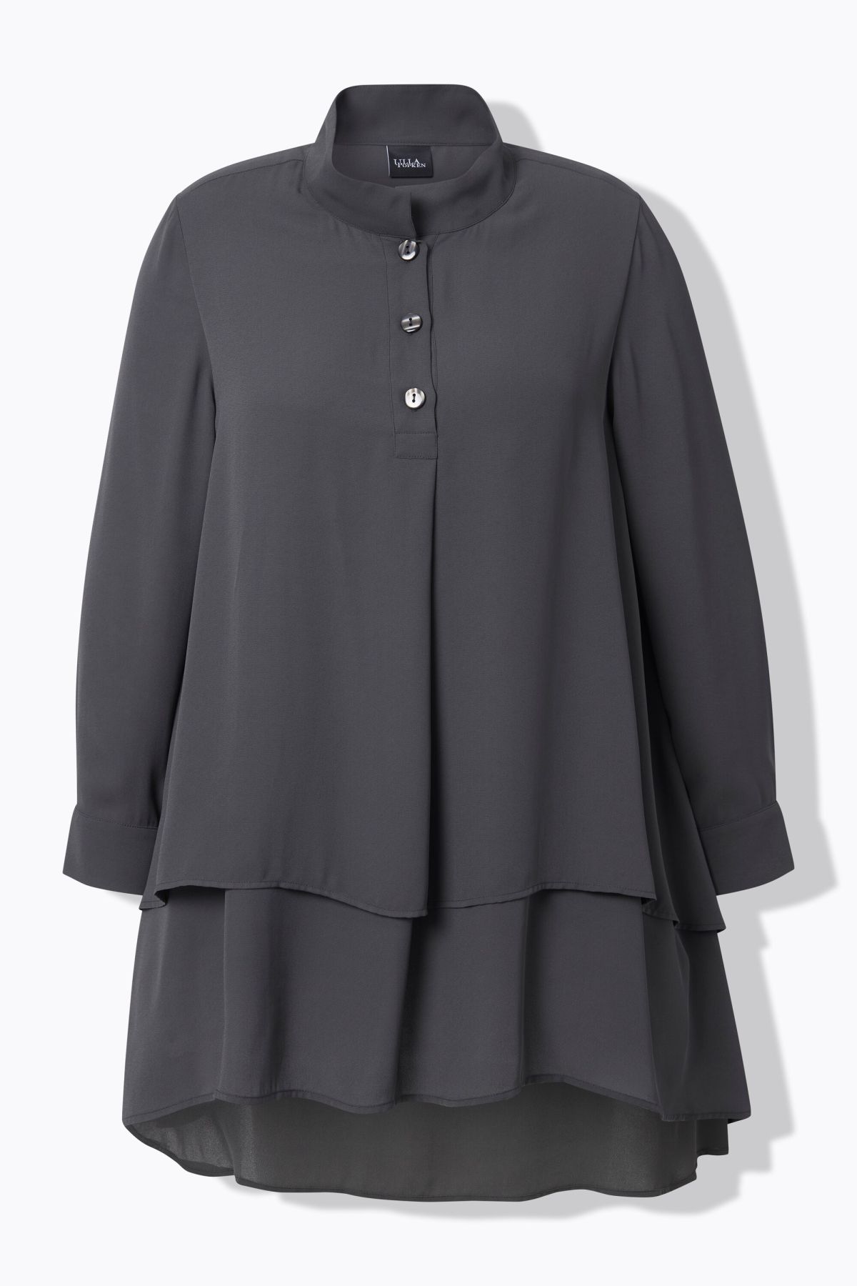 Layered Look Tunic Blouse - A high button-up collar and draped paneling at the hemline give this trendy pick a severe look.