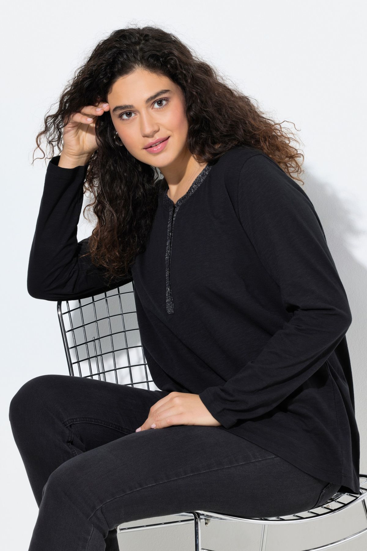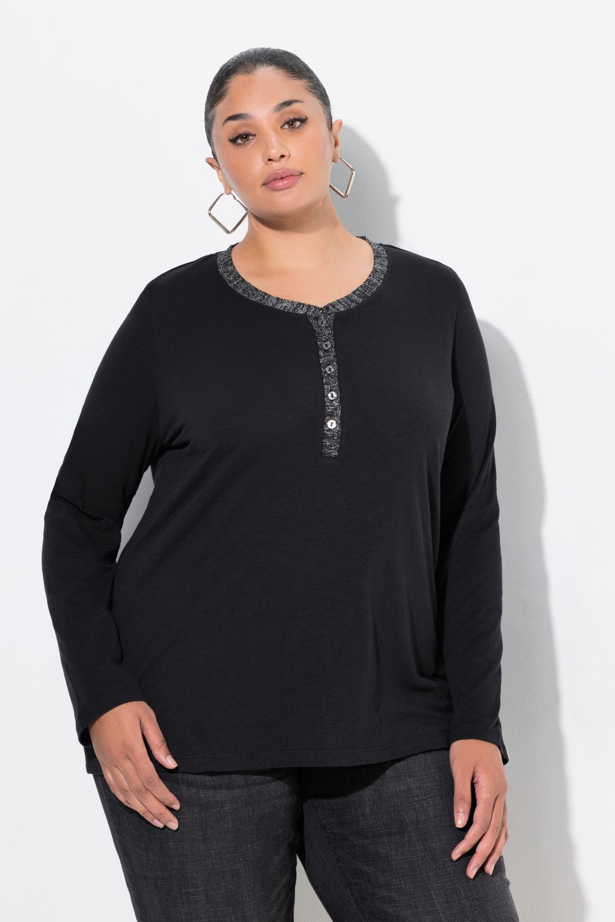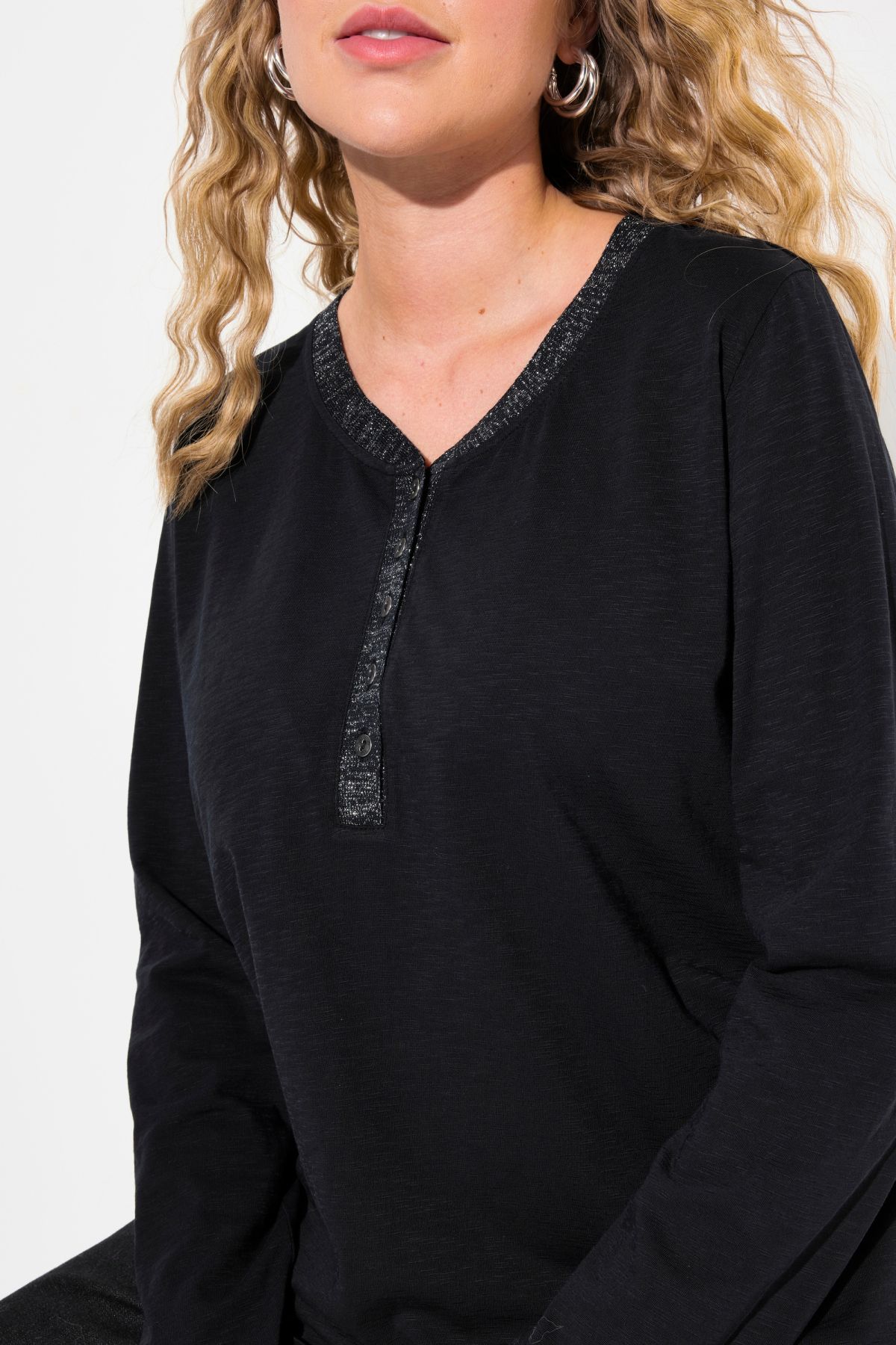 Glitter Detail Tee - Featuring a sparkling partial button placket for a dash of drama.