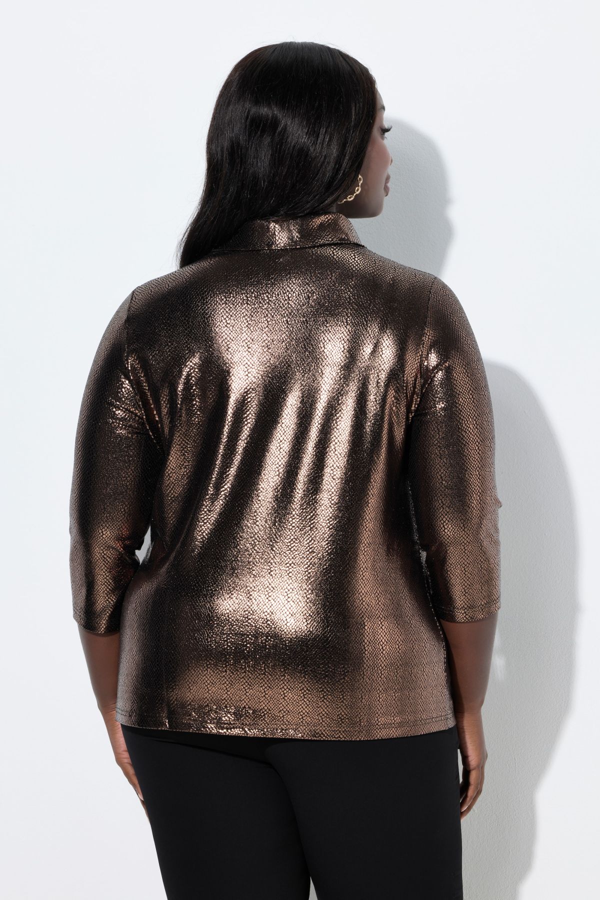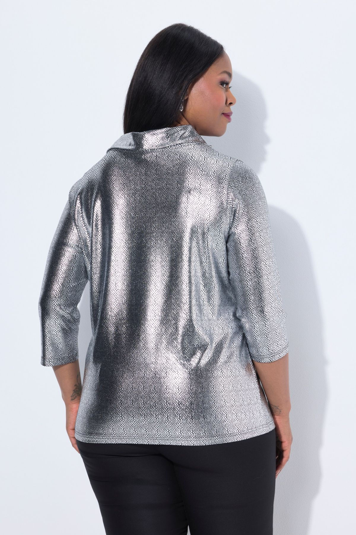 Metallic Cowl Neck 3/4 Sleeve Tee