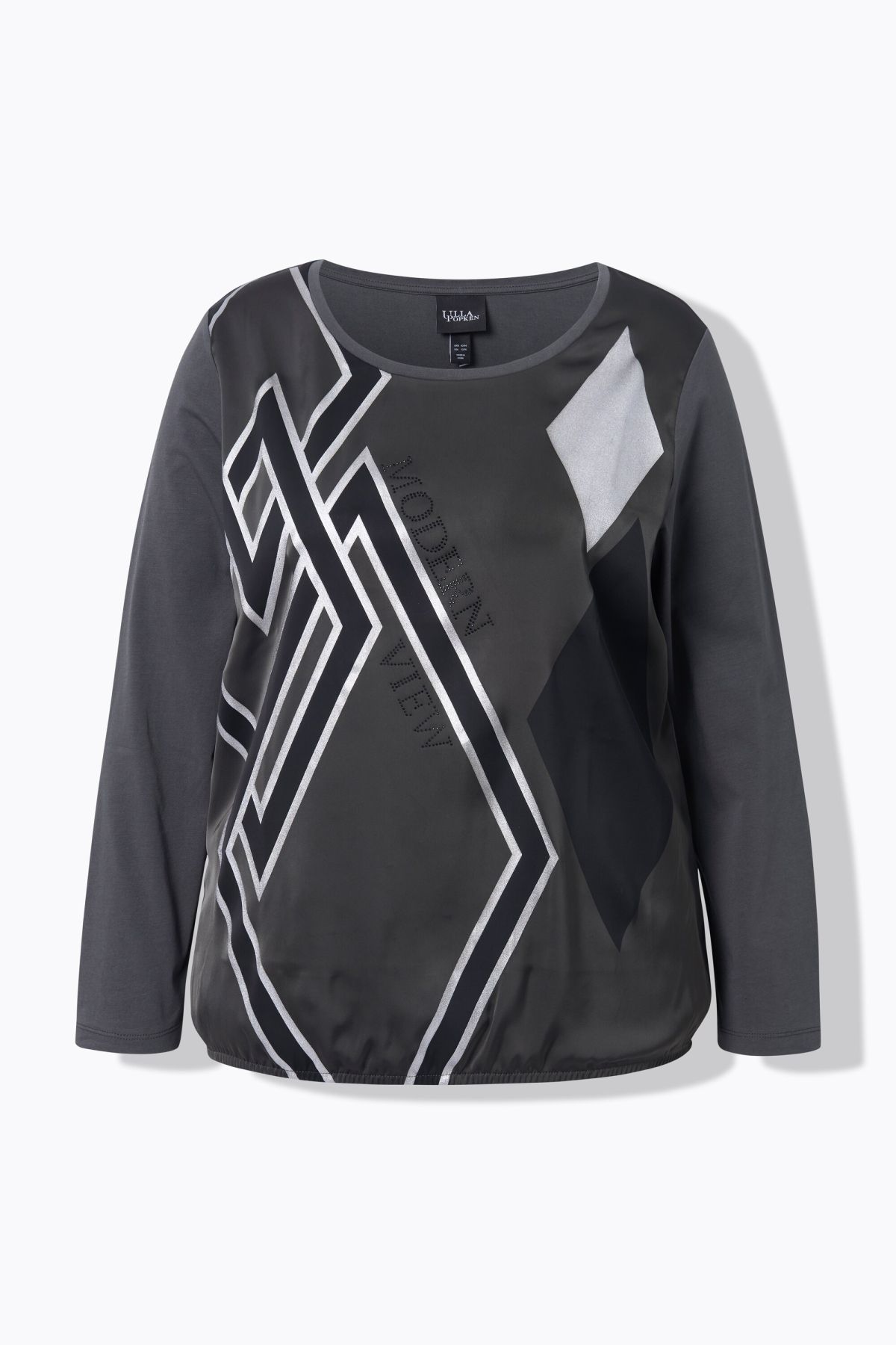 Diamond Graphic Tee - A shimmering woven front panel decorated with sparkling rhinestone lettering elevate this stretch fit style.