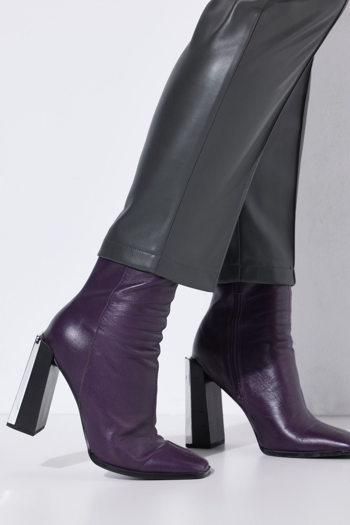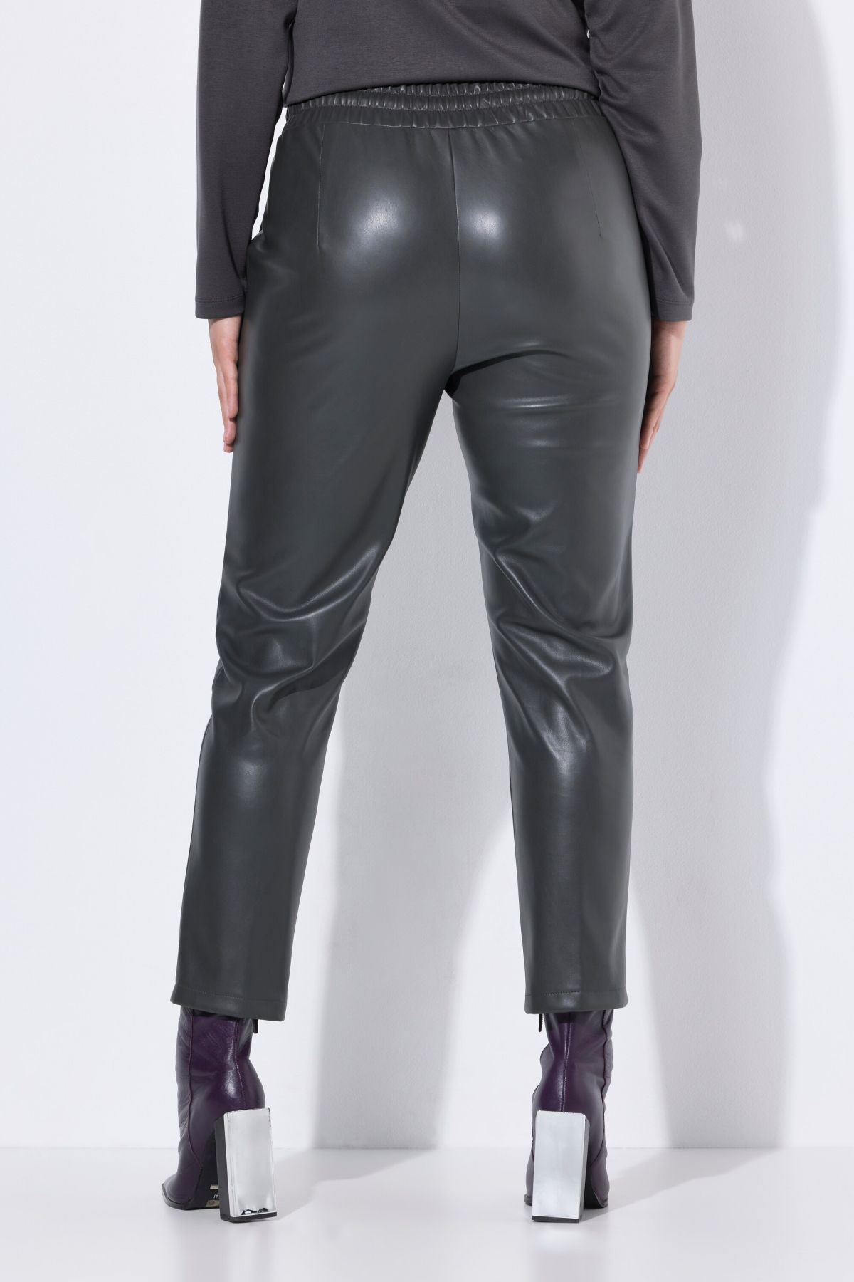 Faux Leather Pants# elegant and edgy at the same time, these front pleat pants have an elastic waistband for added comfort.