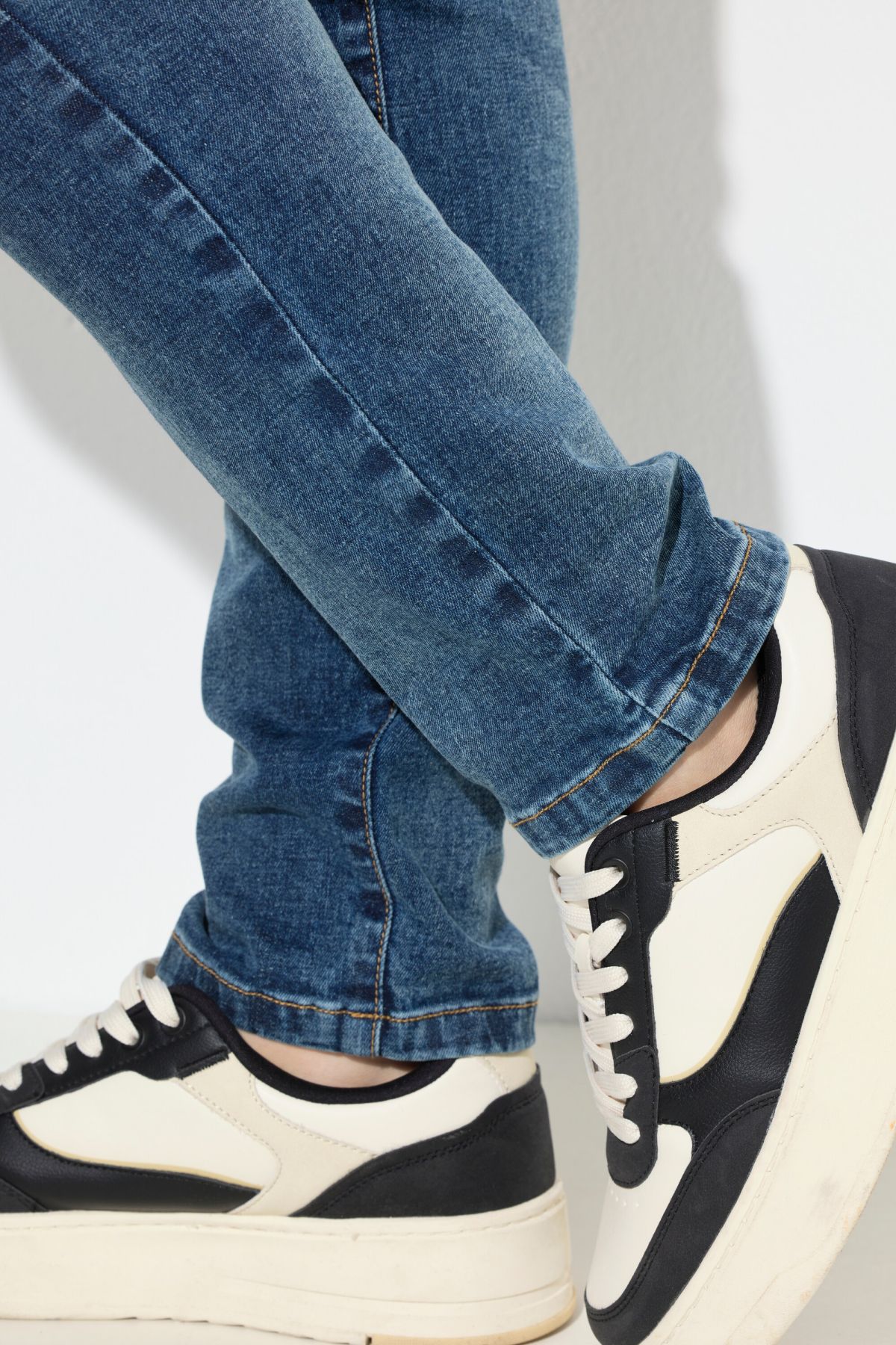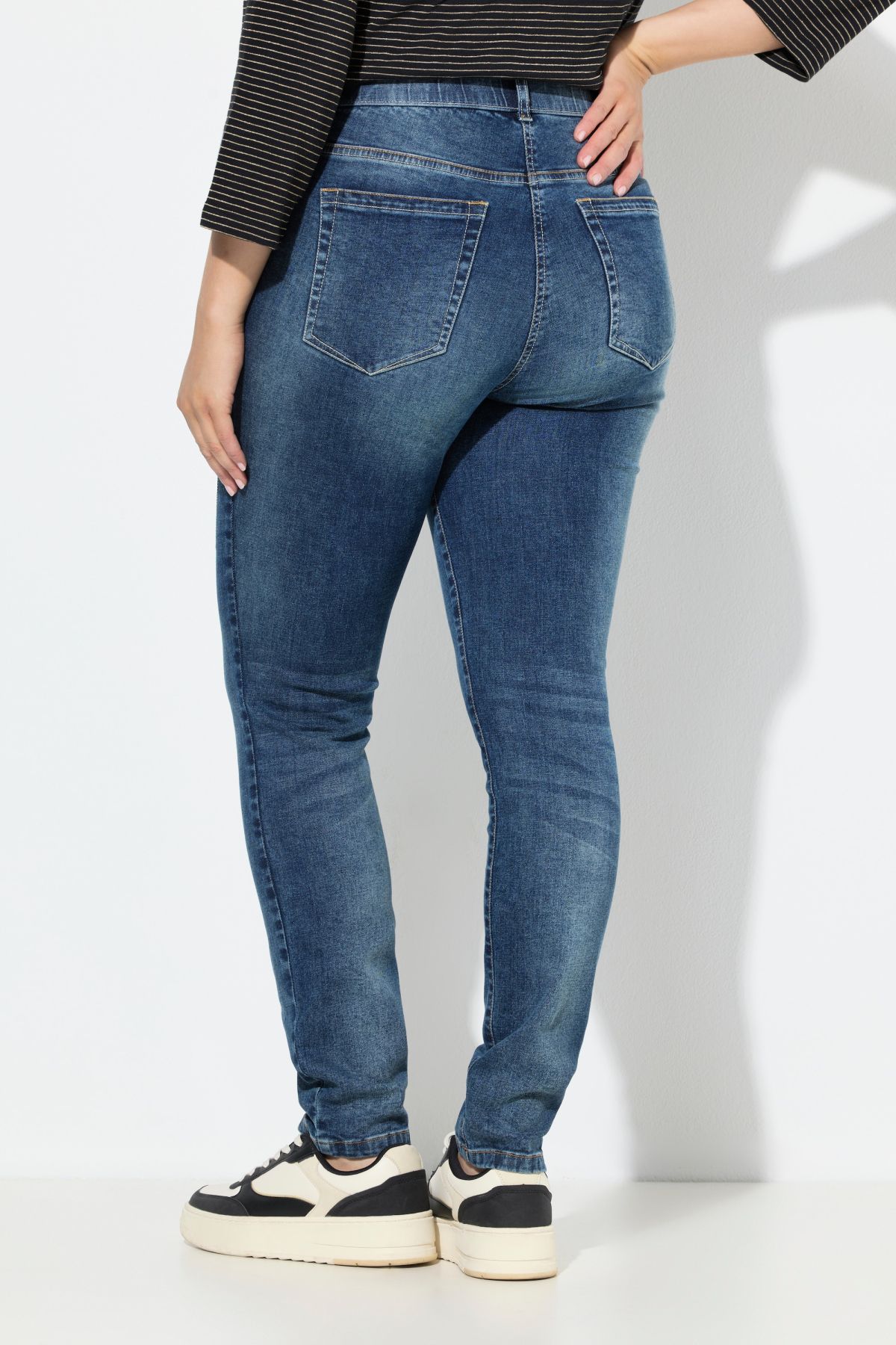 Мек деним с декоративни шевове, кройка Sarah с тесен, прав крачол, удобна талия с гайки за колан, кройка с 5 джоба с копче и цип, еластичен комфорт, вътрешен шев приблизително 78 см.