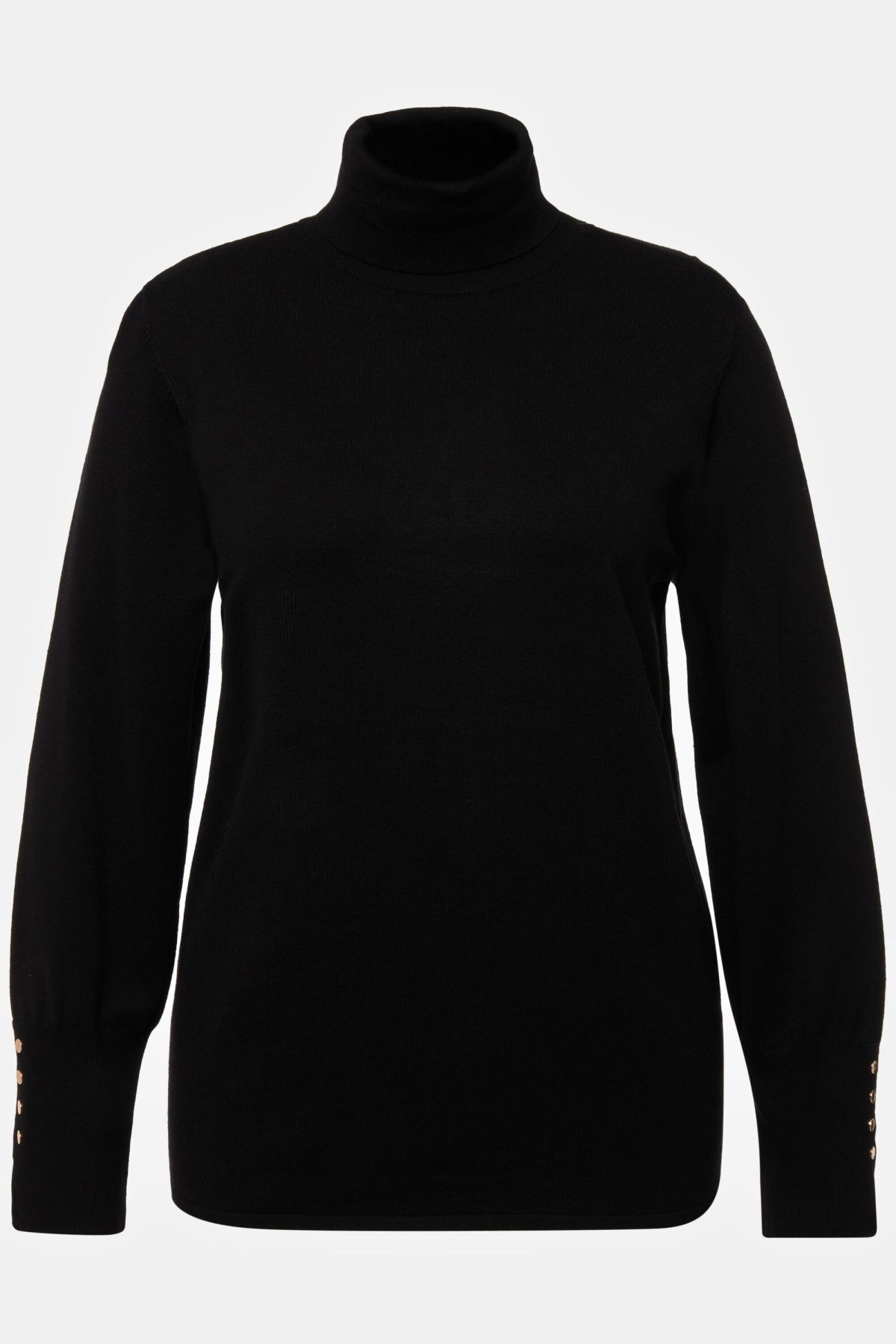 Turtleneck Sweater - Decorative buttons at the cuffs add a pop of metallic shine to this classically elegant look.