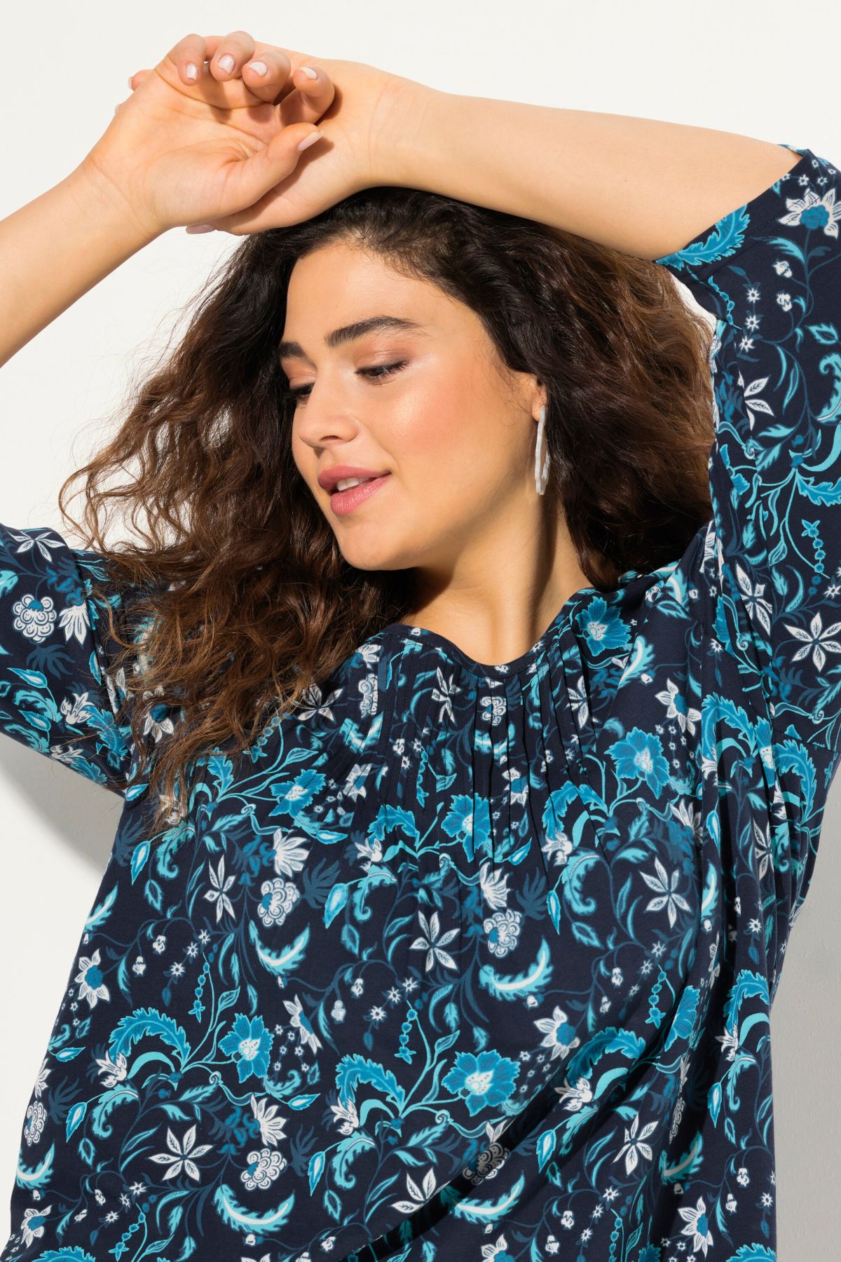 Pleated Floral 3/4 Sleeve A-Line Tee