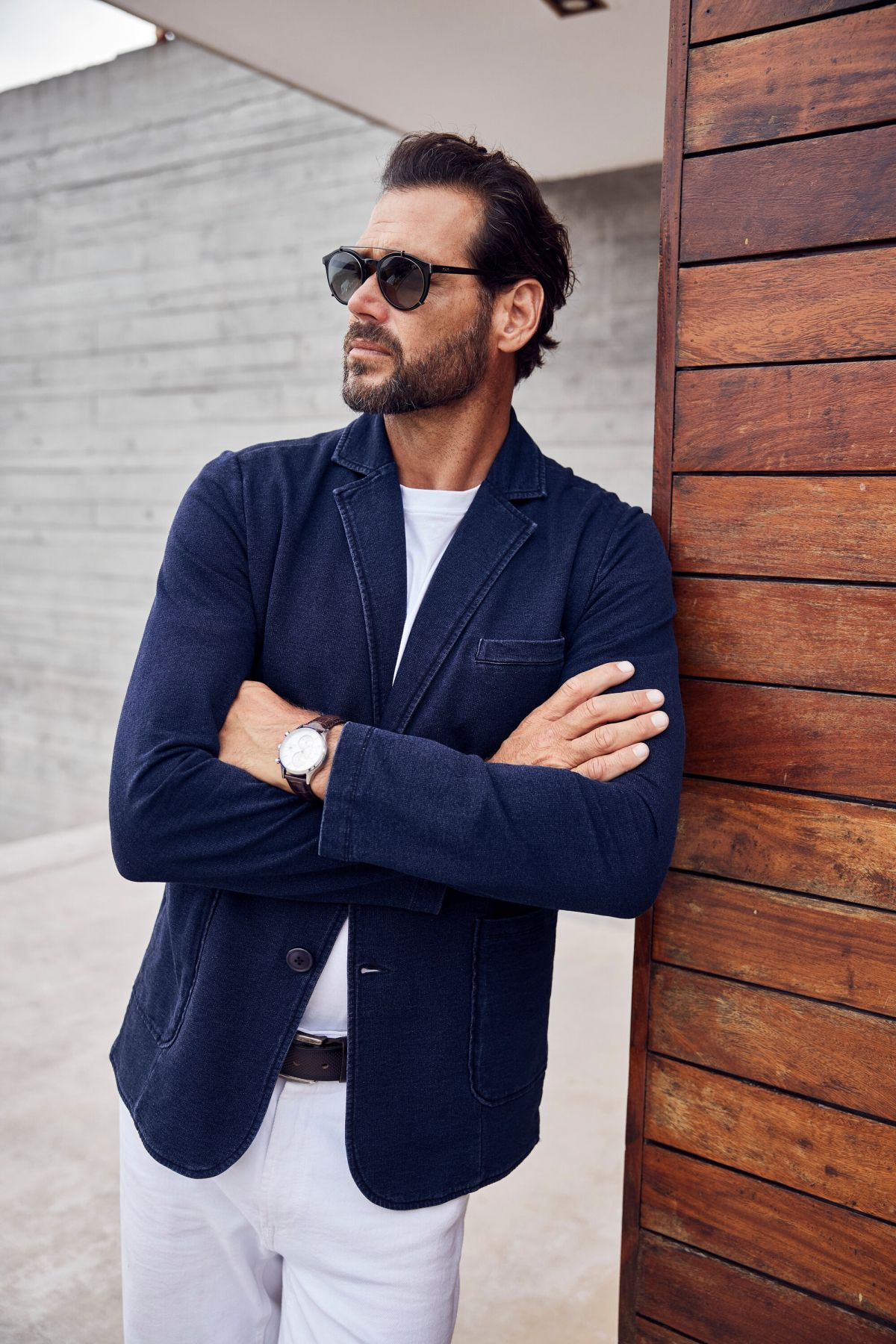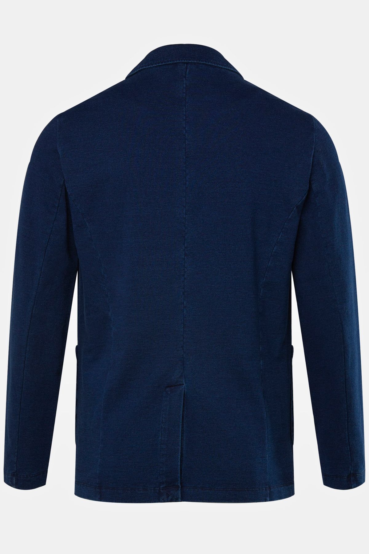 Sweat jacket, very casual made of high-quality sweat. Vintage look thanks to indigo dyeing. Lapel collar, button closure, chest pocket. Back slit. Comfortably cut and in perfect shape with every movement.