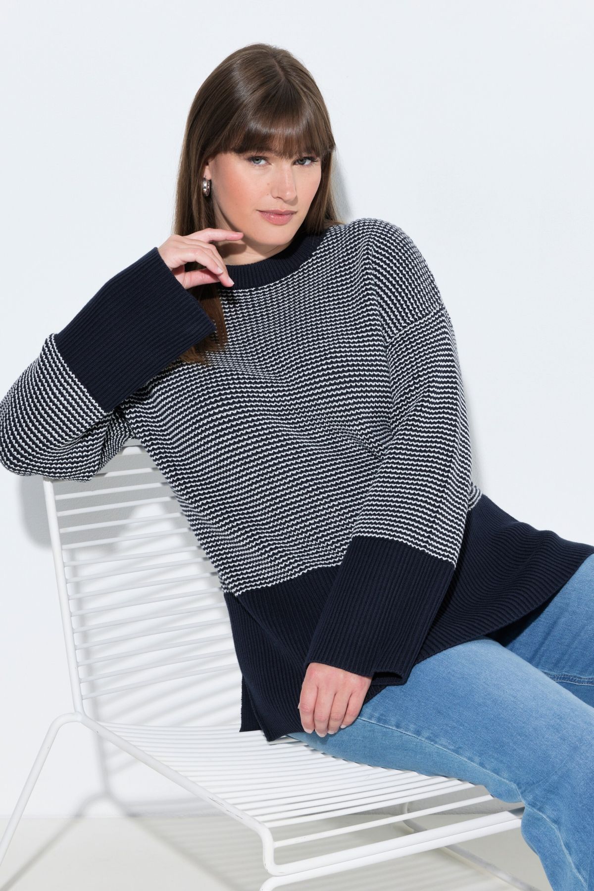 Eco Cotton Chevron Stripe Sweater Textured zigzag stripes add modern flair to this oversized silhouette.