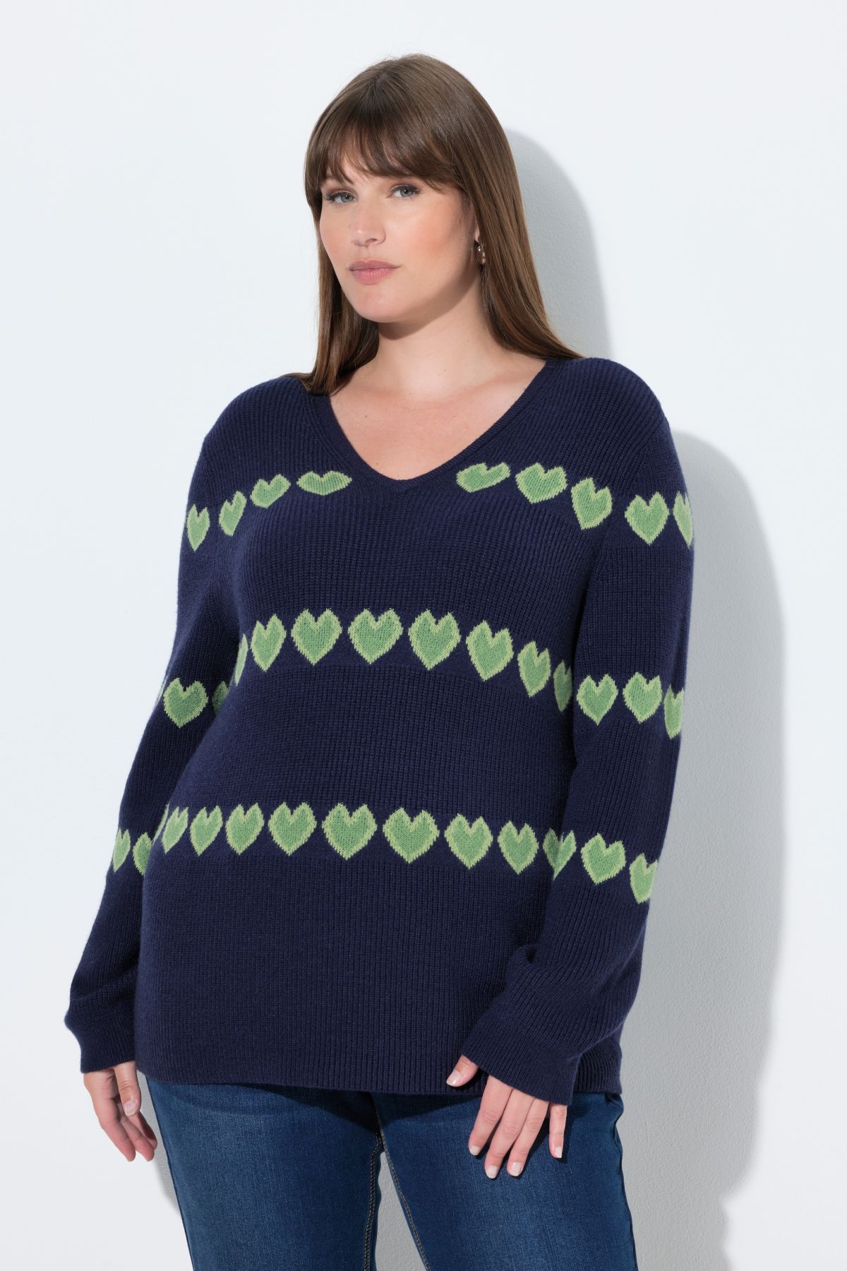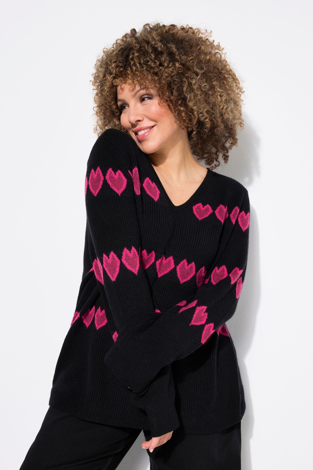 Home Newest February Sweaters Heart Print Long Sleeve V-Neck Sweater