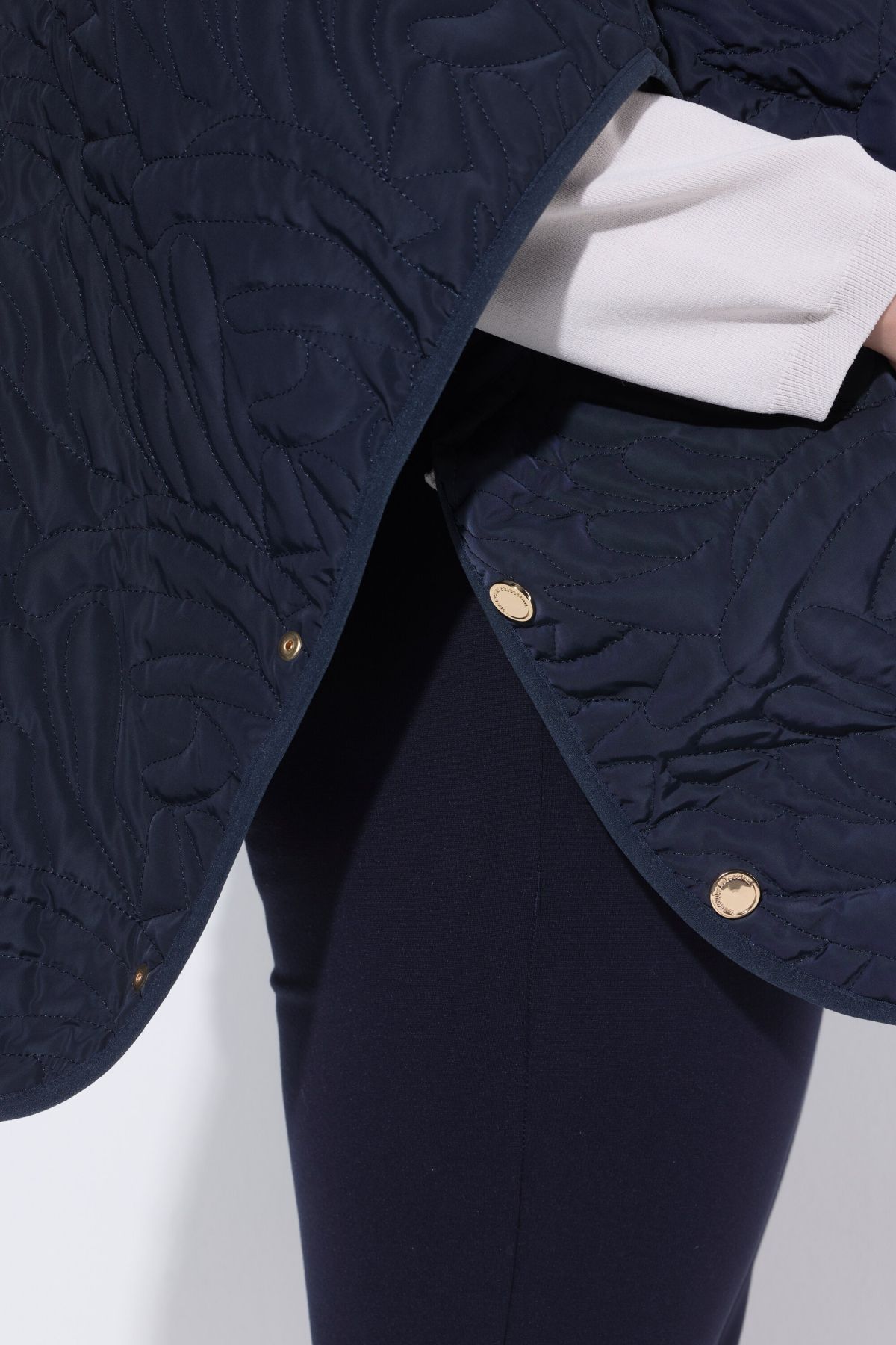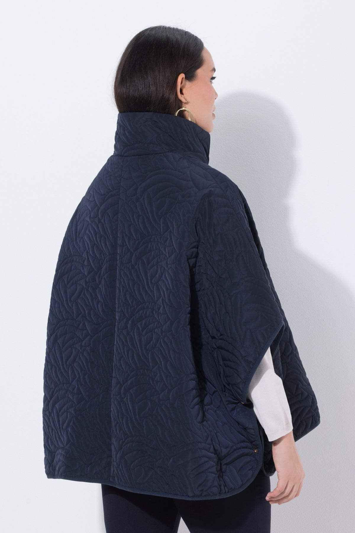 Floral Quilted Poncho Elevate your outerwear with textured floral quilting and velvet piping