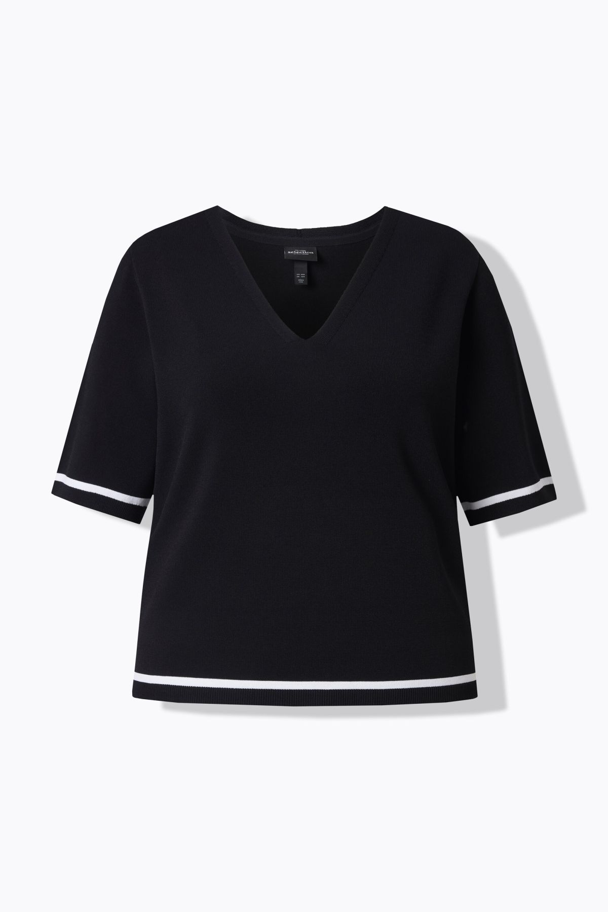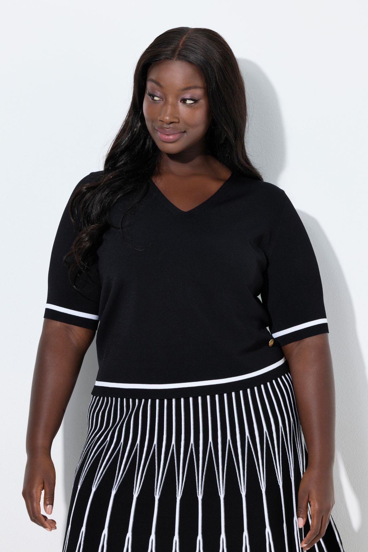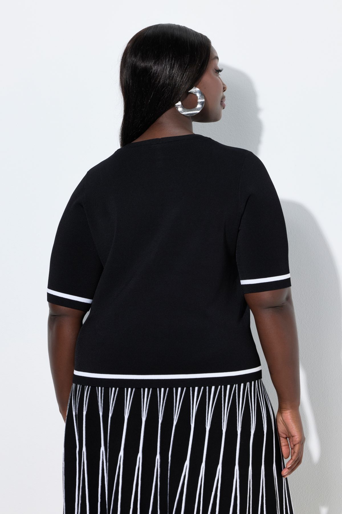 Short Sleeve Ribbed Knit Sweater A polished, fuss-free style.