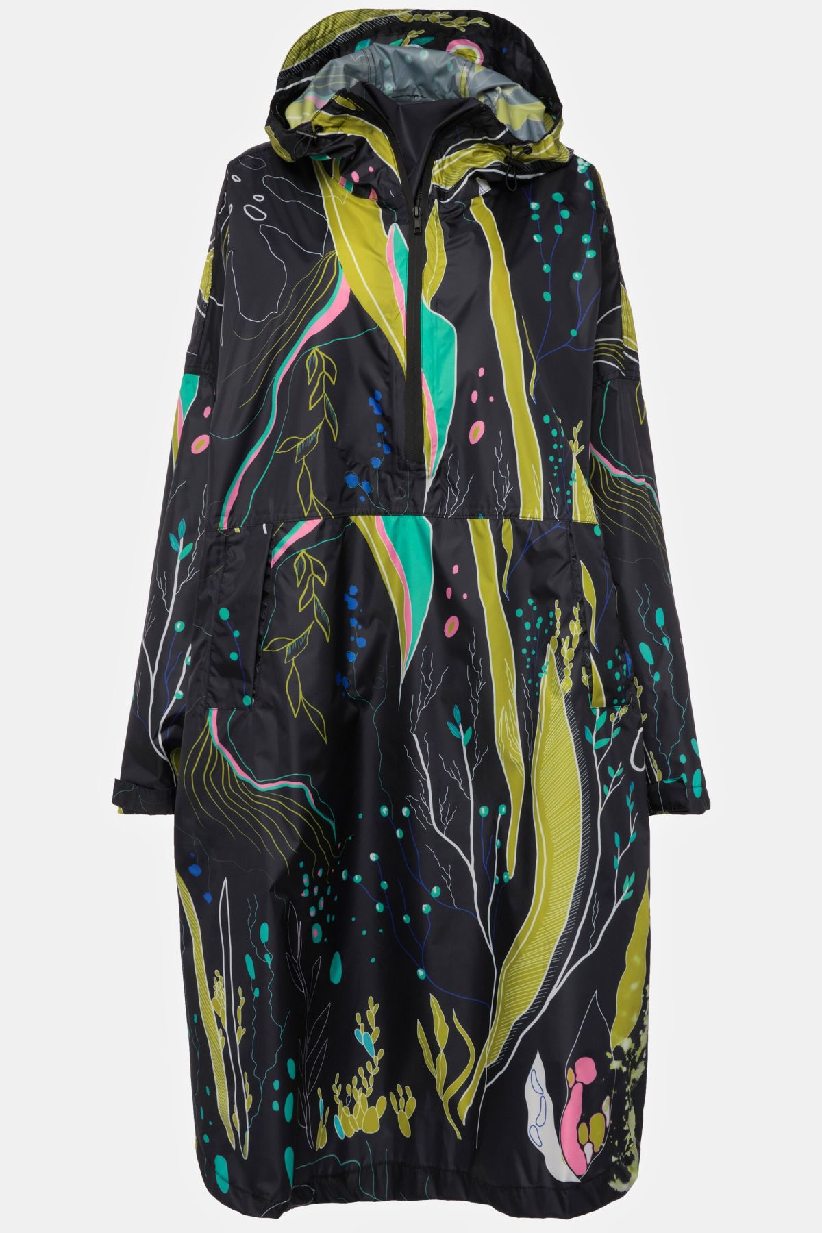 водоустойчива, ветроустойчива, дишаща, регулируема качулка с цип, дълги ръкави с велкро закопчалка, един размер, коригирана дължина около 110 см.
