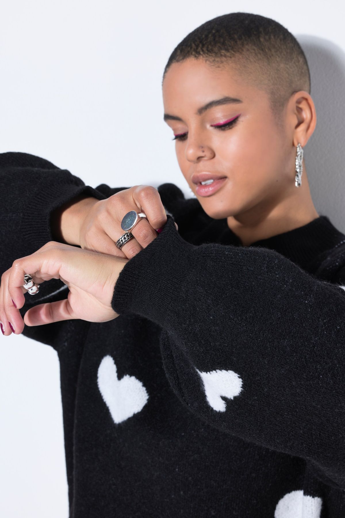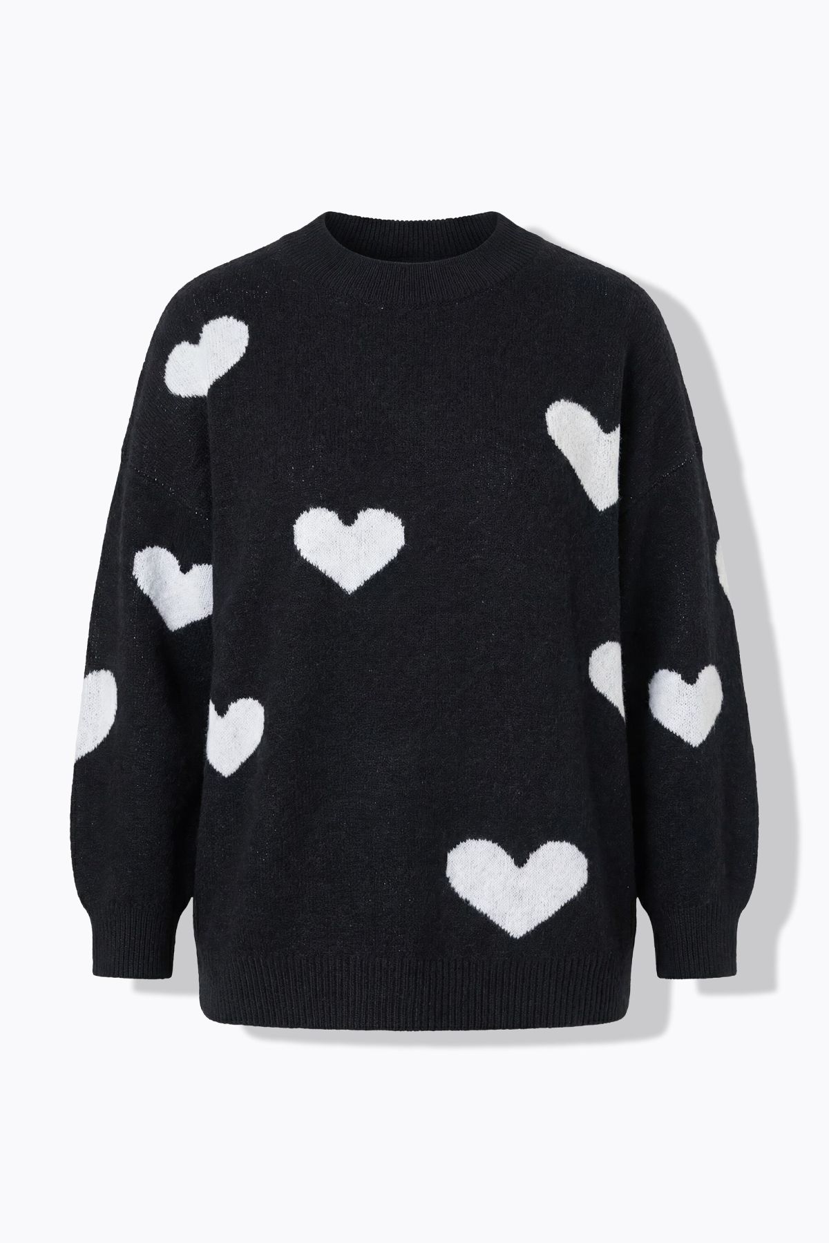 Sweater, oversized, HEARTS pattern, balloon long sleeve
