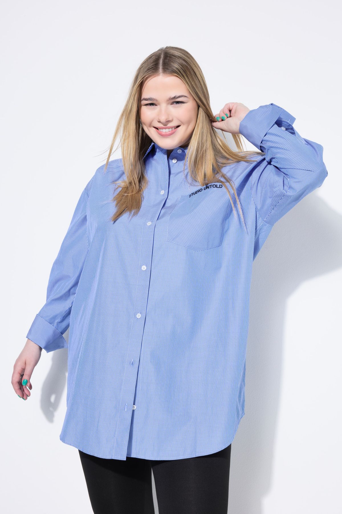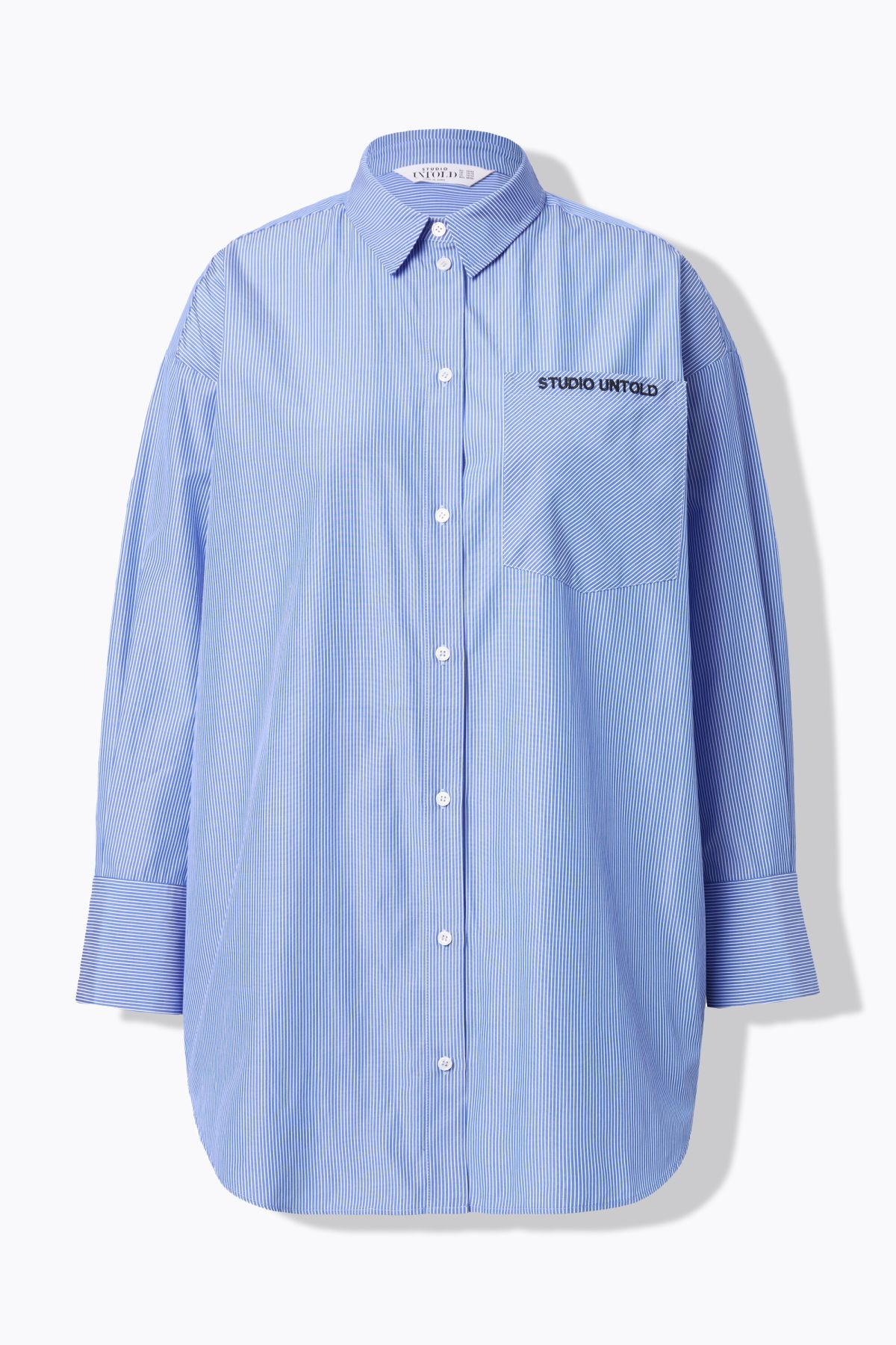 Striped oversized embroidered pocket shirt blouse