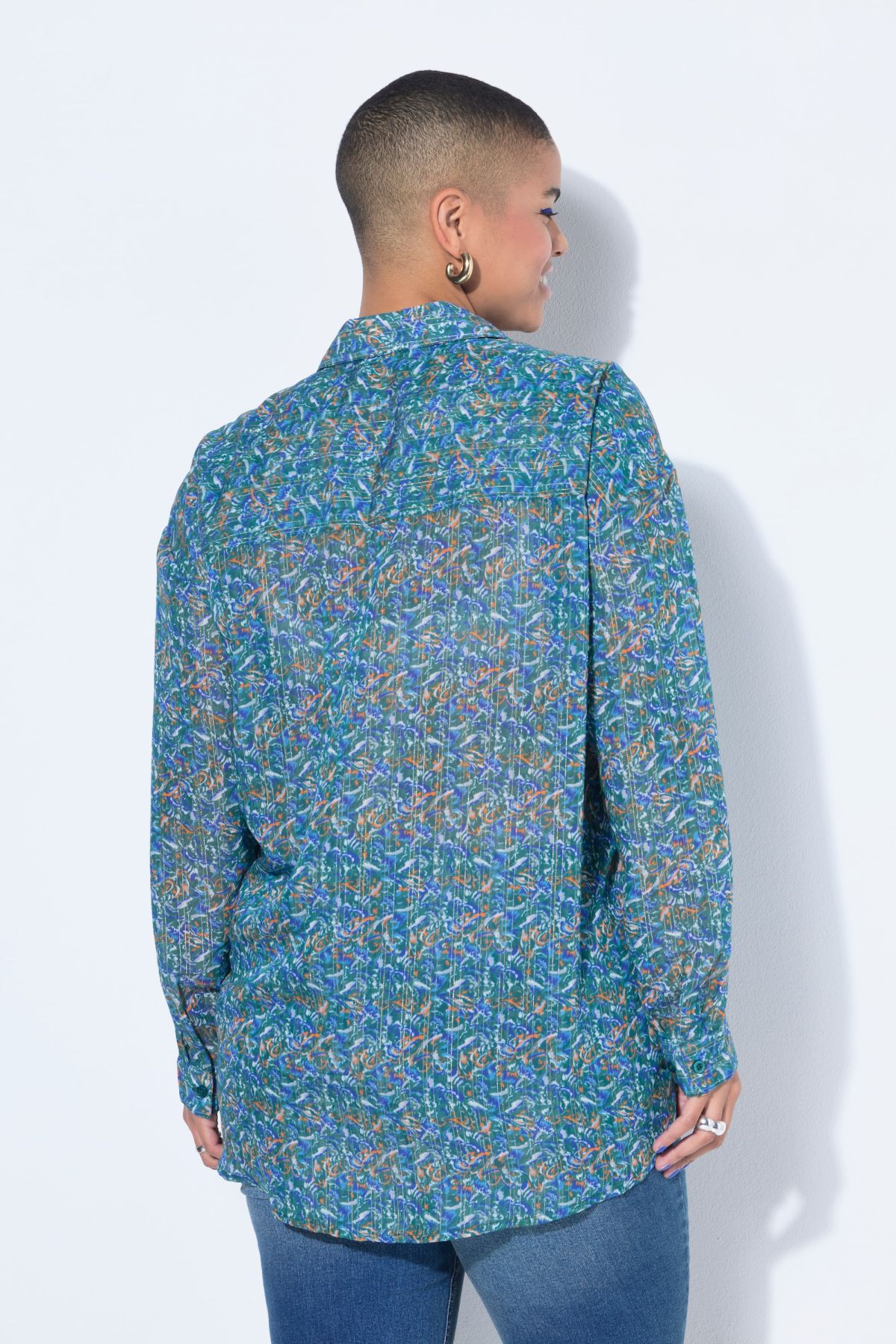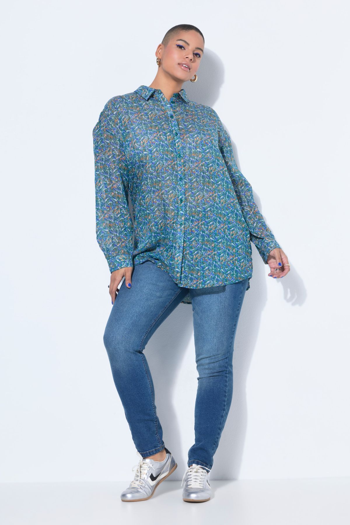 Blouse, oversize shape, pattern with glittery thread