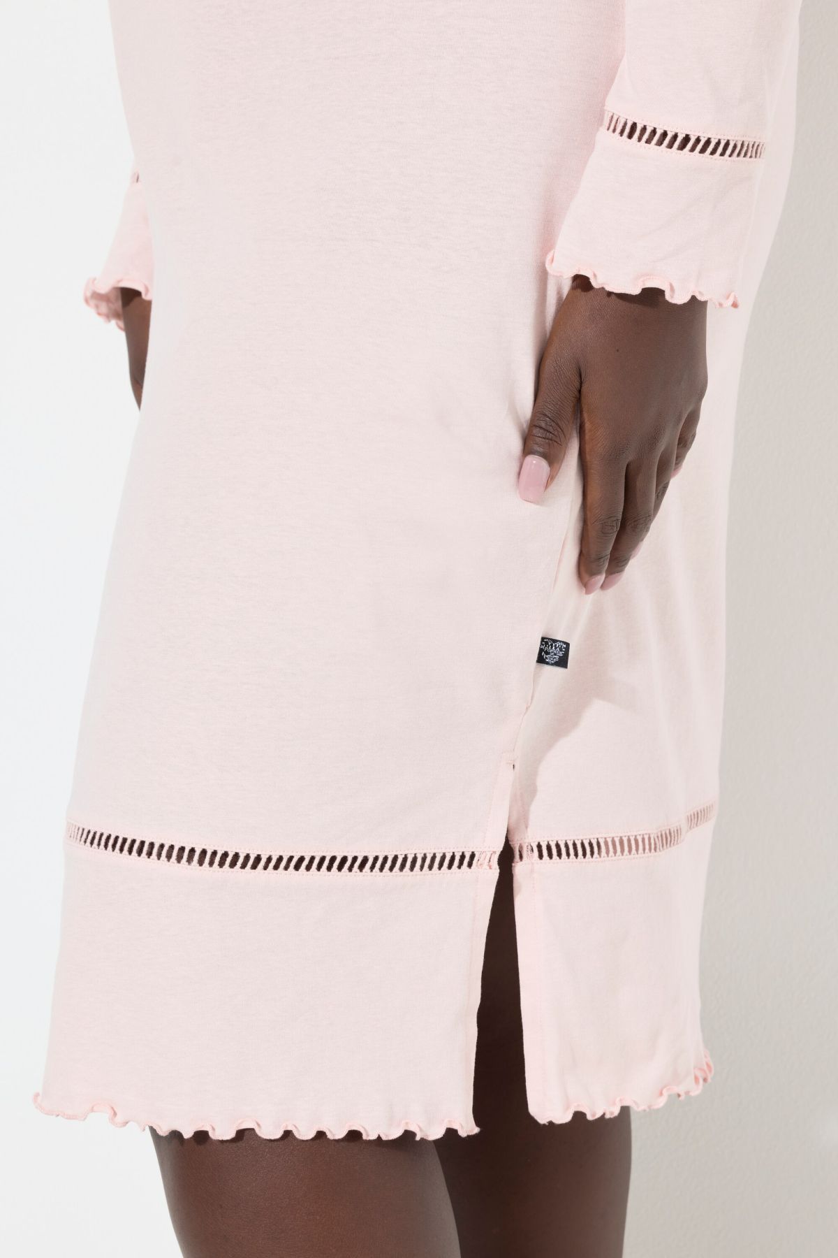 Ladder Lace Trim Lettuce Edge Cotton Knit Nightgown