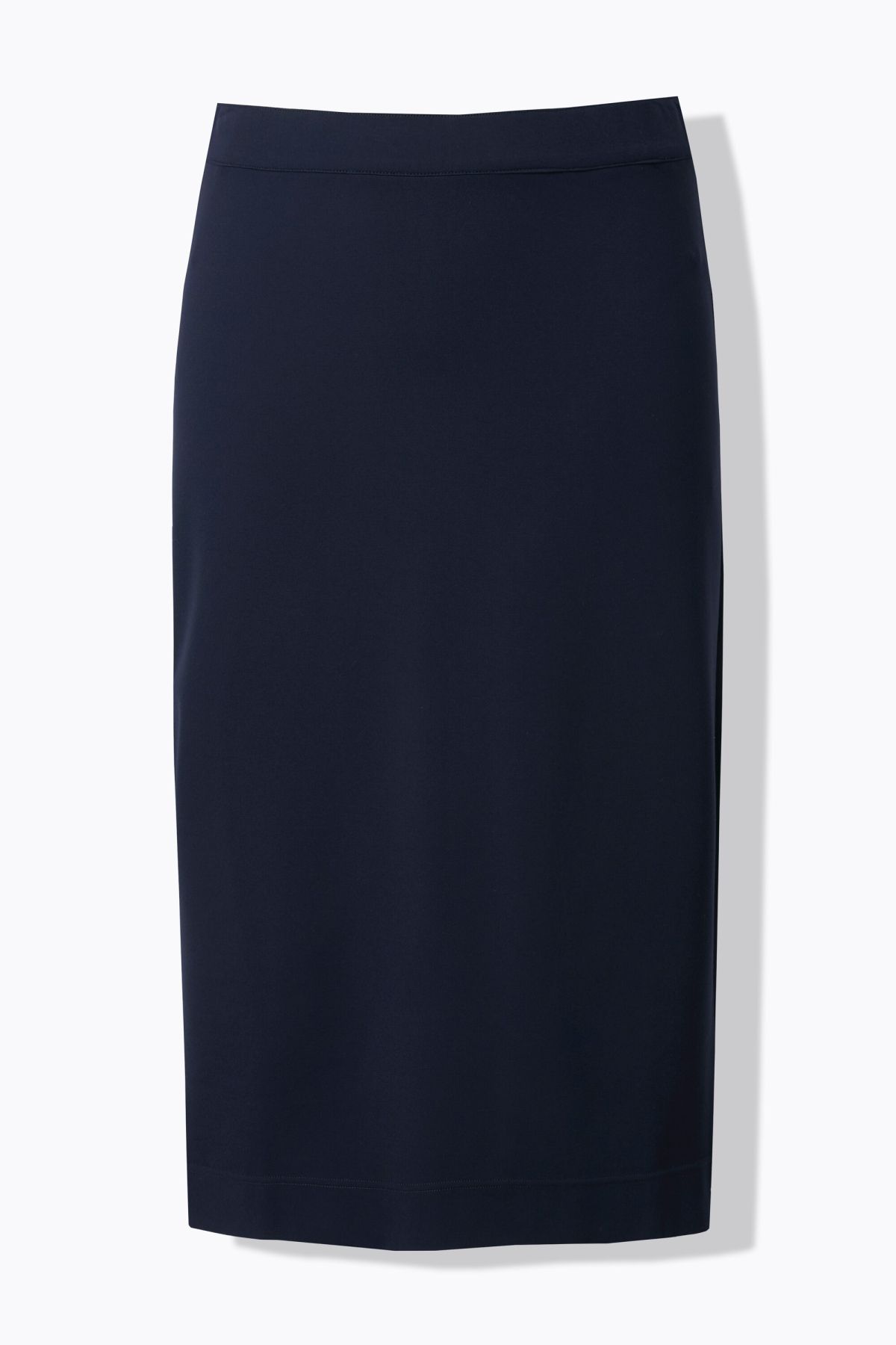 Straight Stretch Knit Skirt - this flattering straight silhouette in a shape-retaining fabric is designed so you can move freely and comfortably all day long. Elastic waist and back walking vent.
