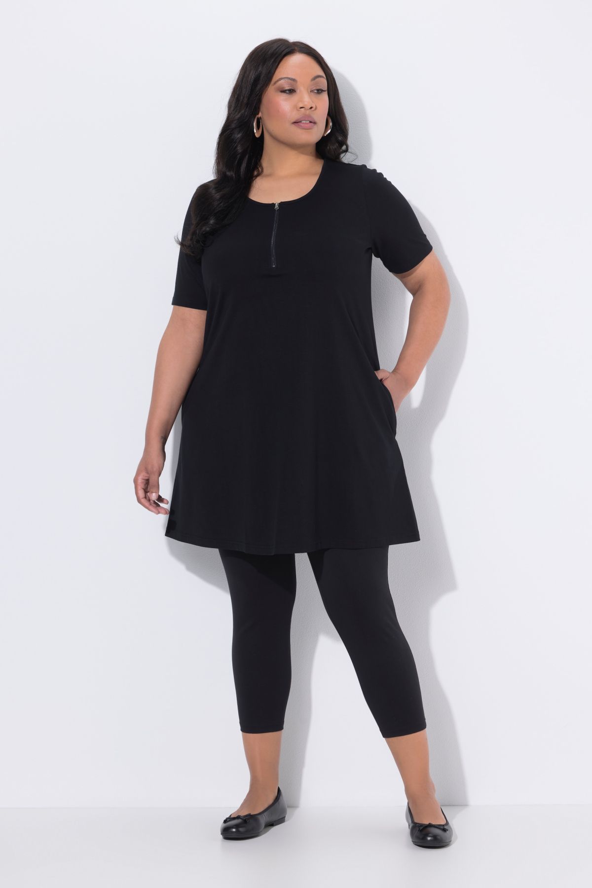 Zipper Neckline Knit Short Sleeve Pocket Tunic