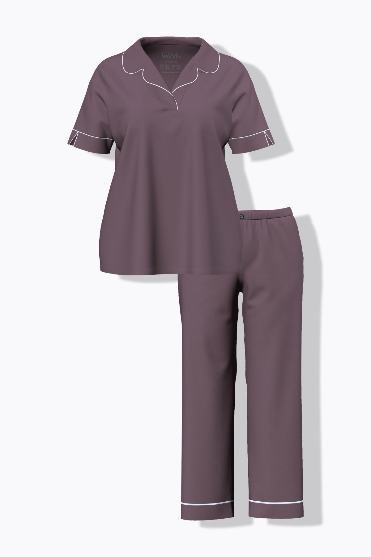 Lapel Collar Pajama Set - Kick back and enjoy a lazy day in bed with this stylish pick.