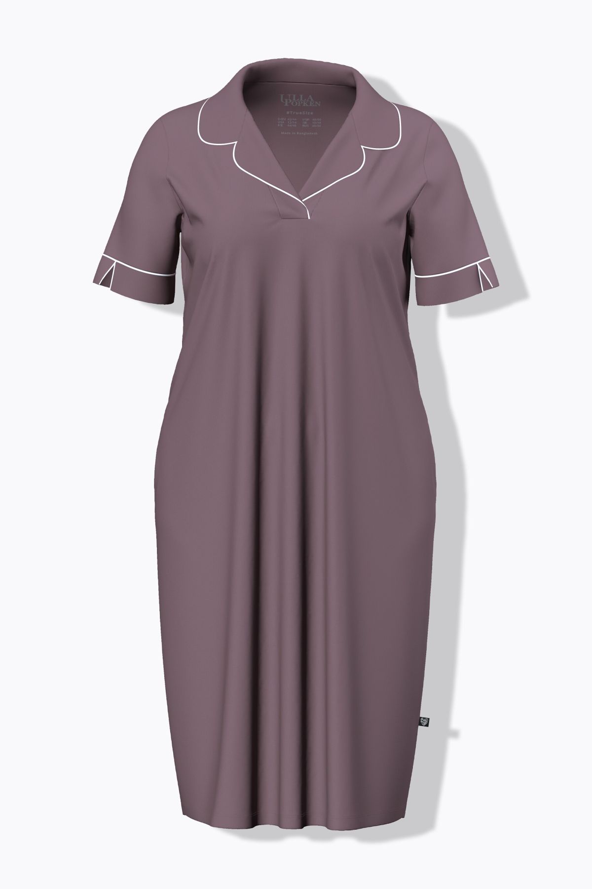 Lapel Collar Nightgown - A timelessly classic design with contrast color piping for added flair.