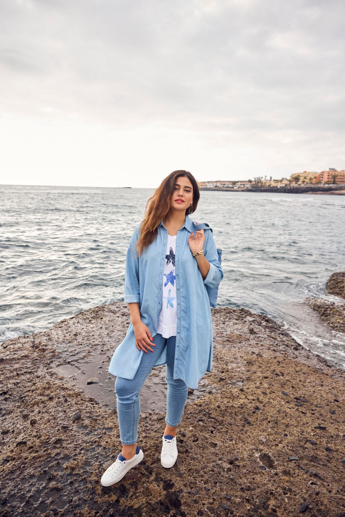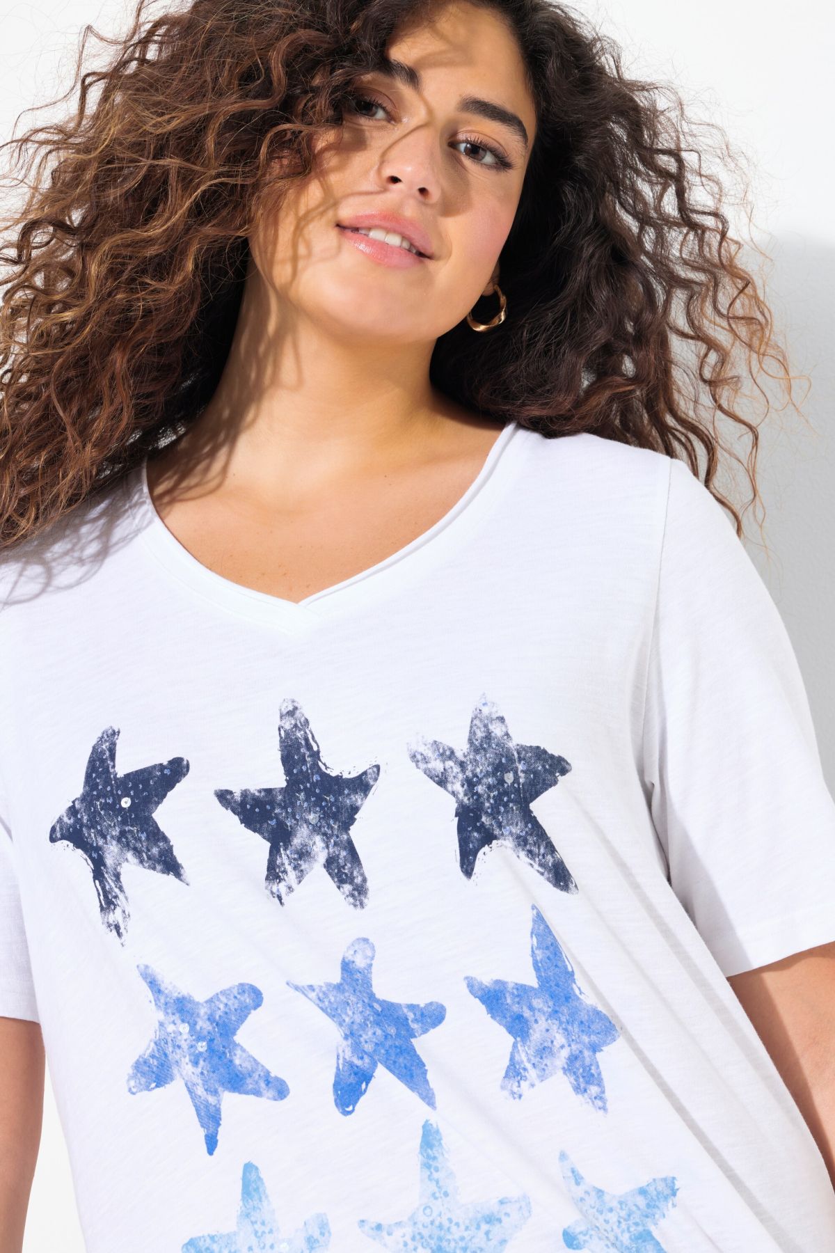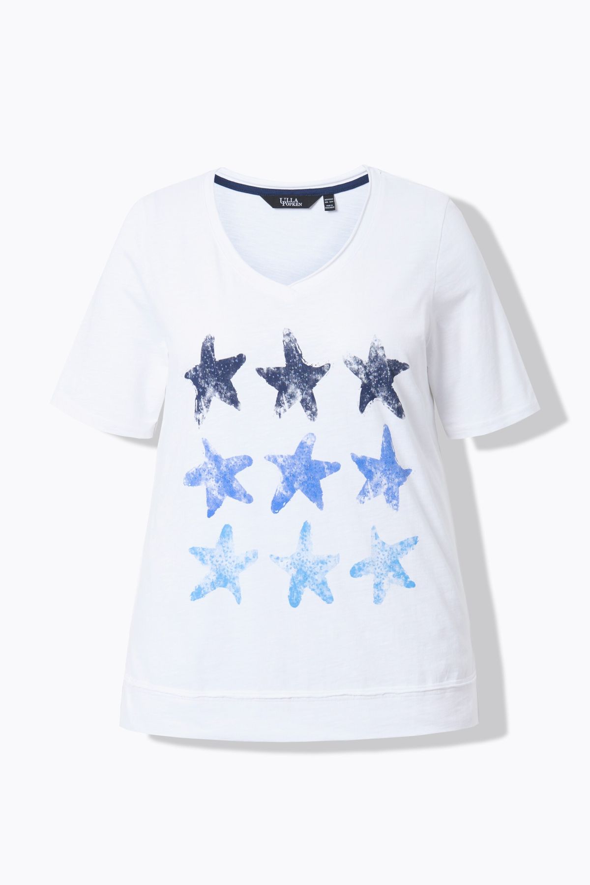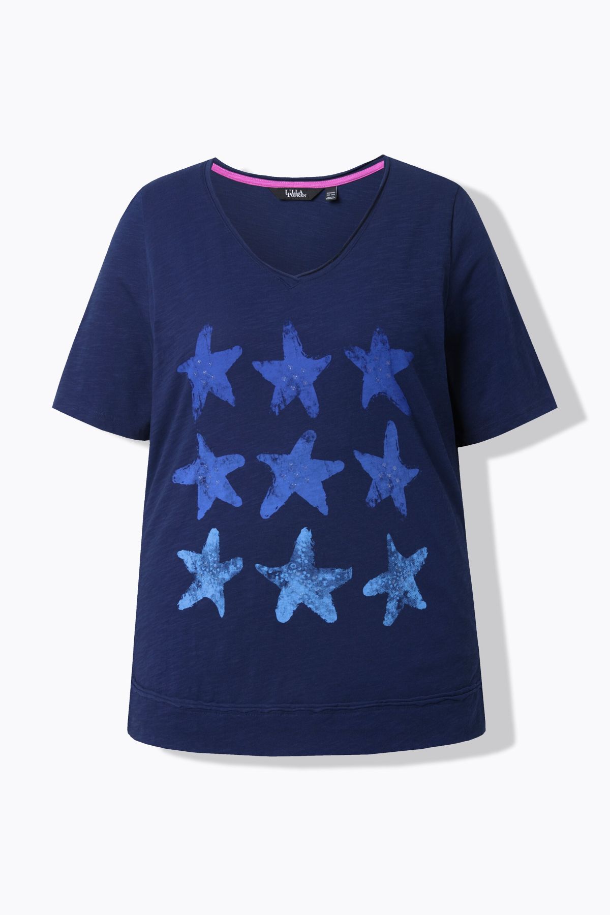 Starfish Graphic Tee - Colorful ink-print style starfish lend a beachy vibe to this trendy open-edged design.