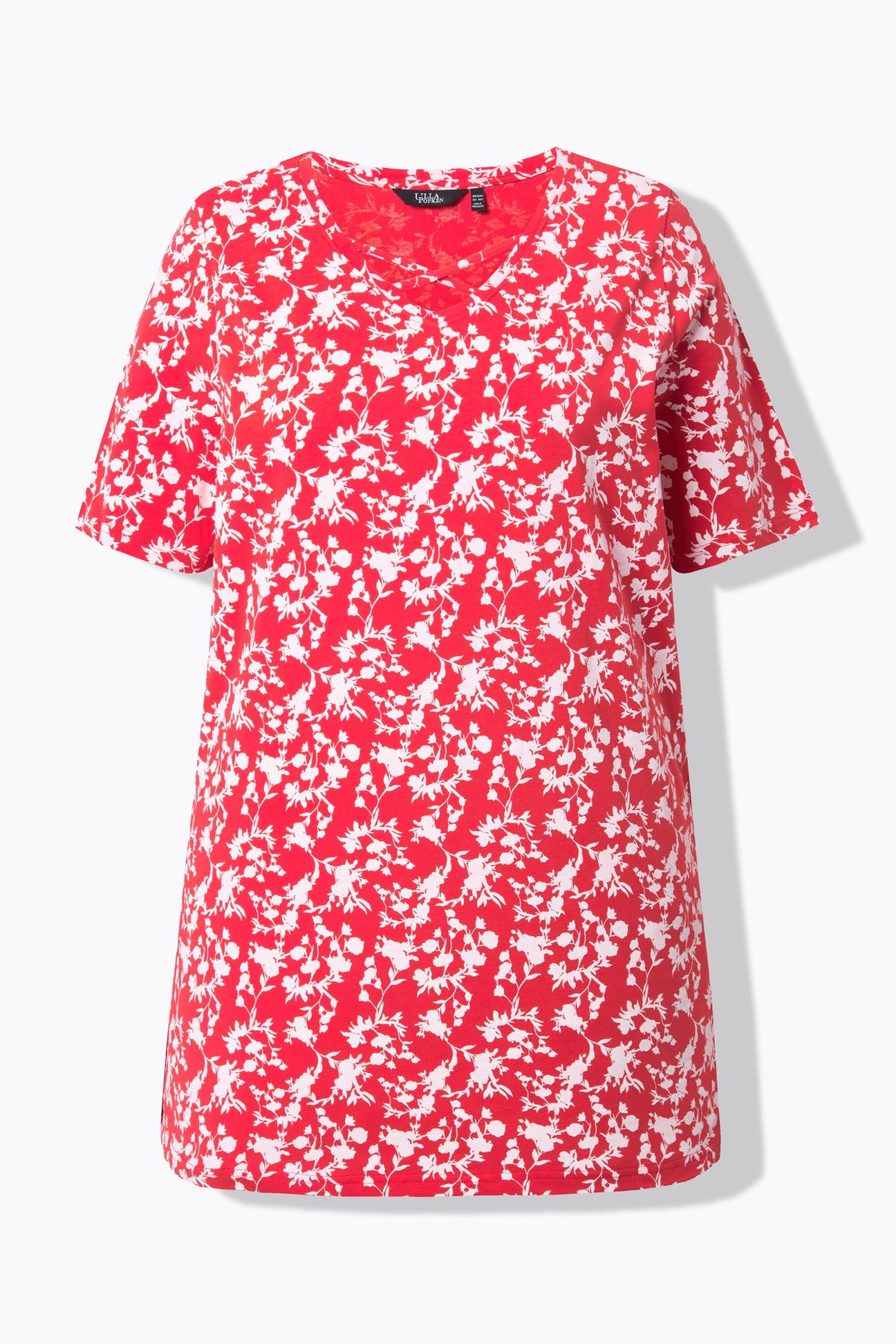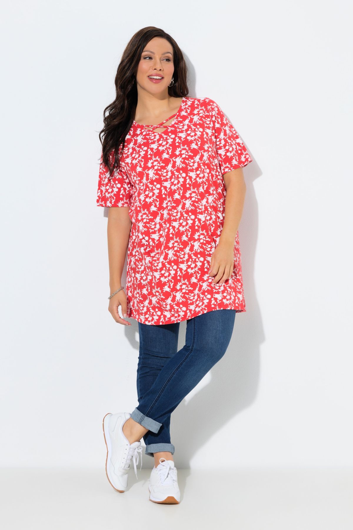 Cutout Floral Print Knit Tunic - Bold straps crisscross the neckline of this comfy cotton pick.