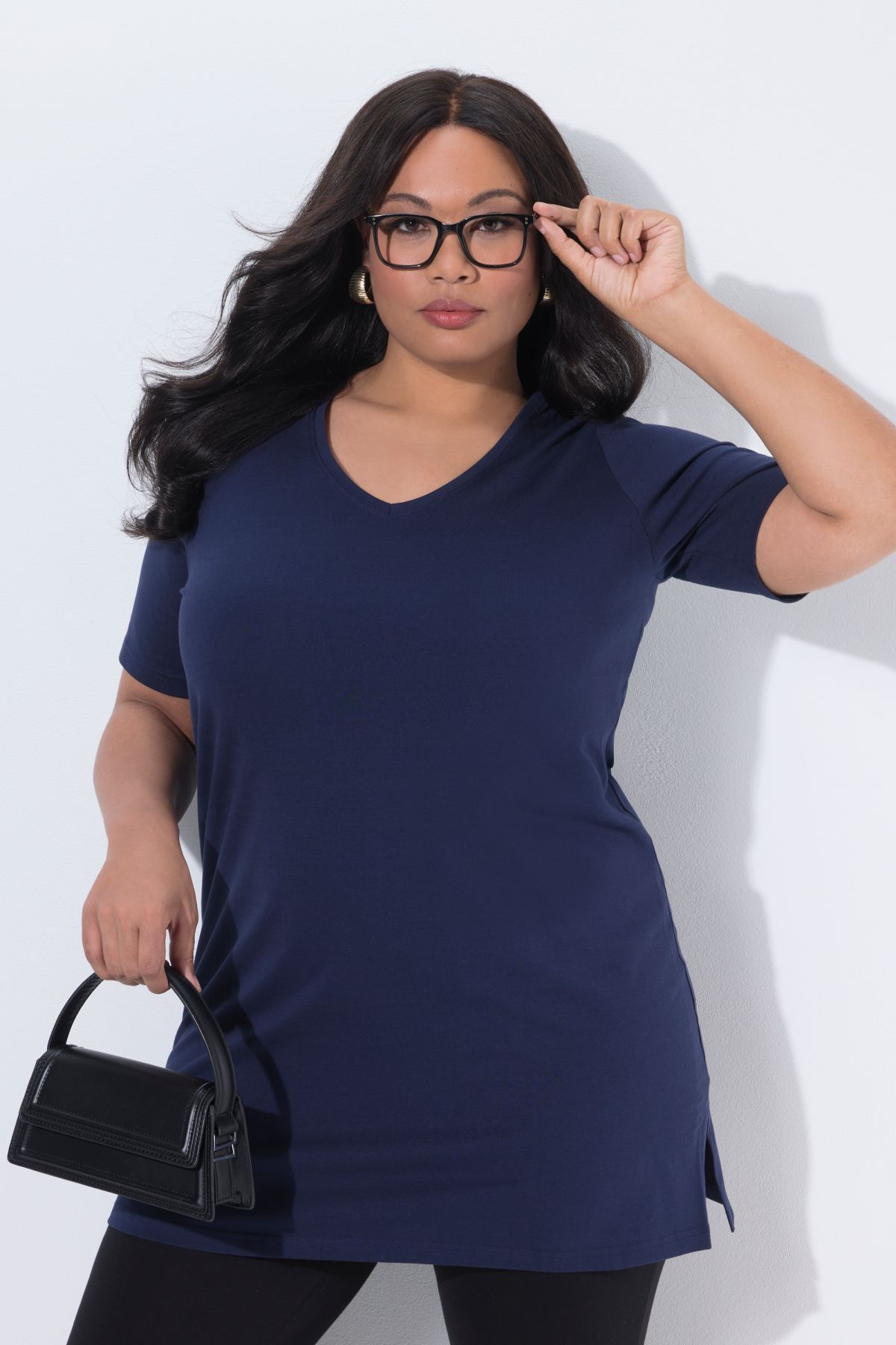 V-Neck Knit Tunic - A minimalist design with a flattering flared silhouette.