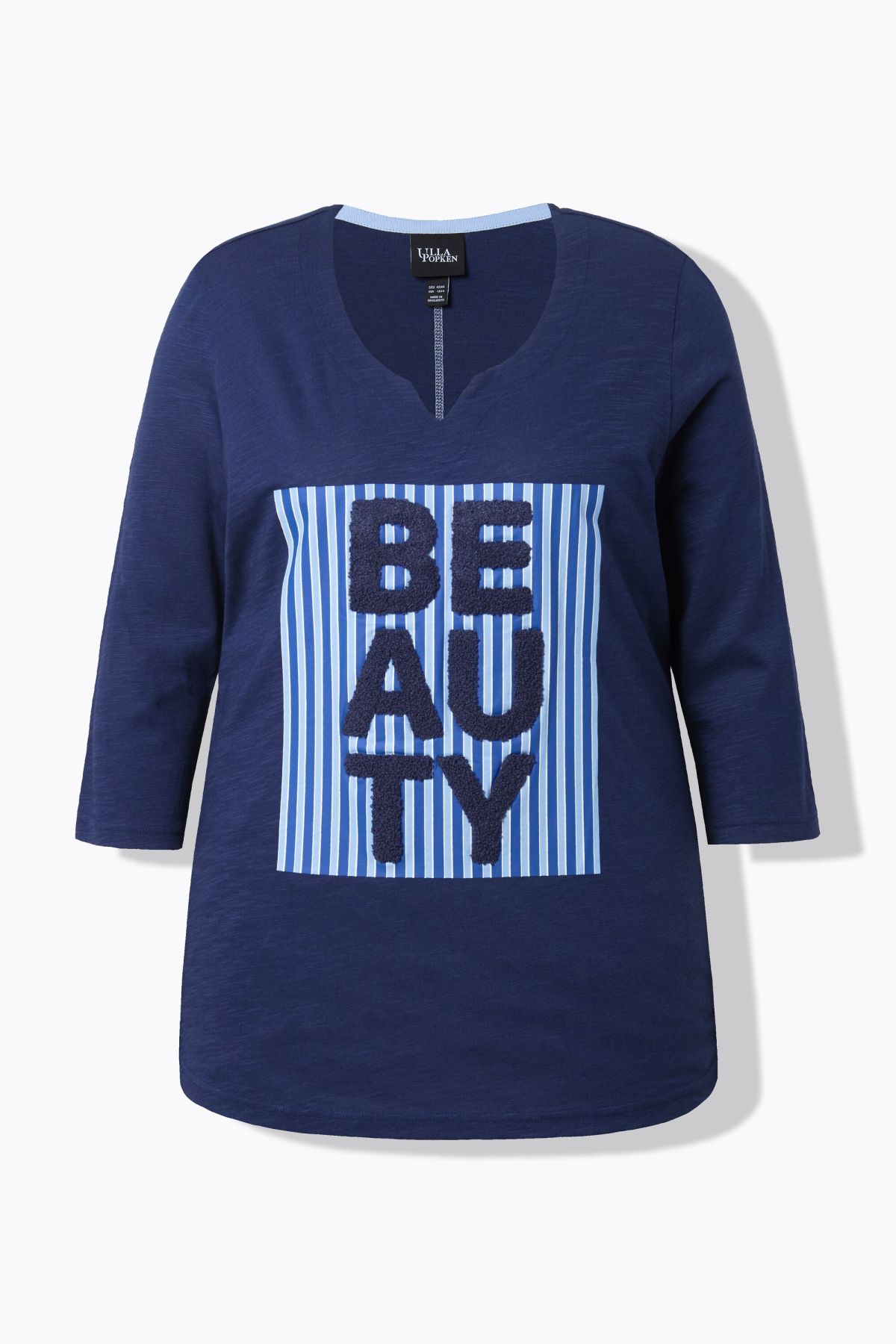 BEAUTY Terry Cloth Lettering Tee Stand out from the crowd with textured terry cloth lettering and a notched neckline.