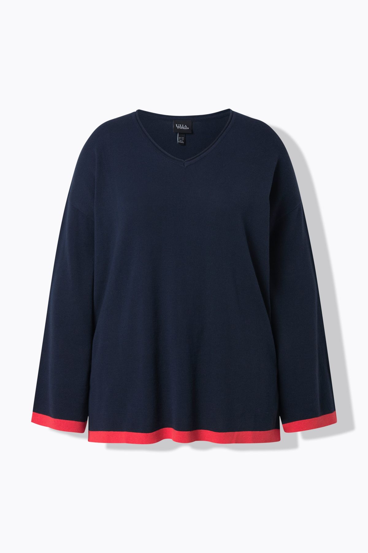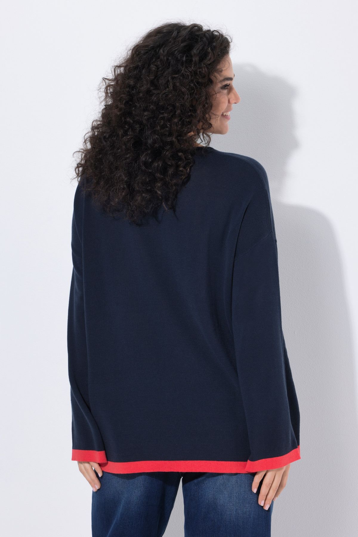 Contrast Cuff Long Sleeve V-Neck Sweater