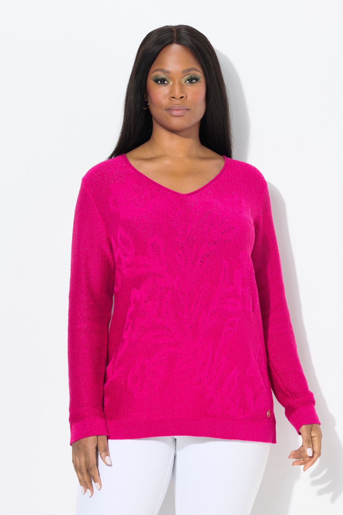 Флорален жакардов десен, V-образно деколте, висококачествена изцяло модна изработка, дълги ръкави с гладки маншети, мека лъскава плетка, коригирана според размера дължина прибл. 68-76 см.