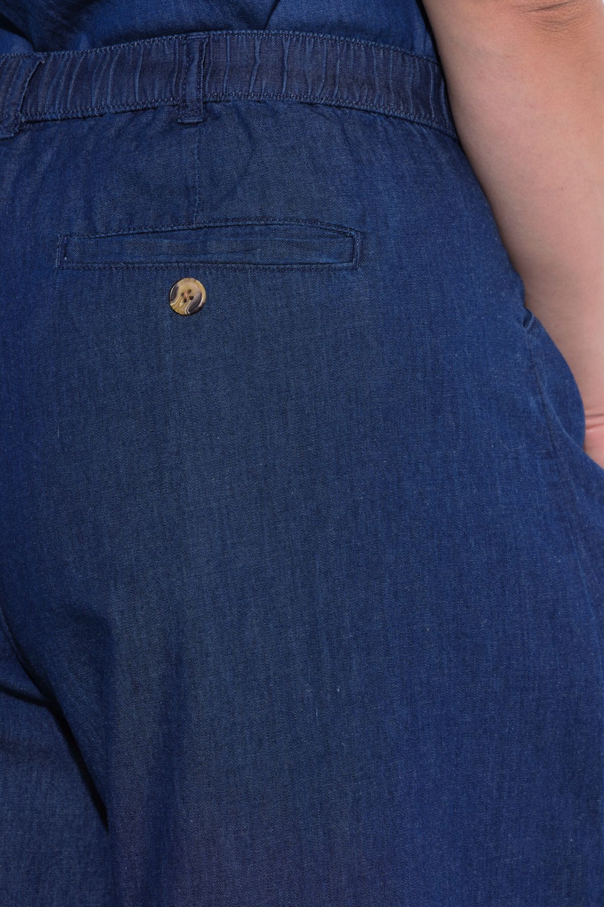 Eco Cotton Denim Look Wide Leg Elastic Waist Pants