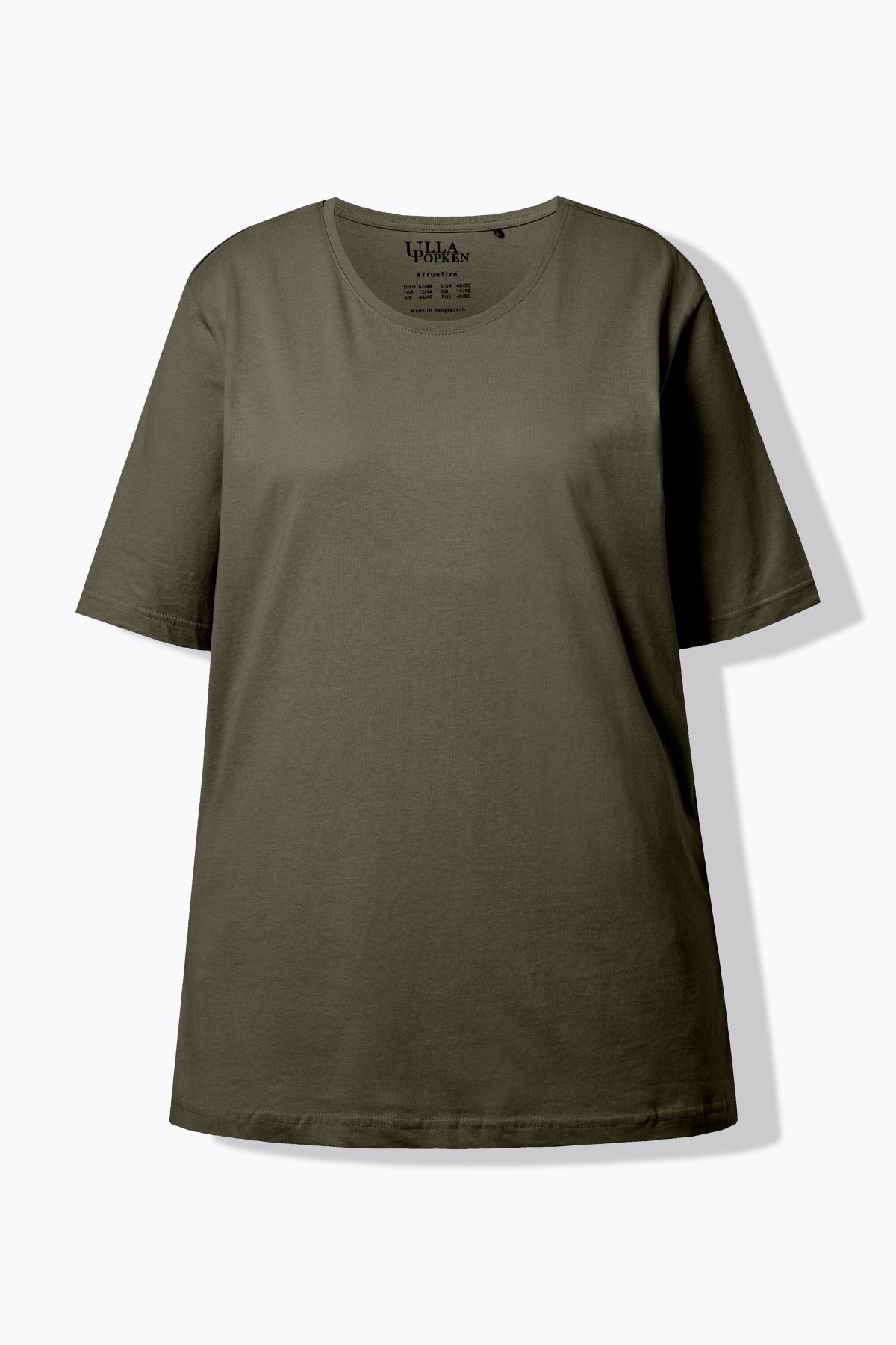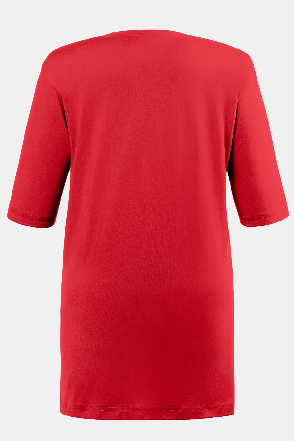 Обикновена тениска. Ежедневна кройка в голям размер от мек памук. Заоблено деколте, къси ръкави и странични процепи.