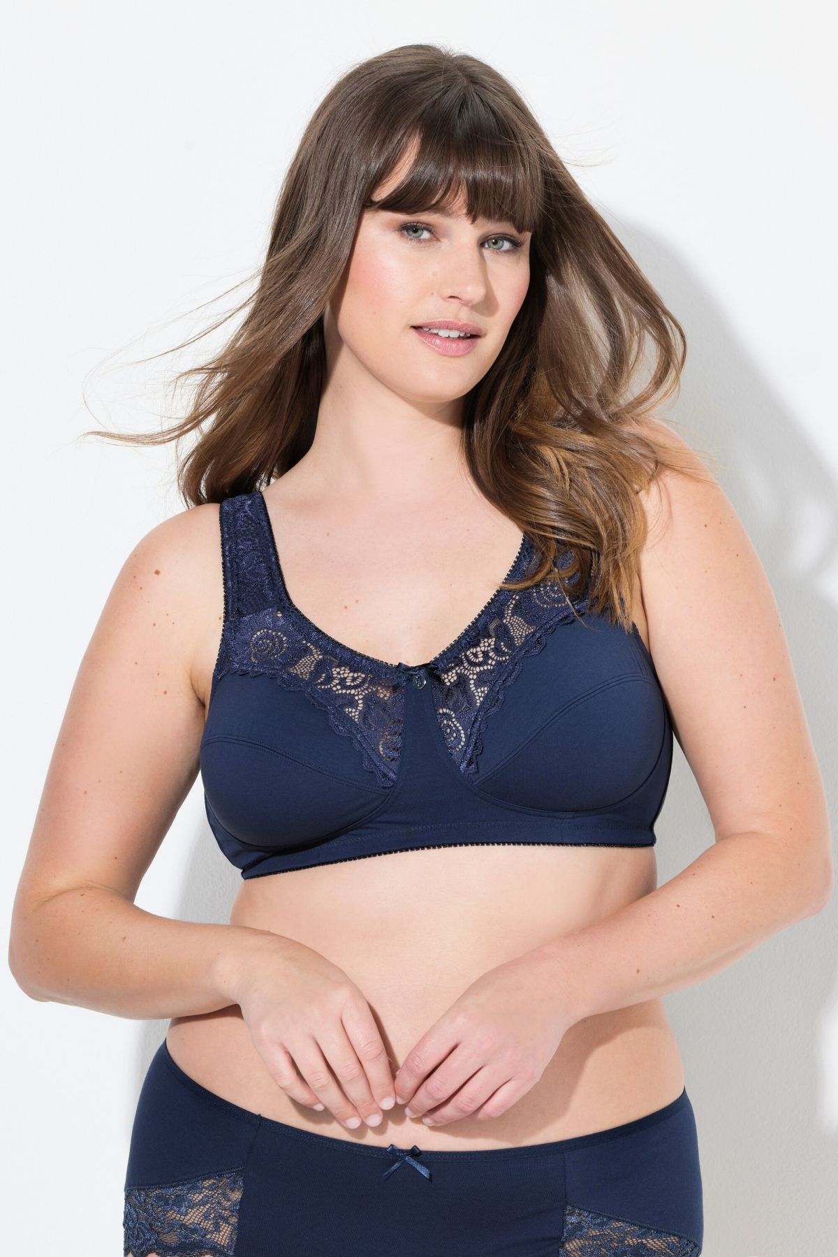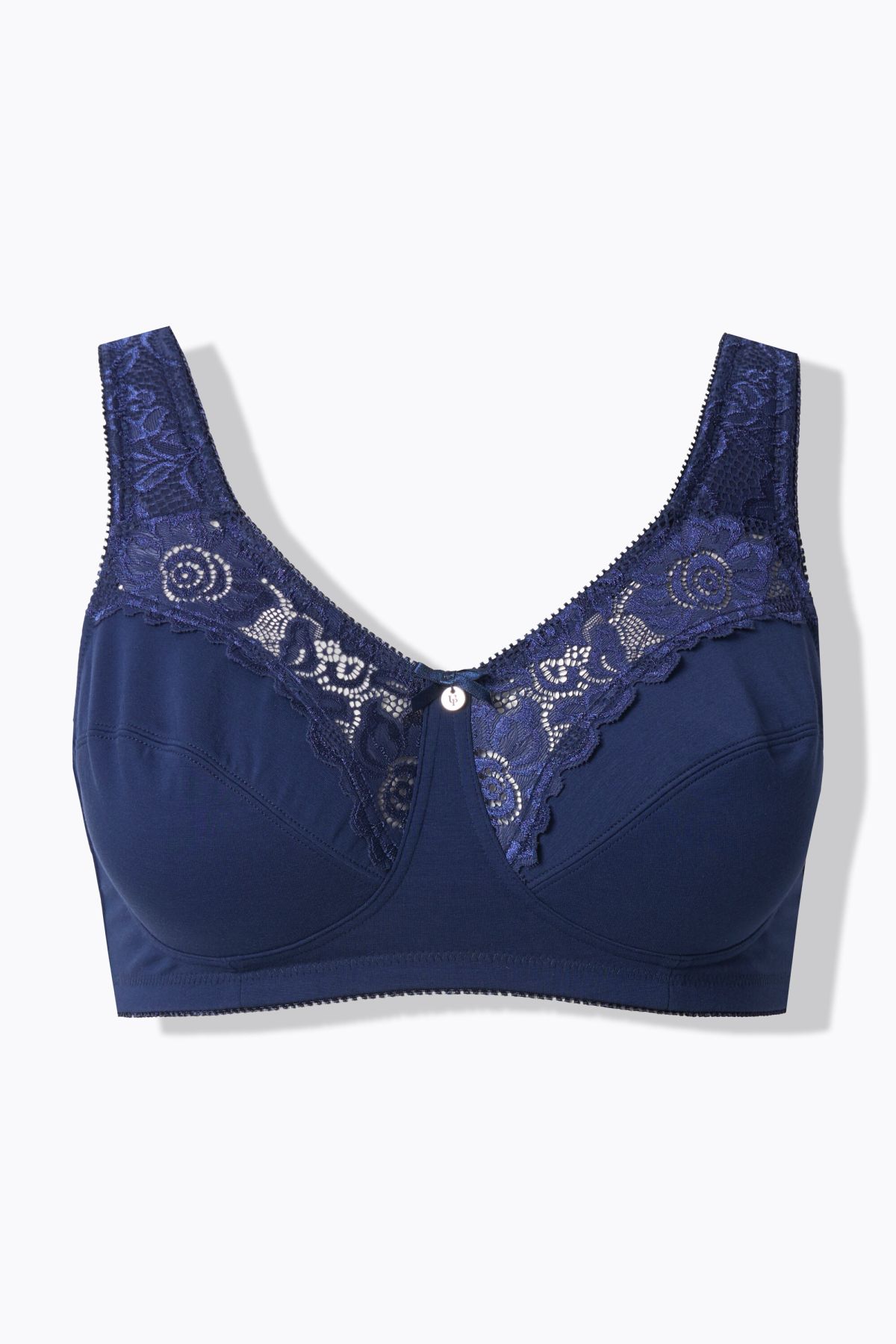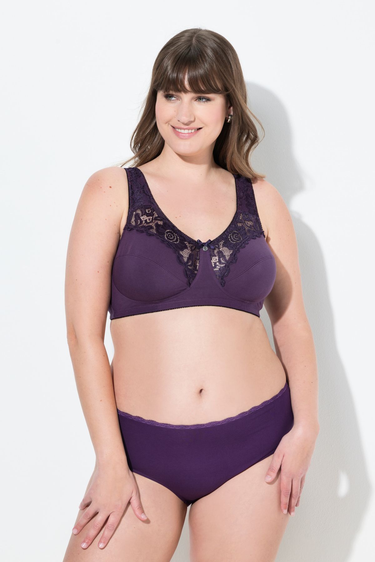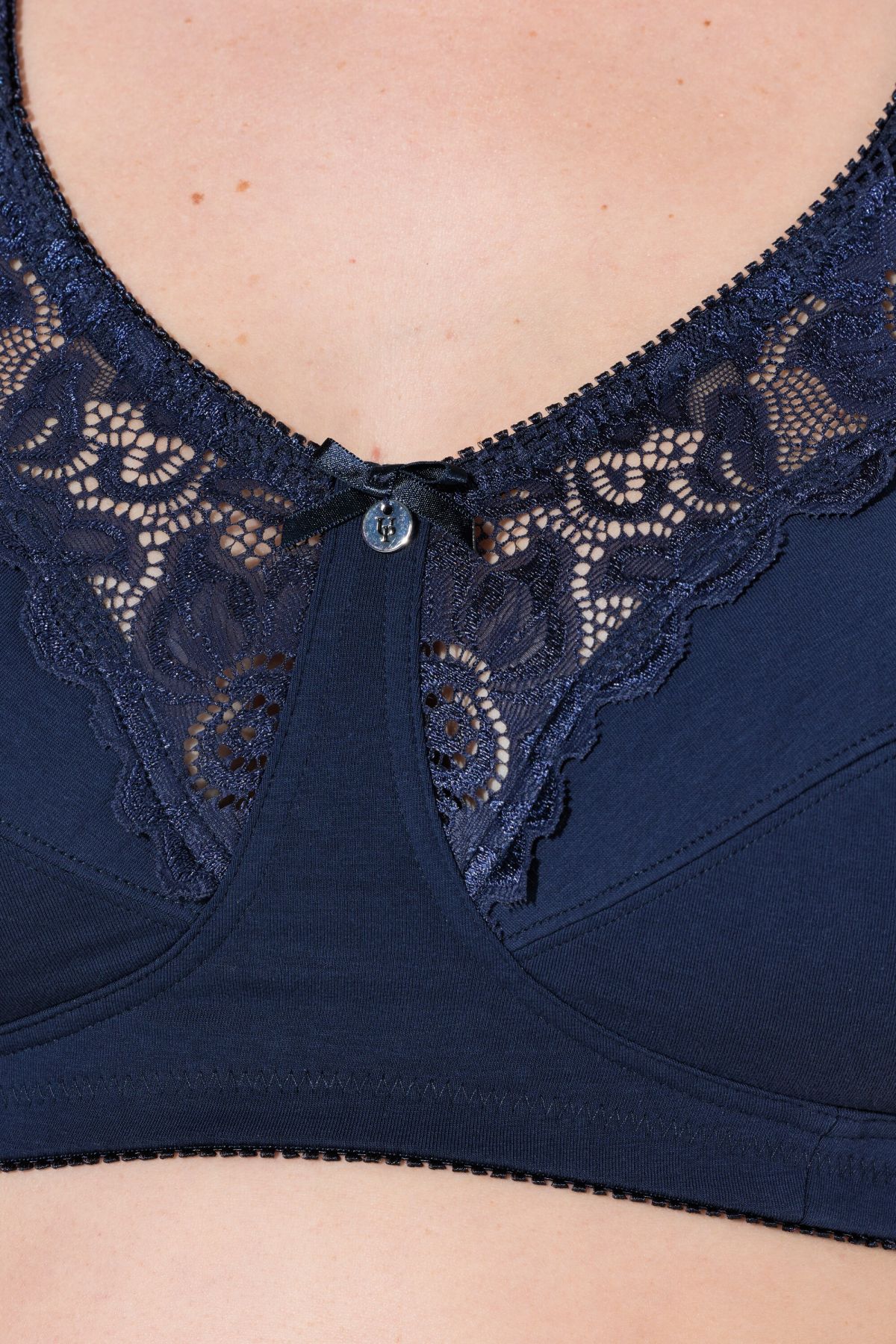 Поддържащ сутиен тип Kelly без банели с дантела едноцветен акцент и сатенена панделка посредата. С широки, комфортни презрамки и задно закопчаване с метални кукички.