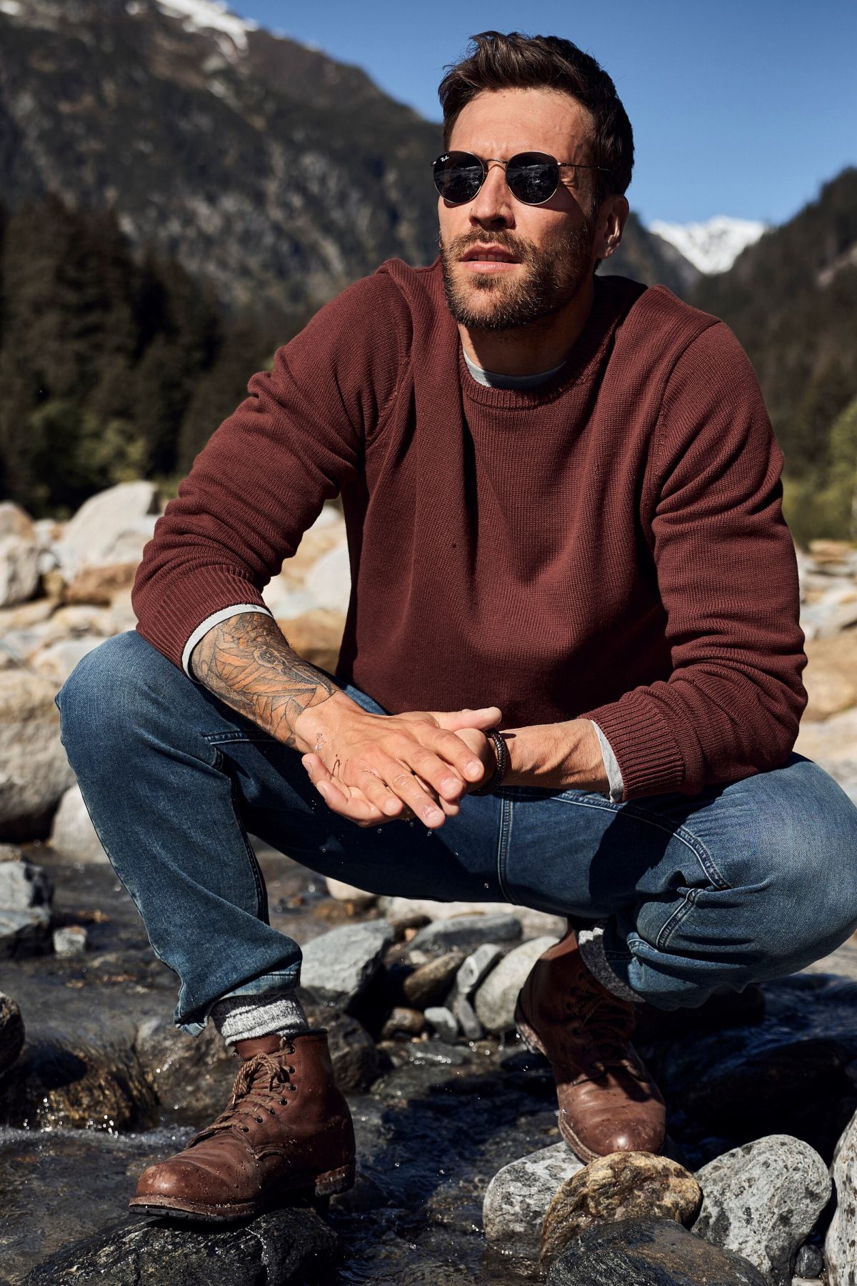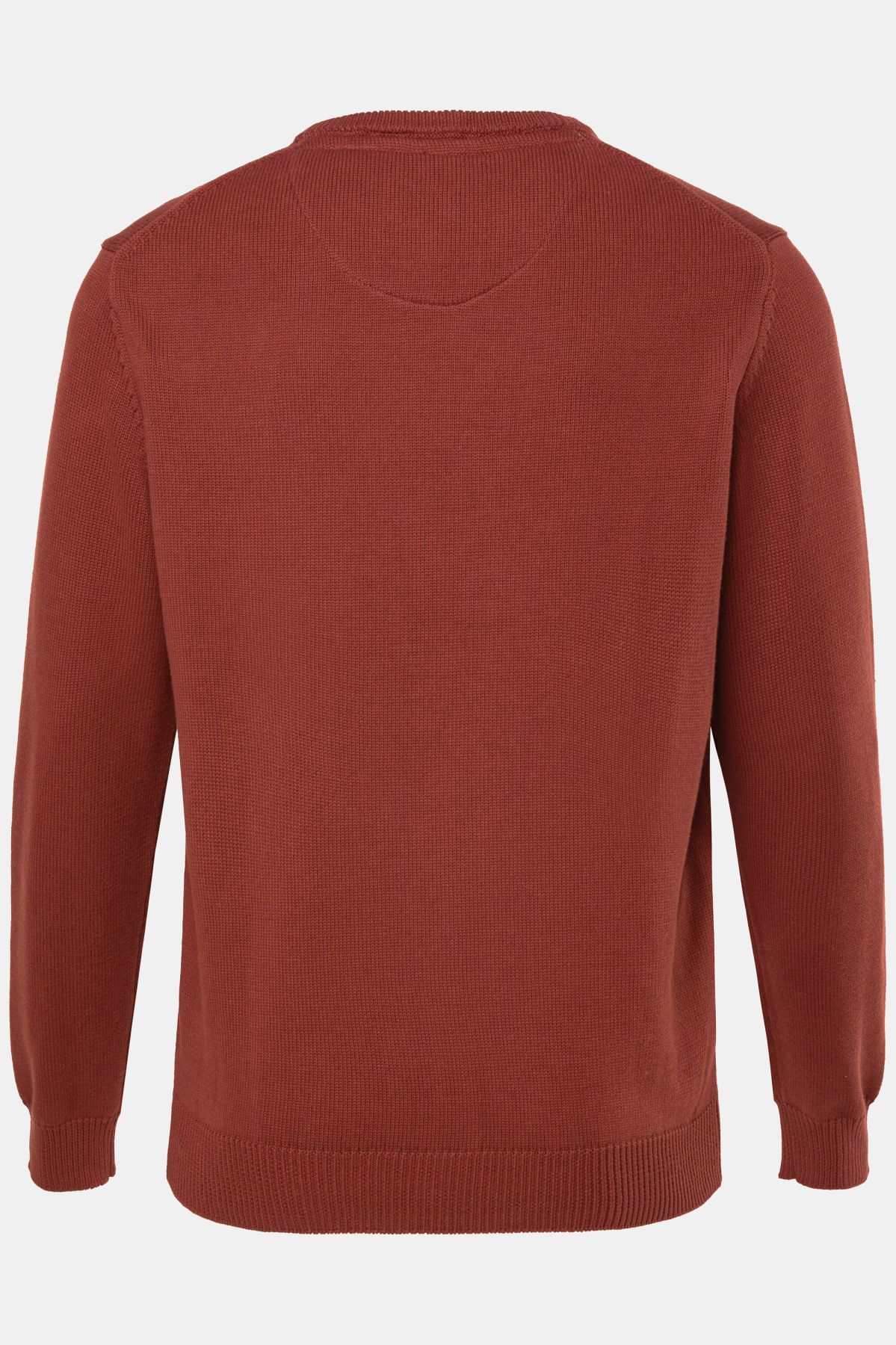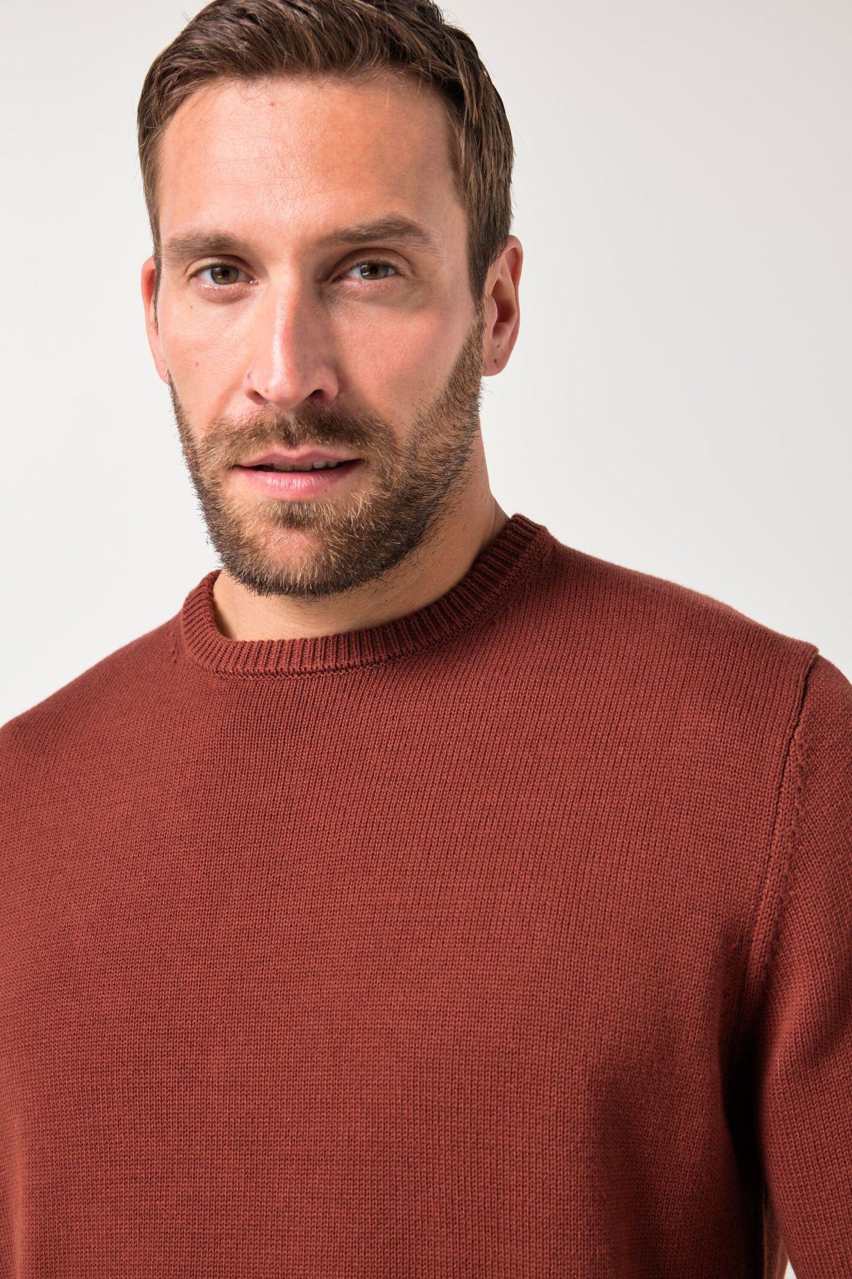 Класически пуловер по врата и с дълги ръкави - универсален. От меко, памучно трико, с кръгло деколте и дълги ръкави. Малко лого JP1880, ластични маншети и подгъв. Мъжка дреха от марка JP1880 на Ула Попкен. Мъжката линия JP1880 е за големи размери и високи фигури, които винаги искат да изглеждат съвременни.