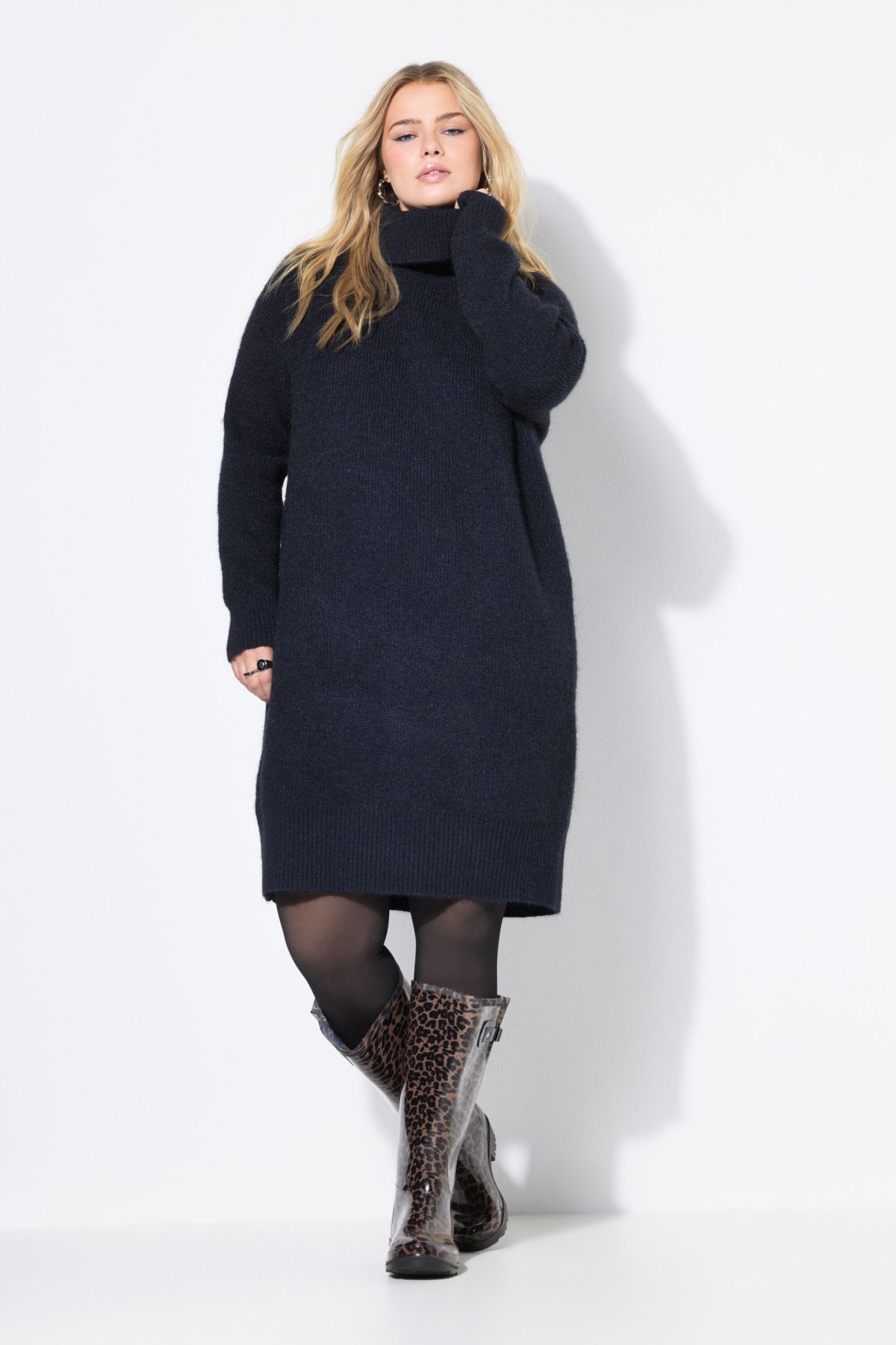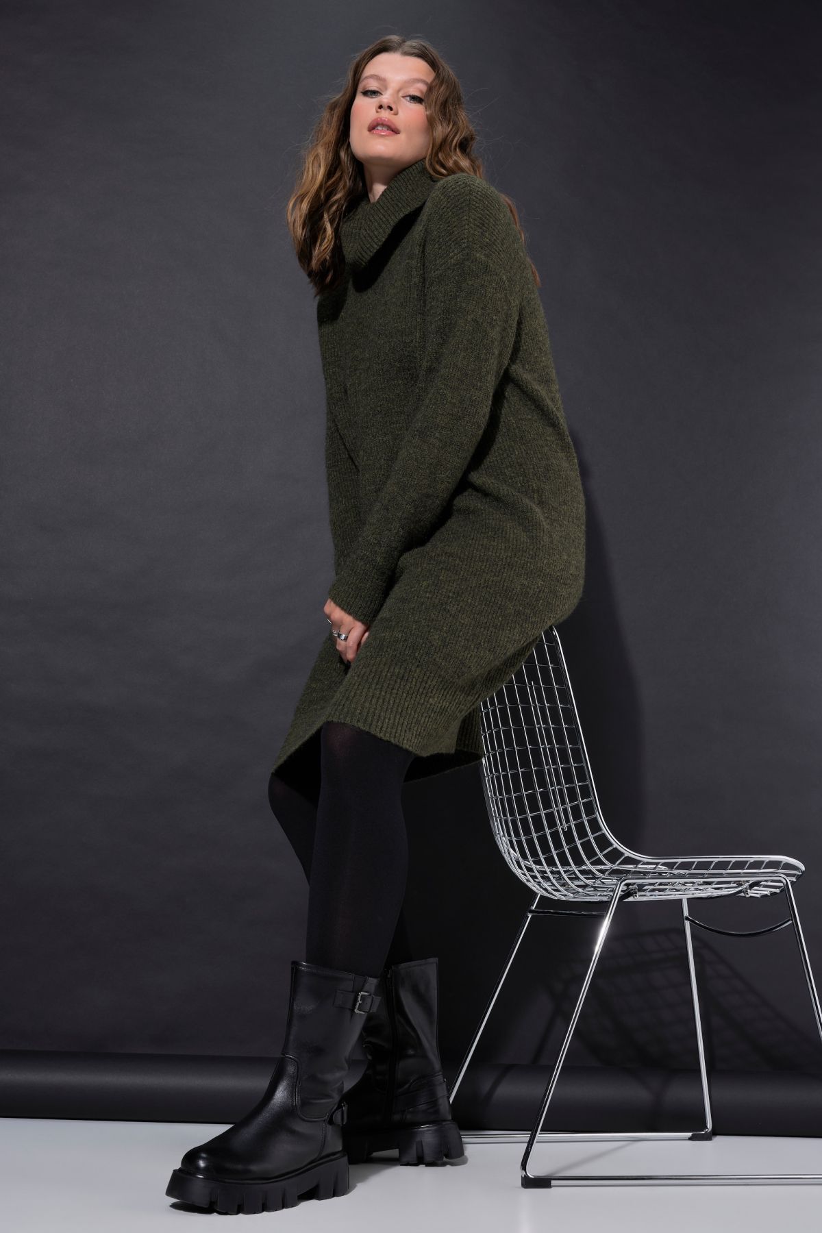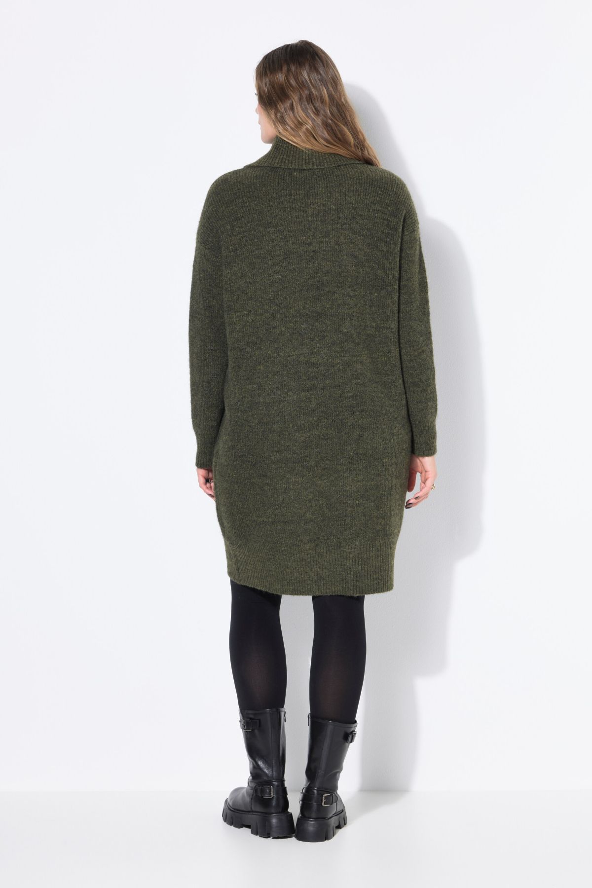 Рокля с разкроен силует от мека материя. С широка поло яка, паднали рамене и дълги ръкави с рипсен маншет.