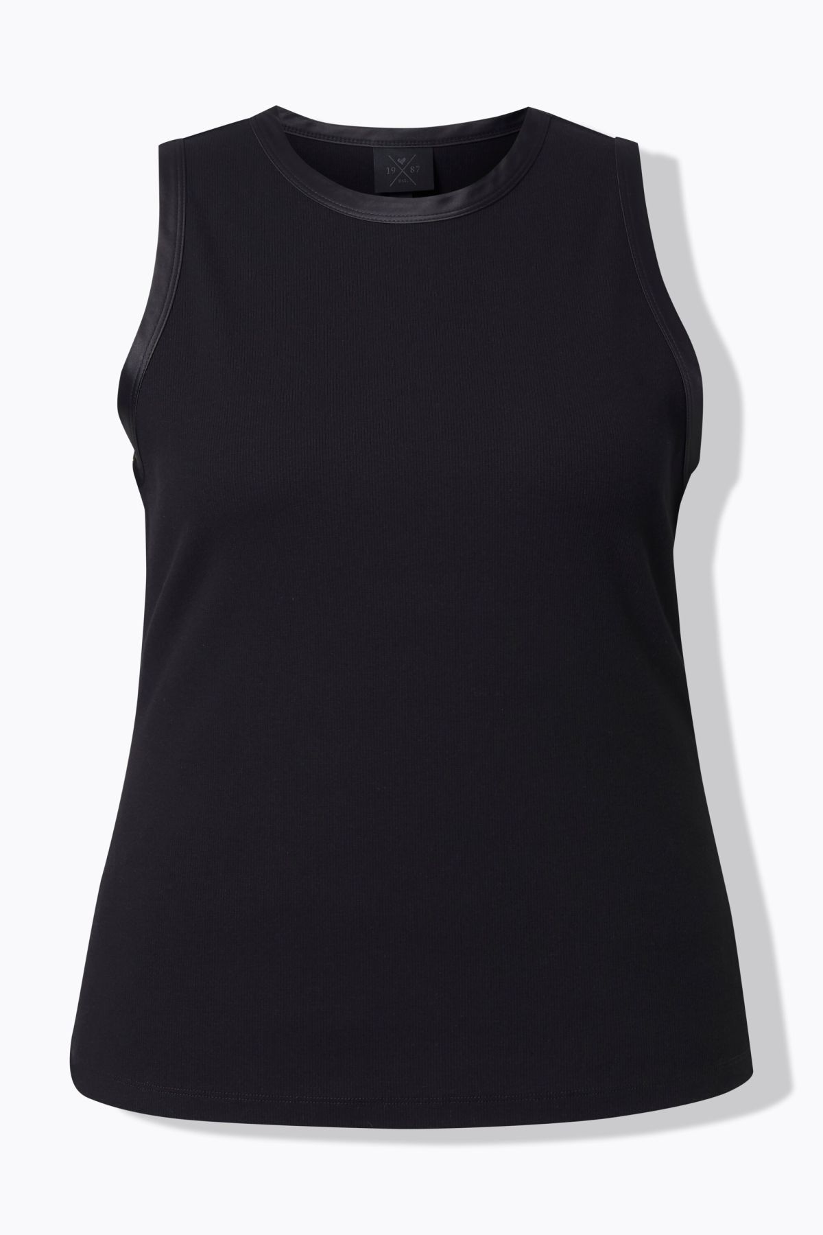 Потник със сатенени акценти с шикозна визия и класически силует от рипсена материя. С широки, комфортни презрамки, кръгло деколте и перфектна дължина.