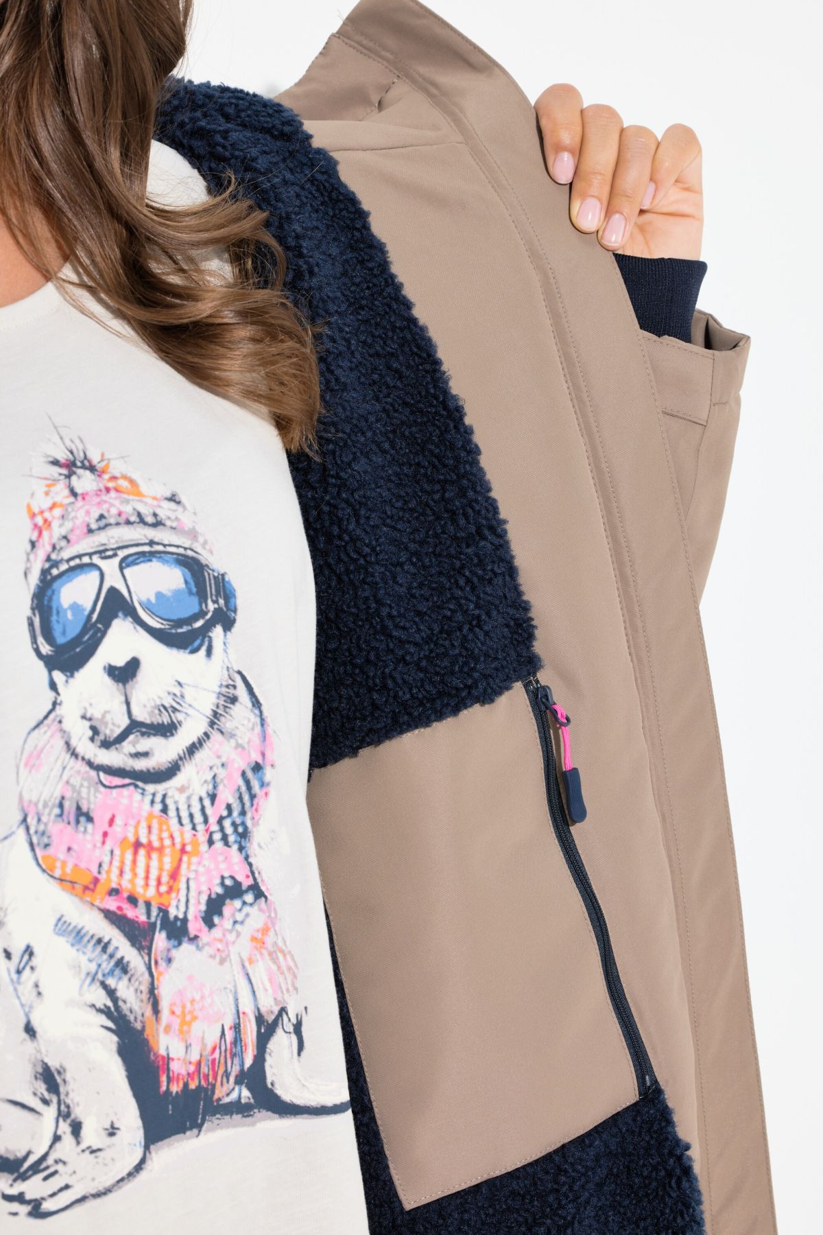 Палто трифункционално с пухкава подплата от полар. Водонепромокаемо. С цип отпред, странични джобове с ципове и качулка с връзка. С дълги ръкави с еластични маншети. Перфектният избор за прохладните дни.