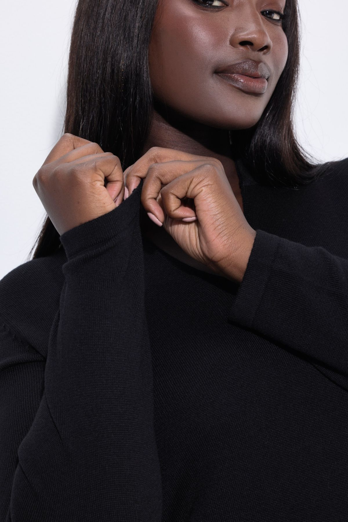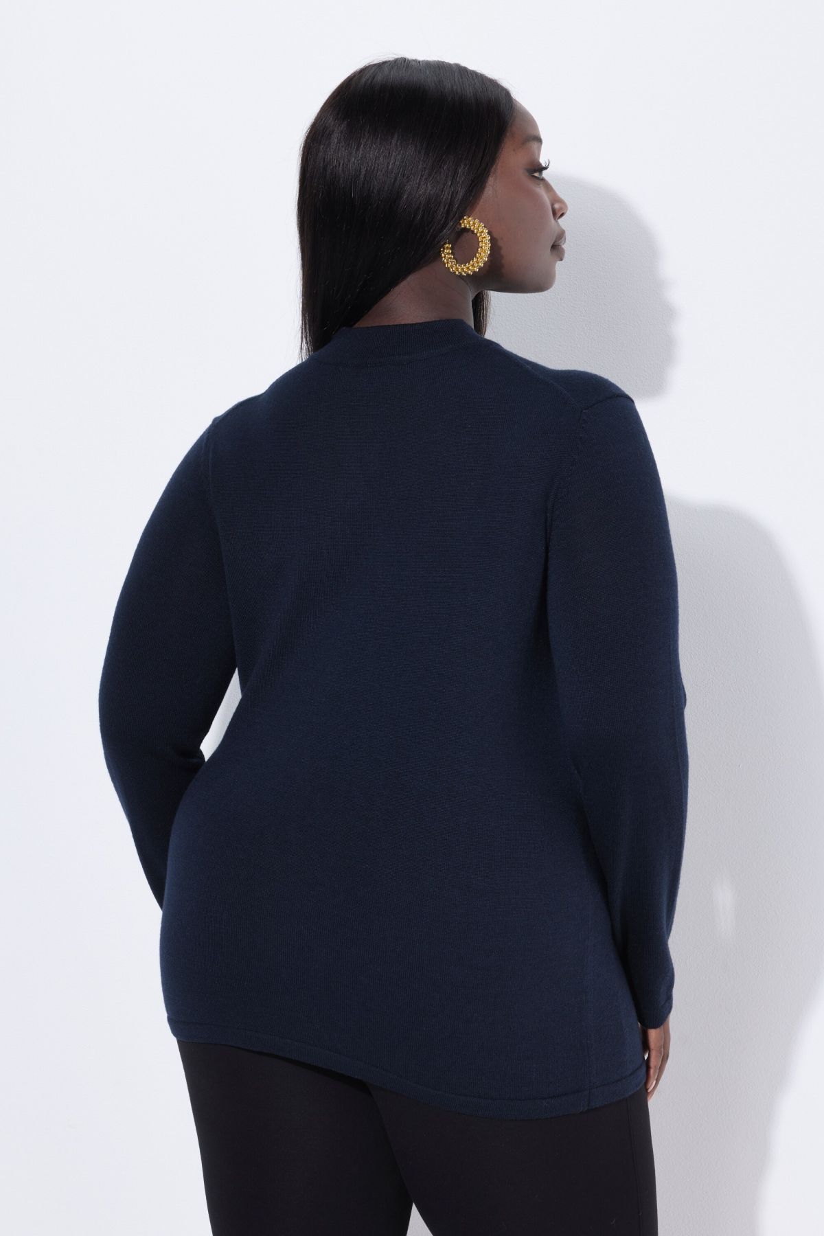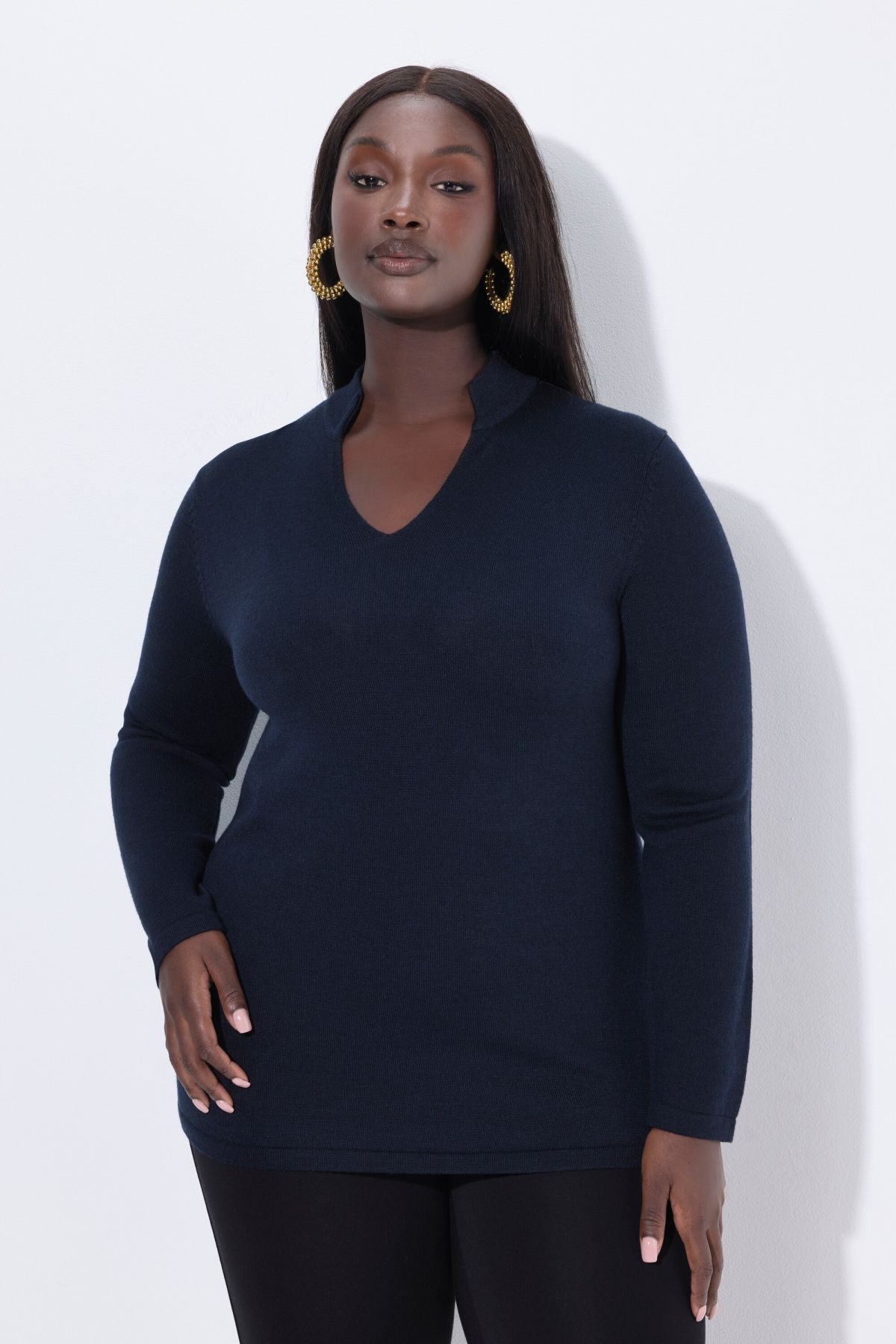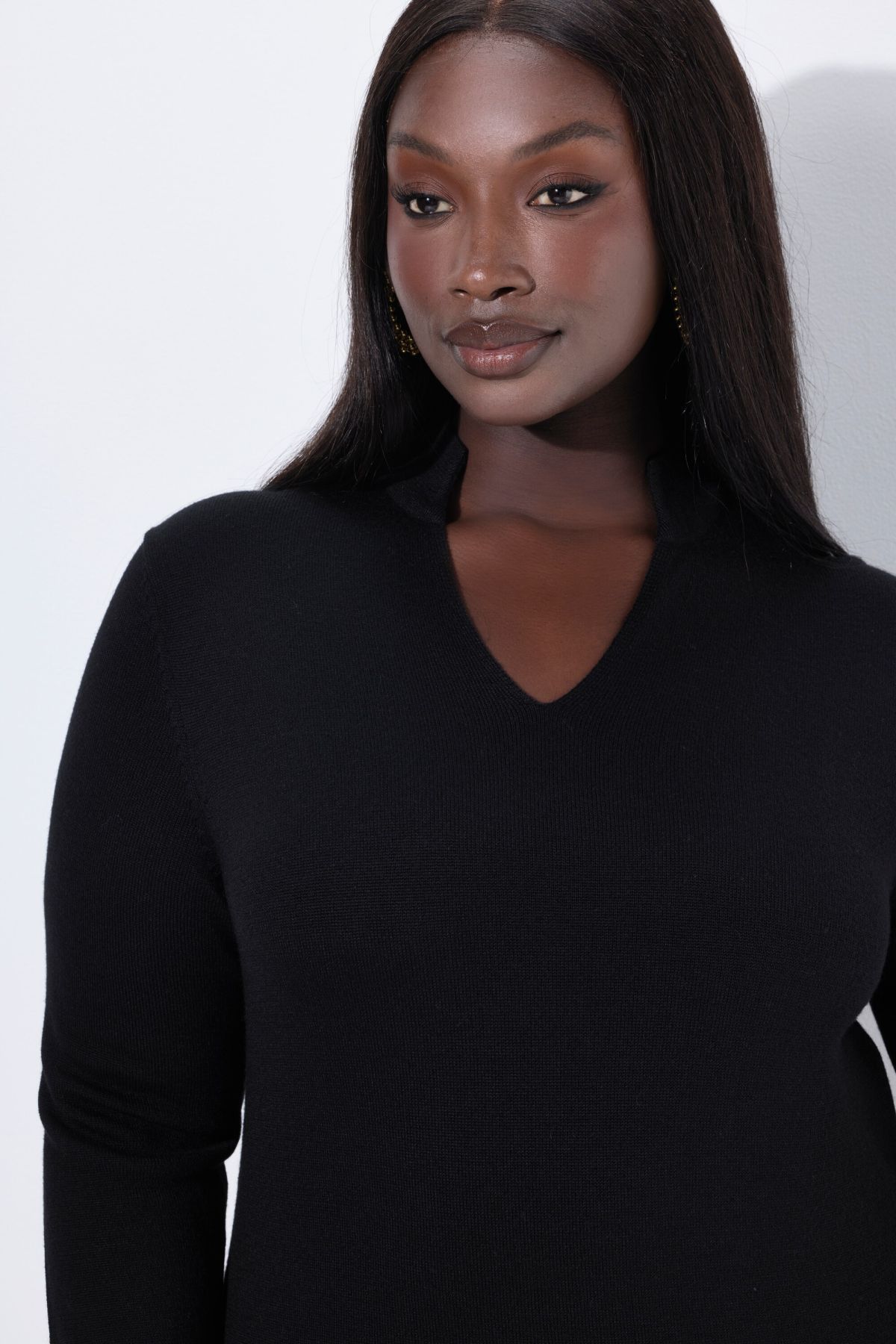Пуловер от мека, вълнена материя в комбинация с коприна. С V - образно деколте и дълги ръкави.