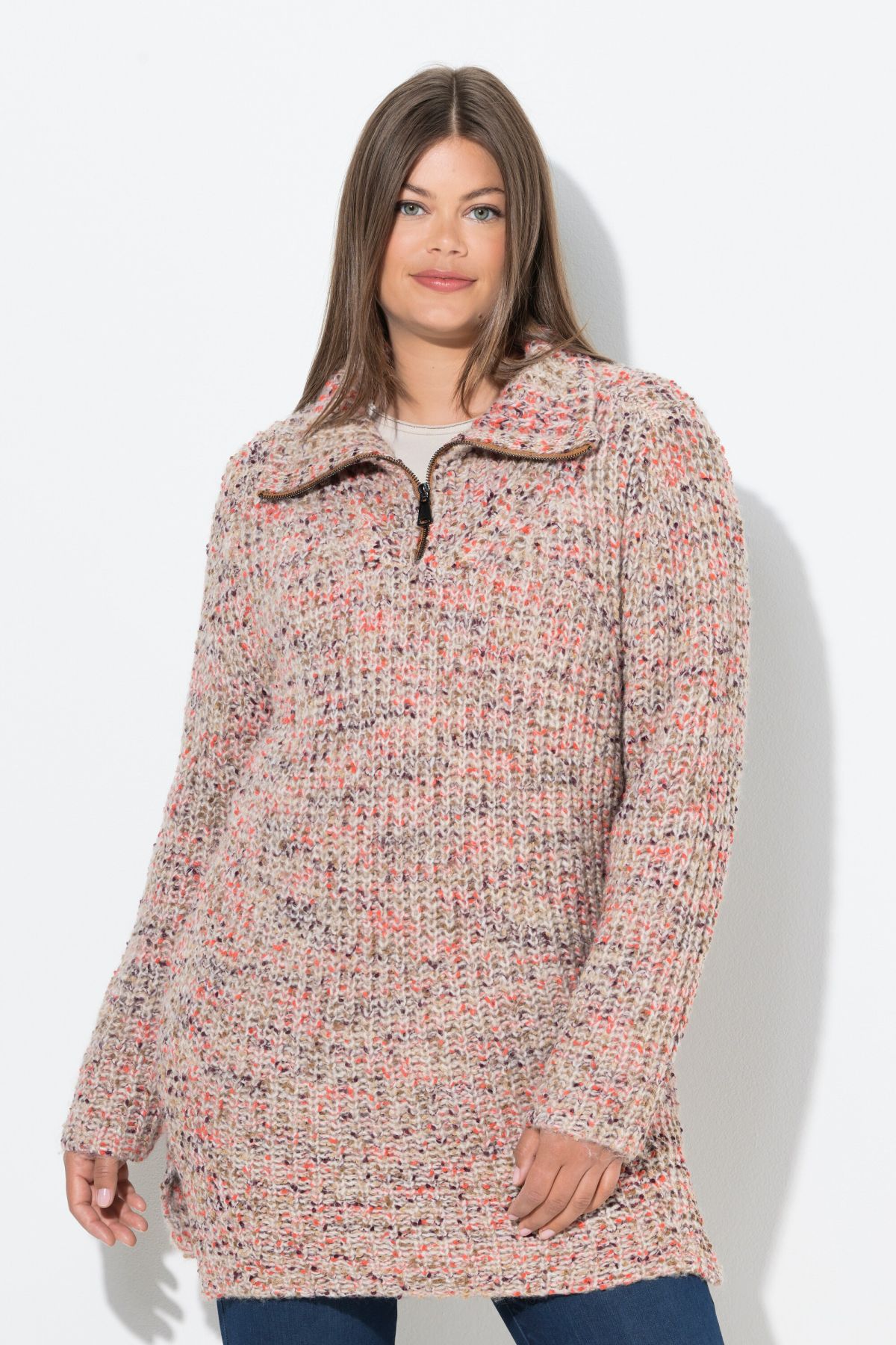 Пуловер с мраморен принт, който трябва да имате в гардероба си. С изправена яка с цип на деколтето, дълги ръкави и мека плетена материя.