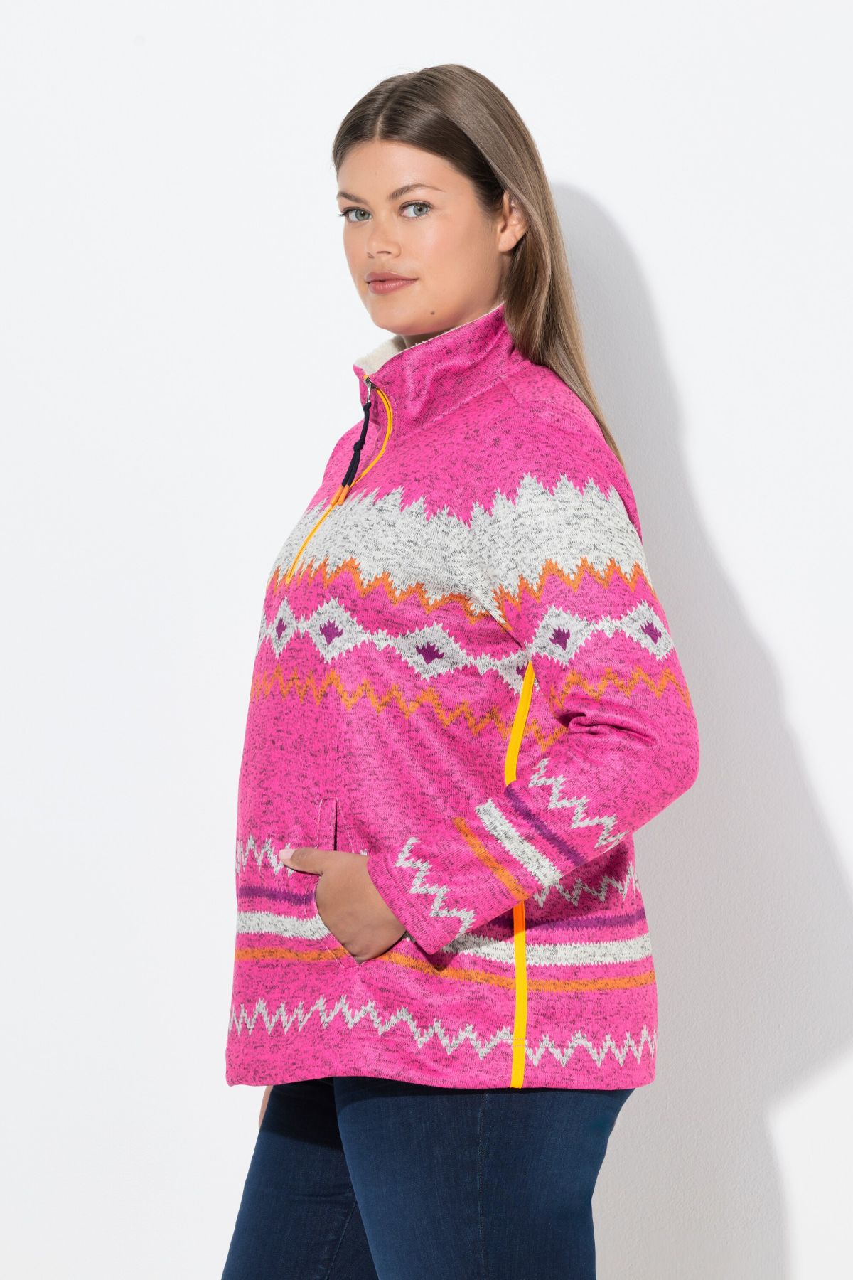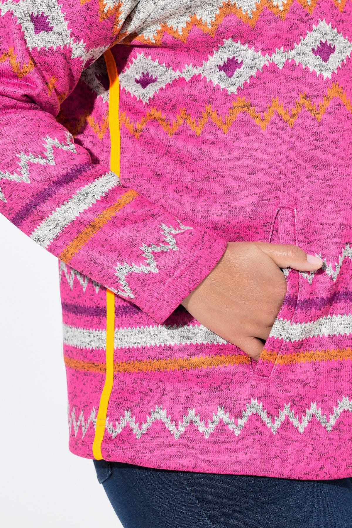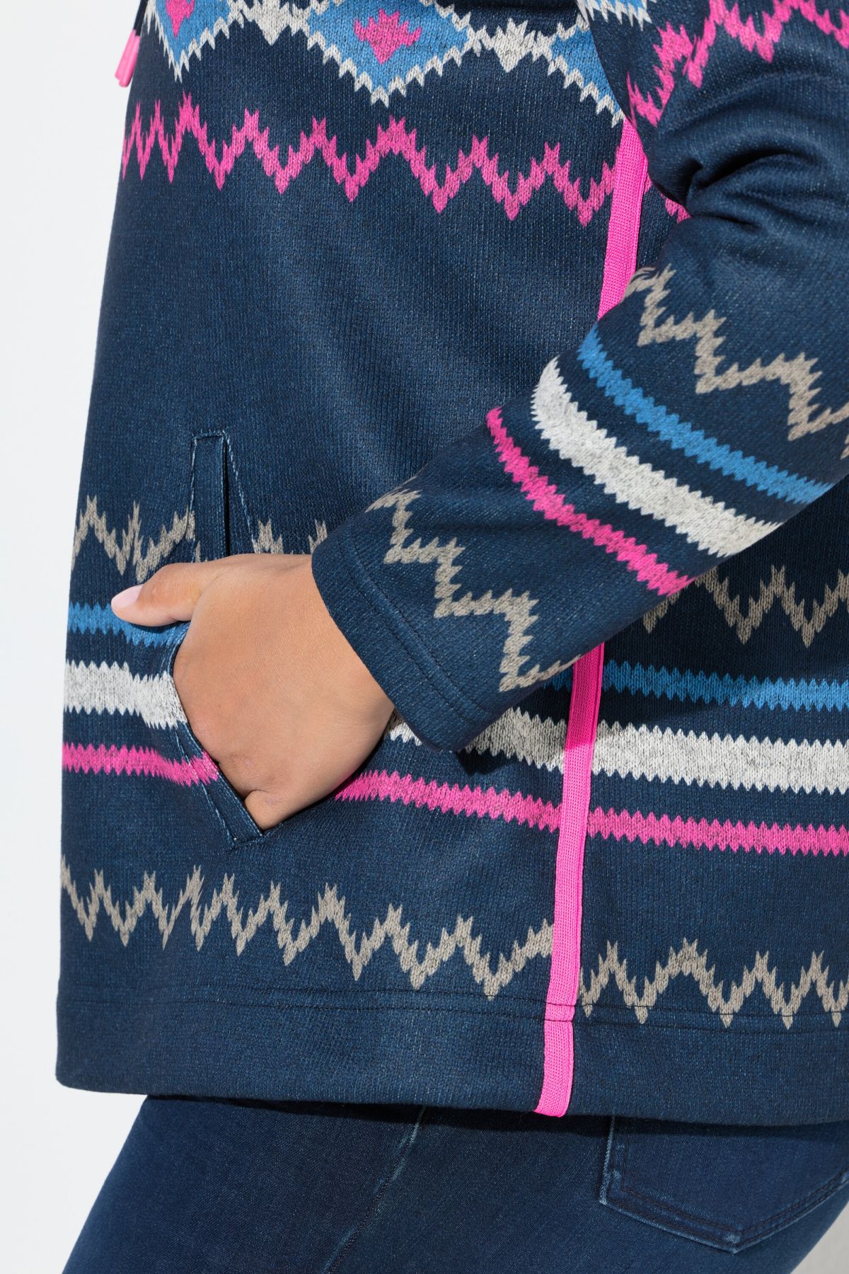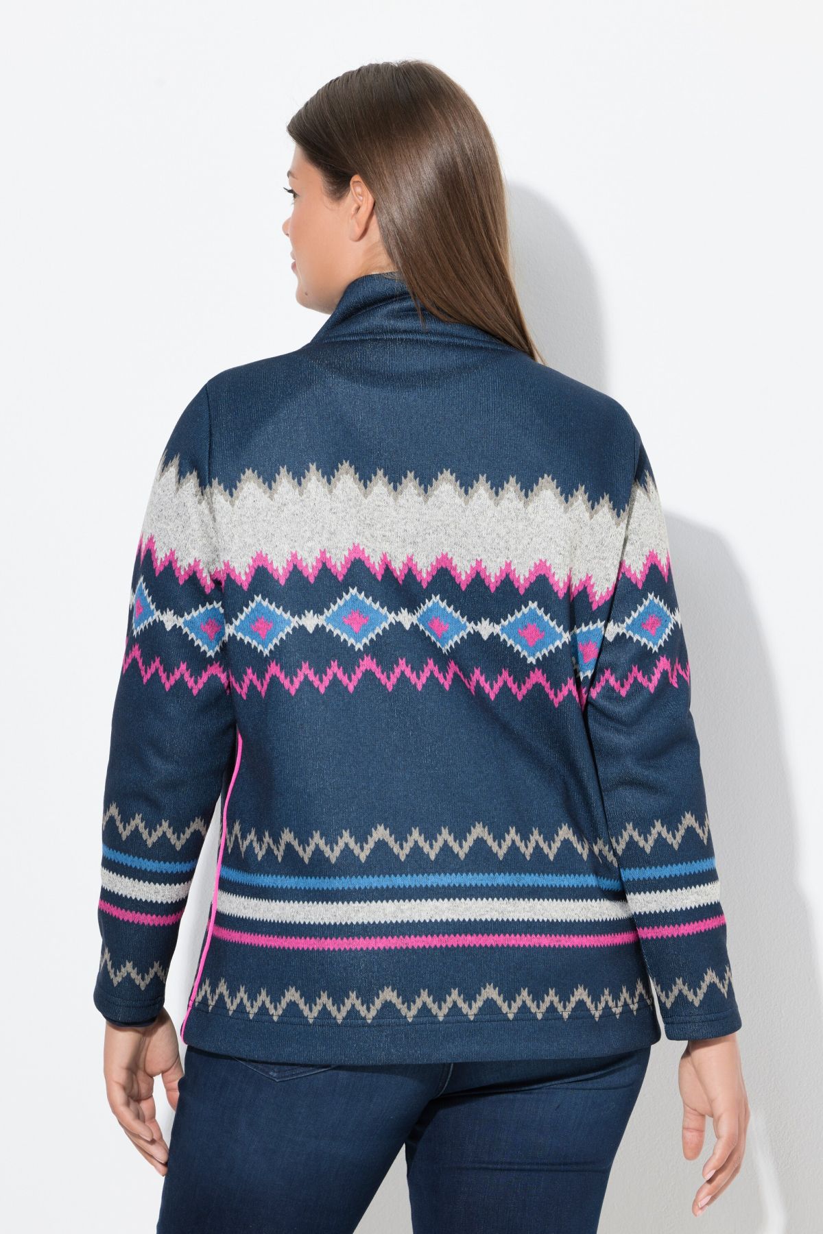 Пуловер с принт на норвежки райета и поларена подплата. Със странични джобове, изправена яка с цип на деколтето и дълги ръкави. Топъл и комфортен за зимните дни