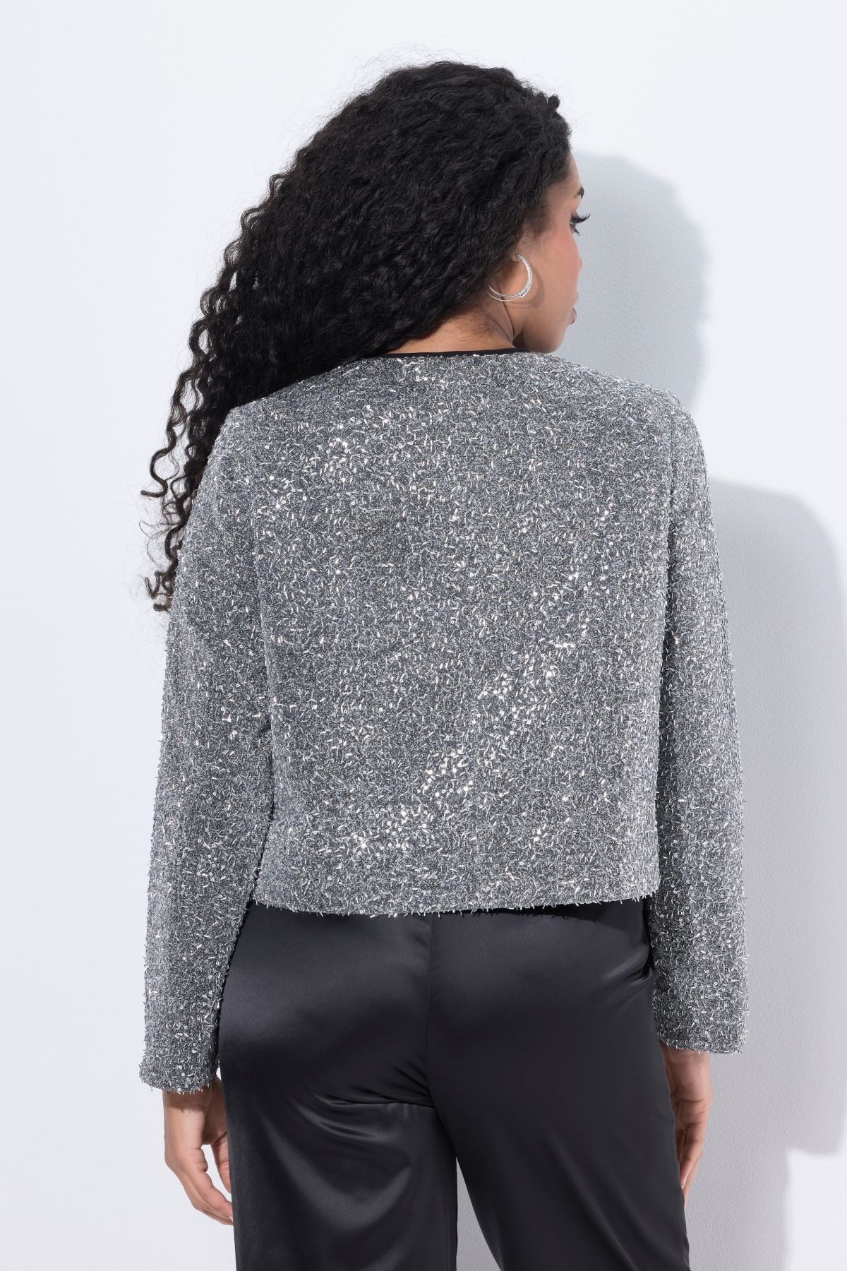 Сако от букле с мънистени акценти и перлени детайли. С копчета отпред, кръгло деколте и дълги ръкави. Стил и елегантност.
