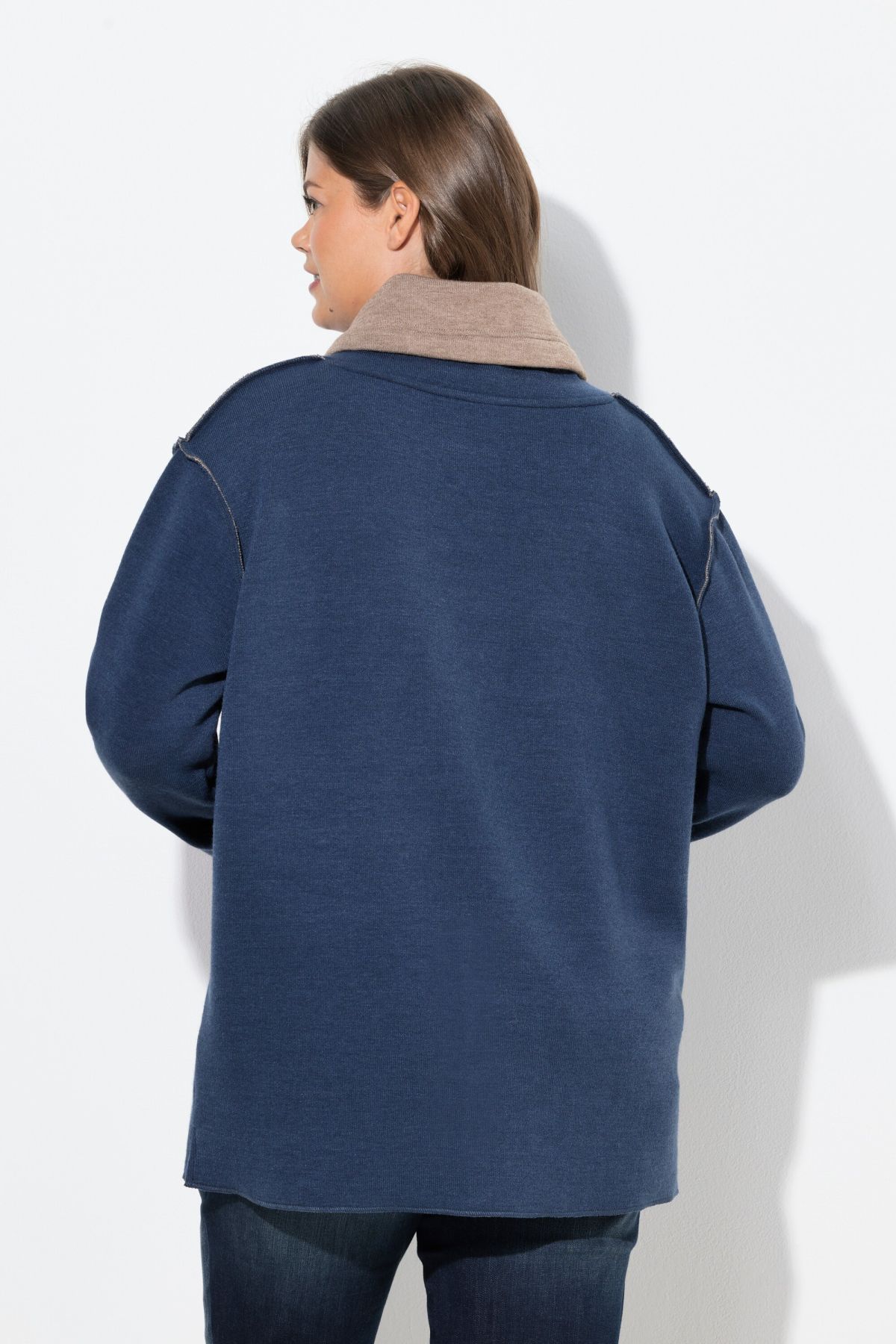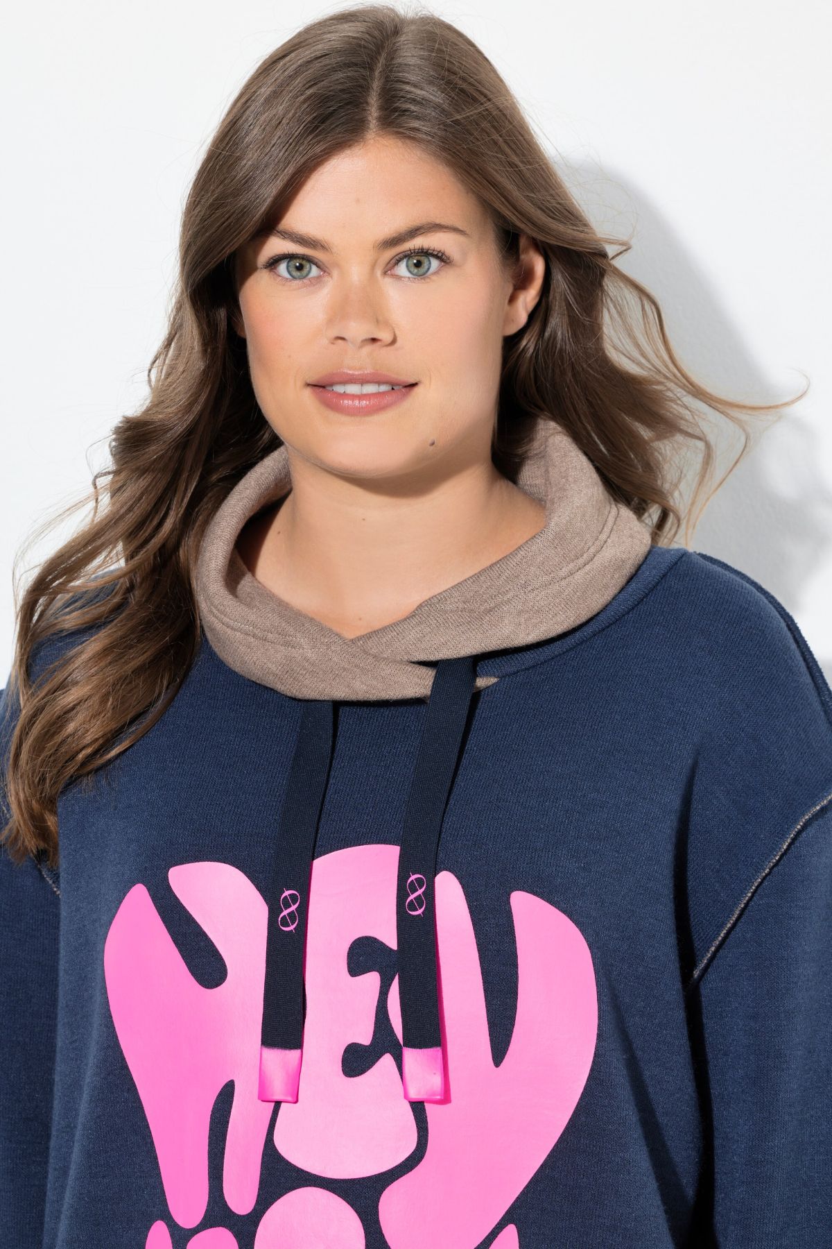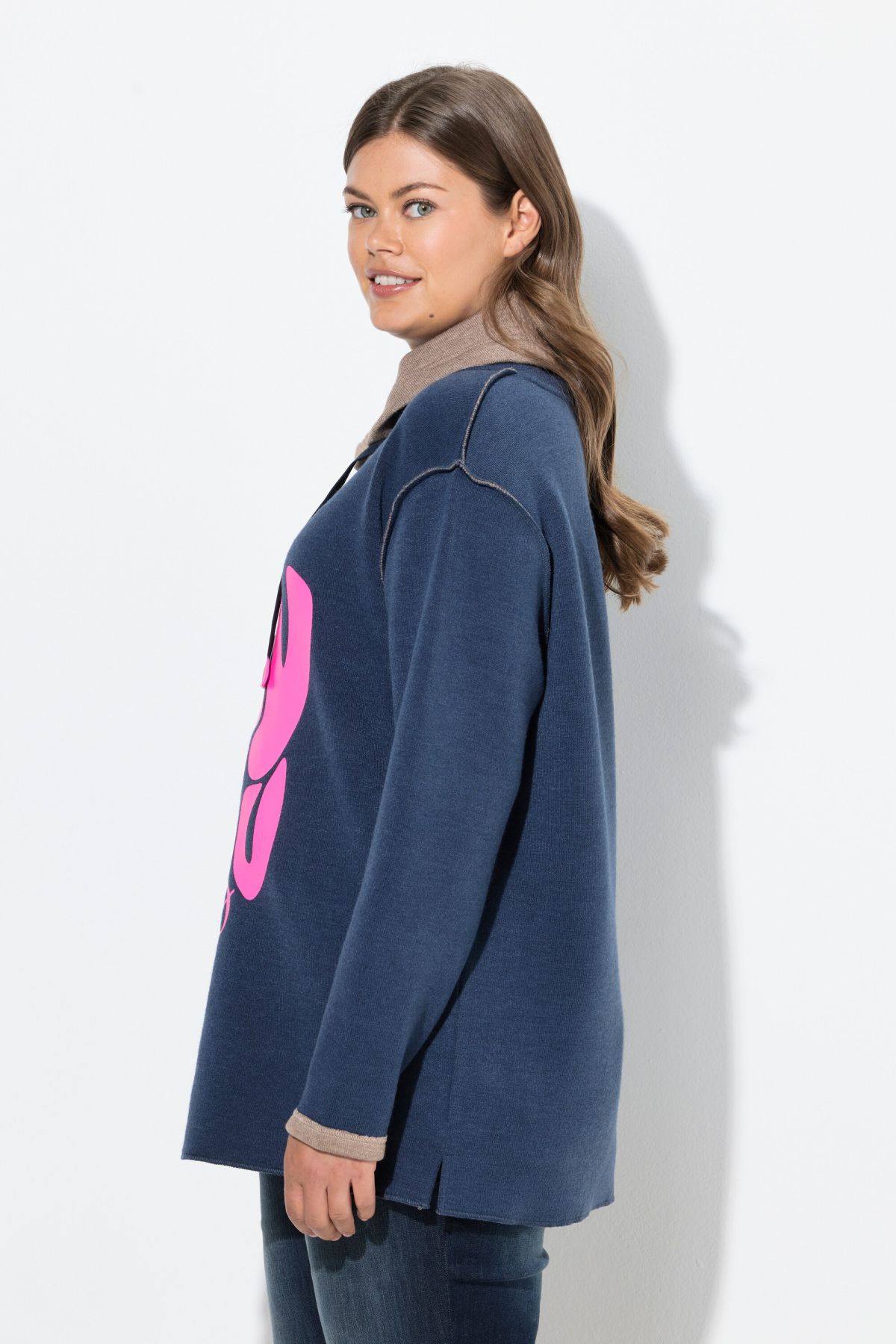 Суитчър с графичен надпис - лукс и комфорт в ежедневието. С широка, контрастна яка, връзки и дълги ръкави. От мека, комфортна материя.